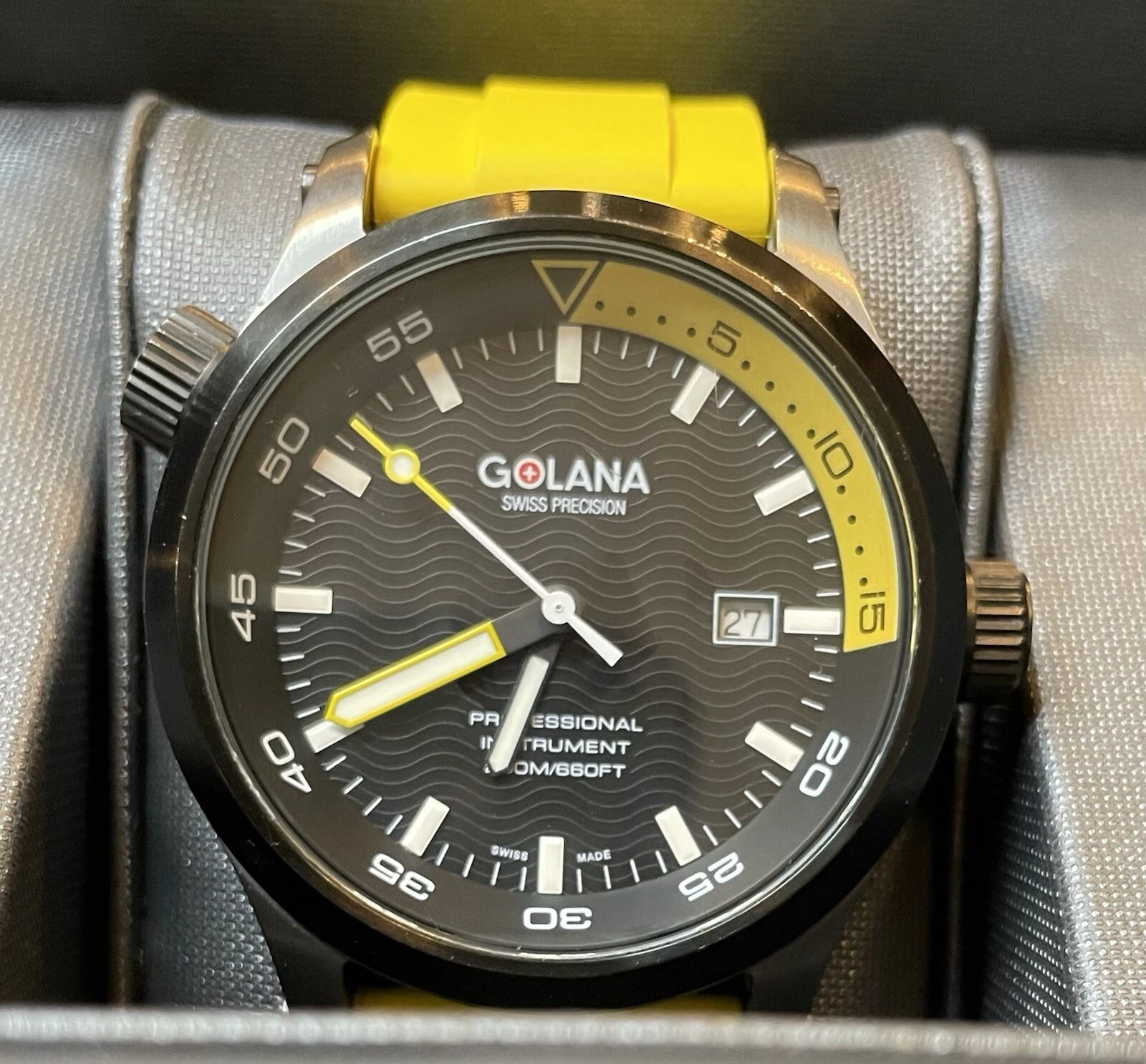 Golana Aqua Pro AQ100 Swiss Quartz 200M Diver Watch - NEW Crystal, Band & Band!