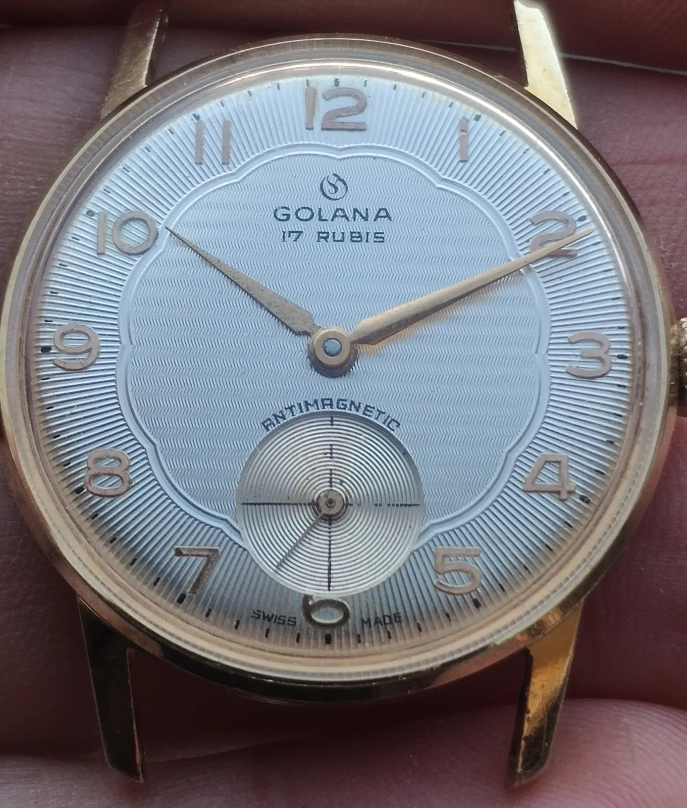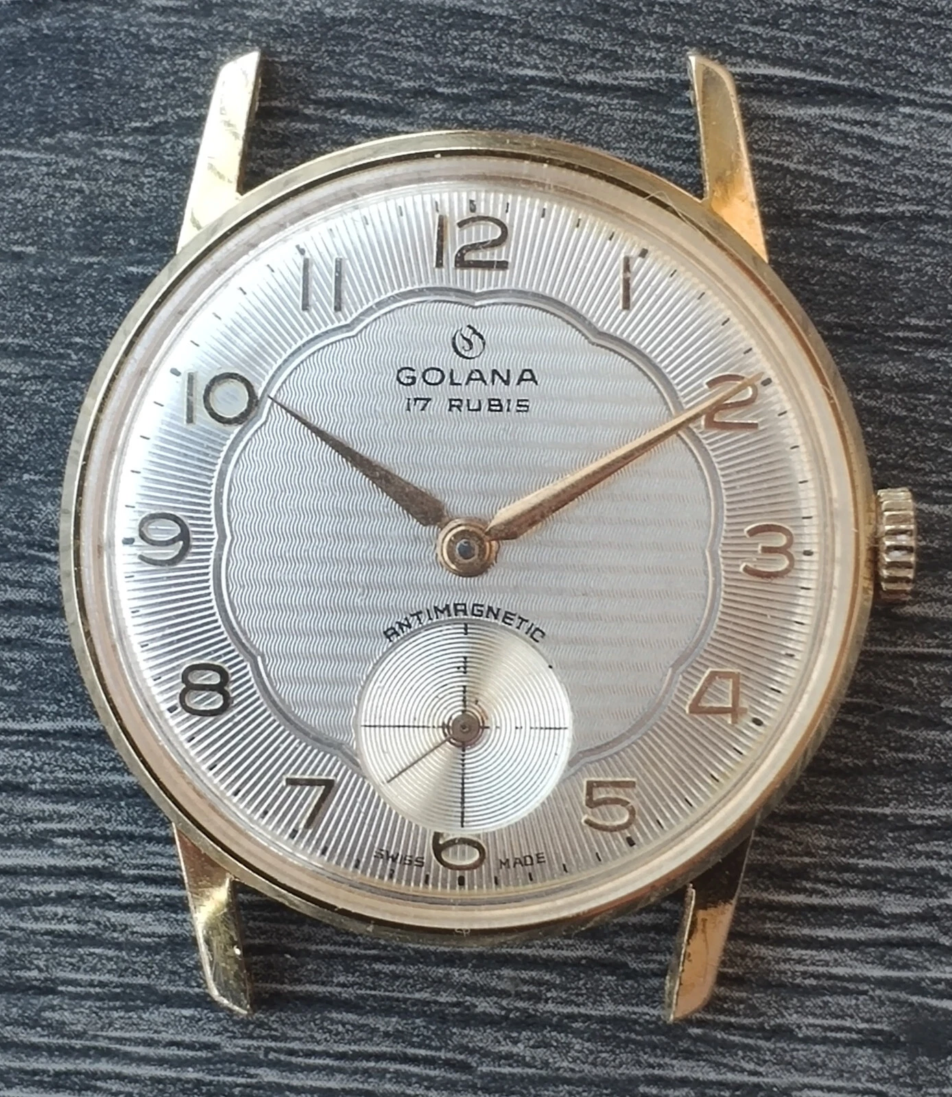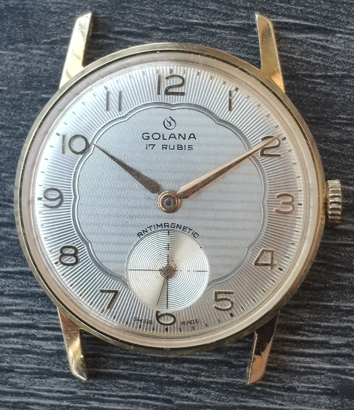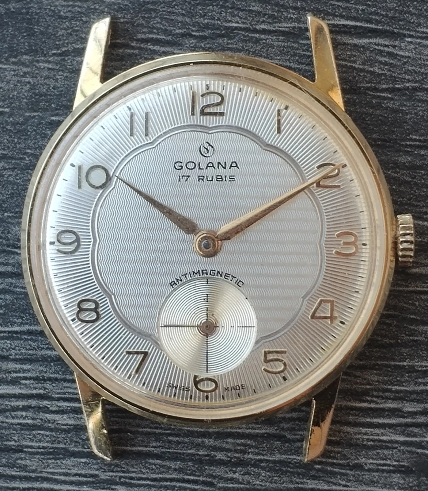 Vintage men's lovely textured dial Golana hand-winding watch Unitas 6310