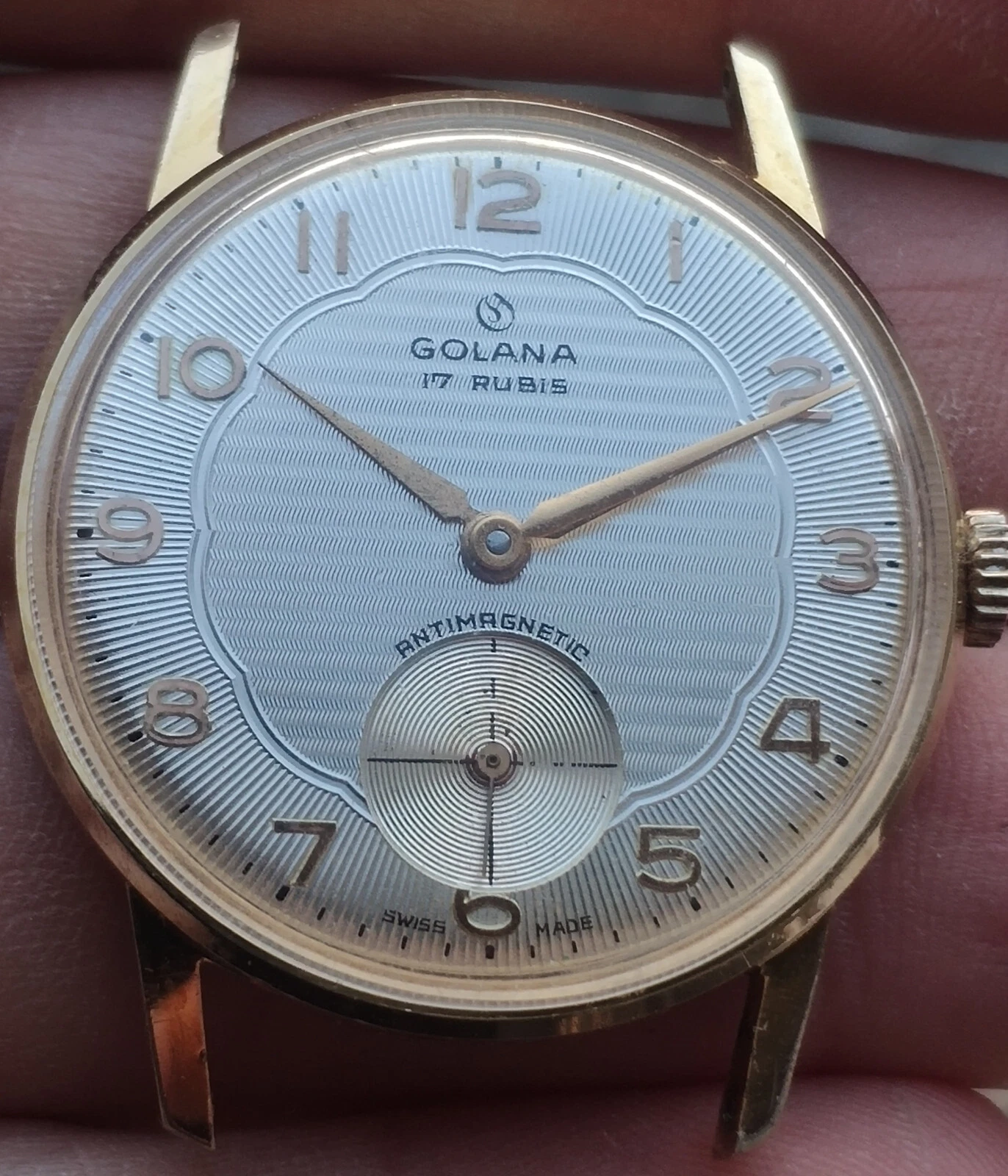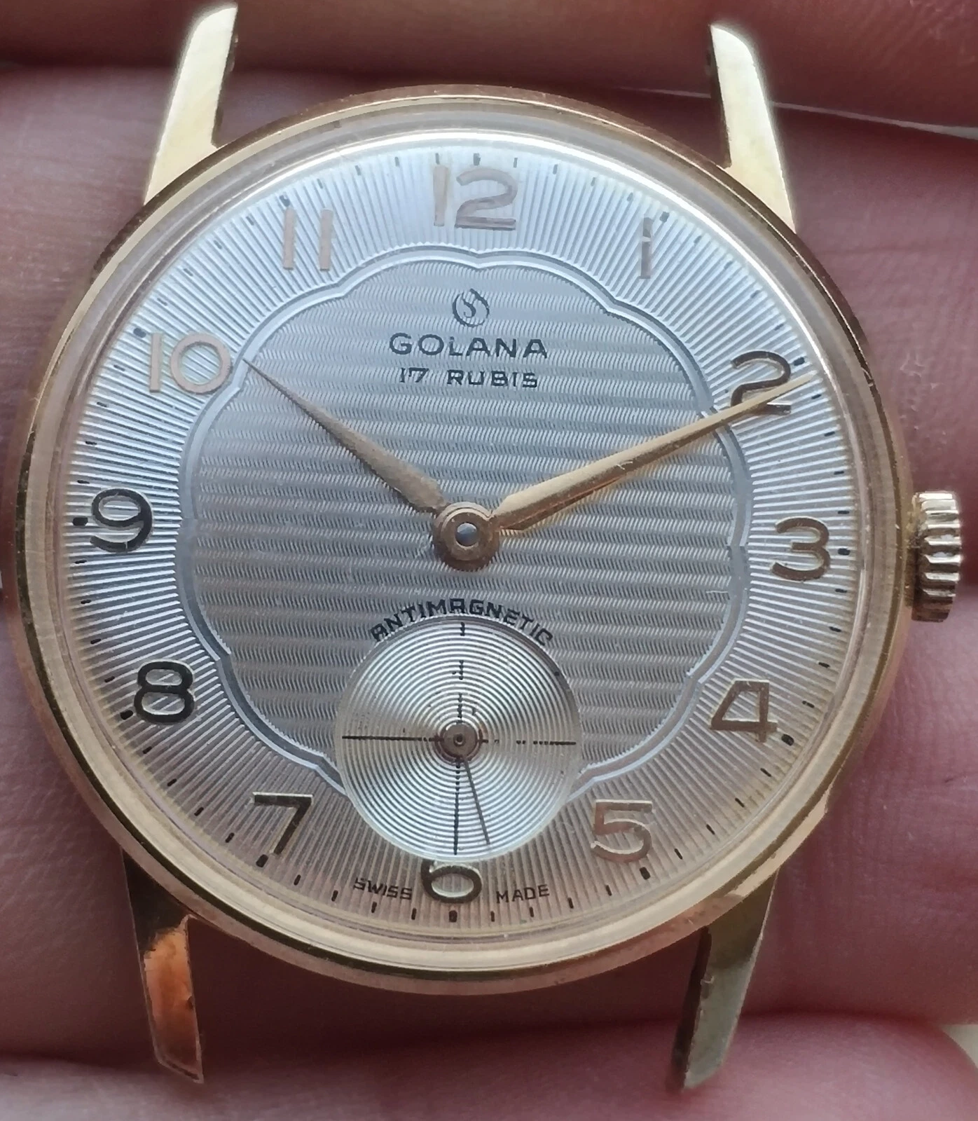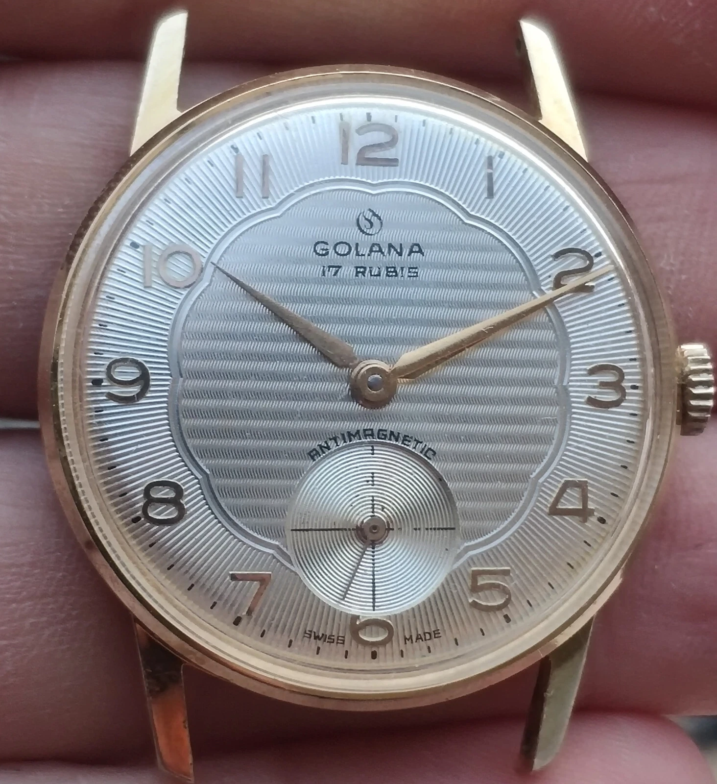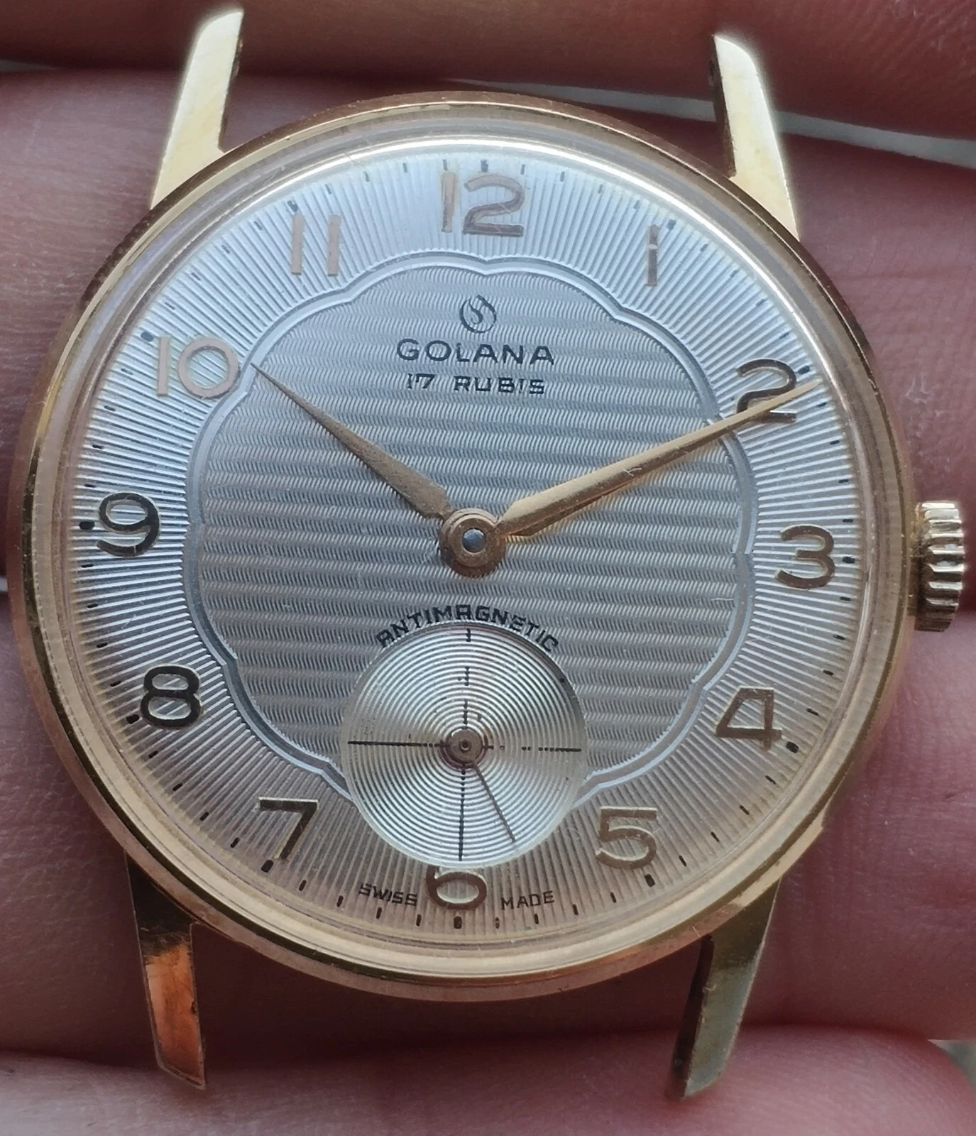 Vintage men's lovely textured dial Golana hand-winding watch Unitas 6310