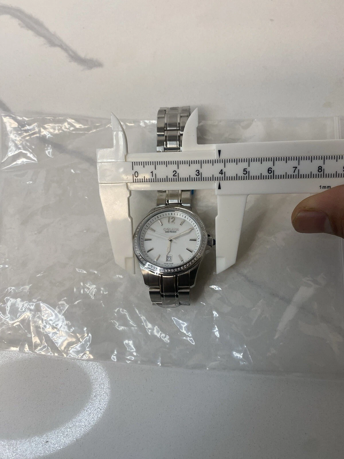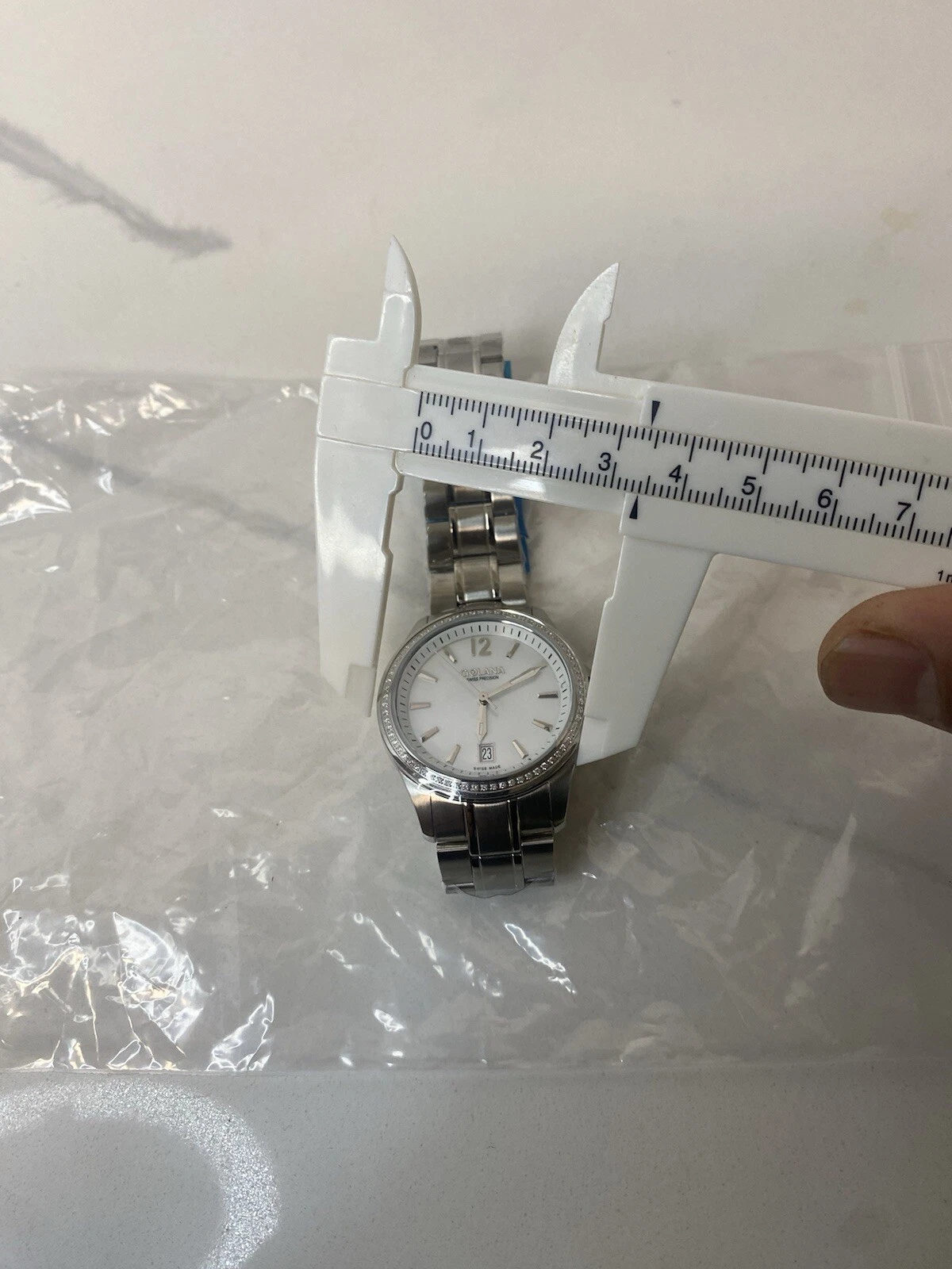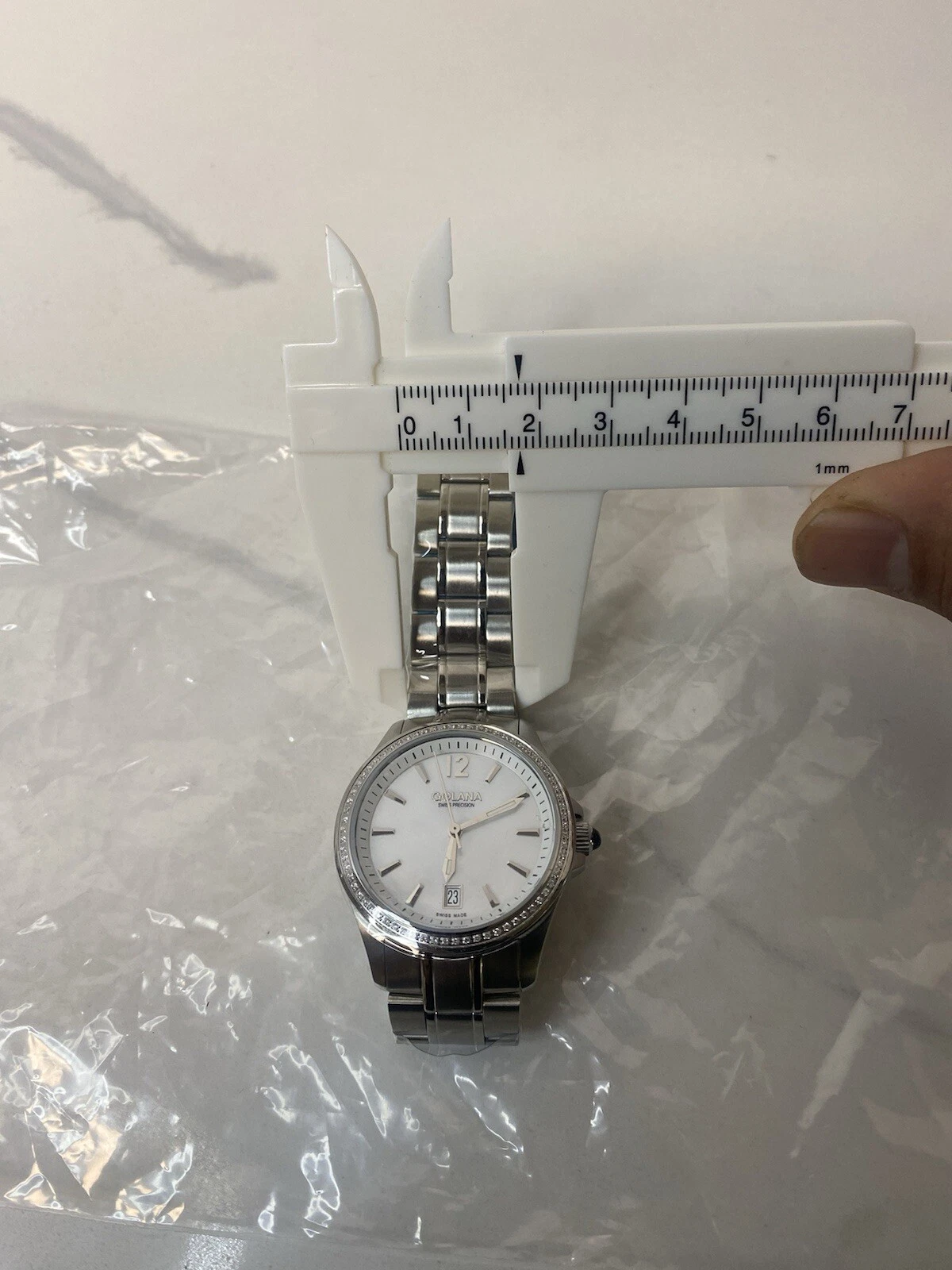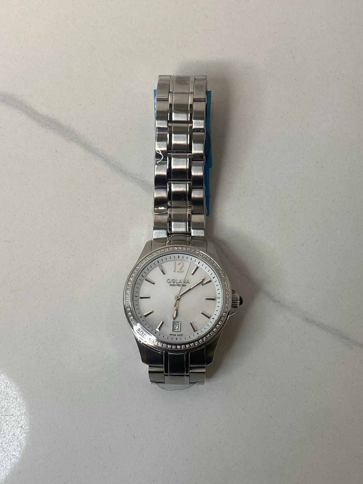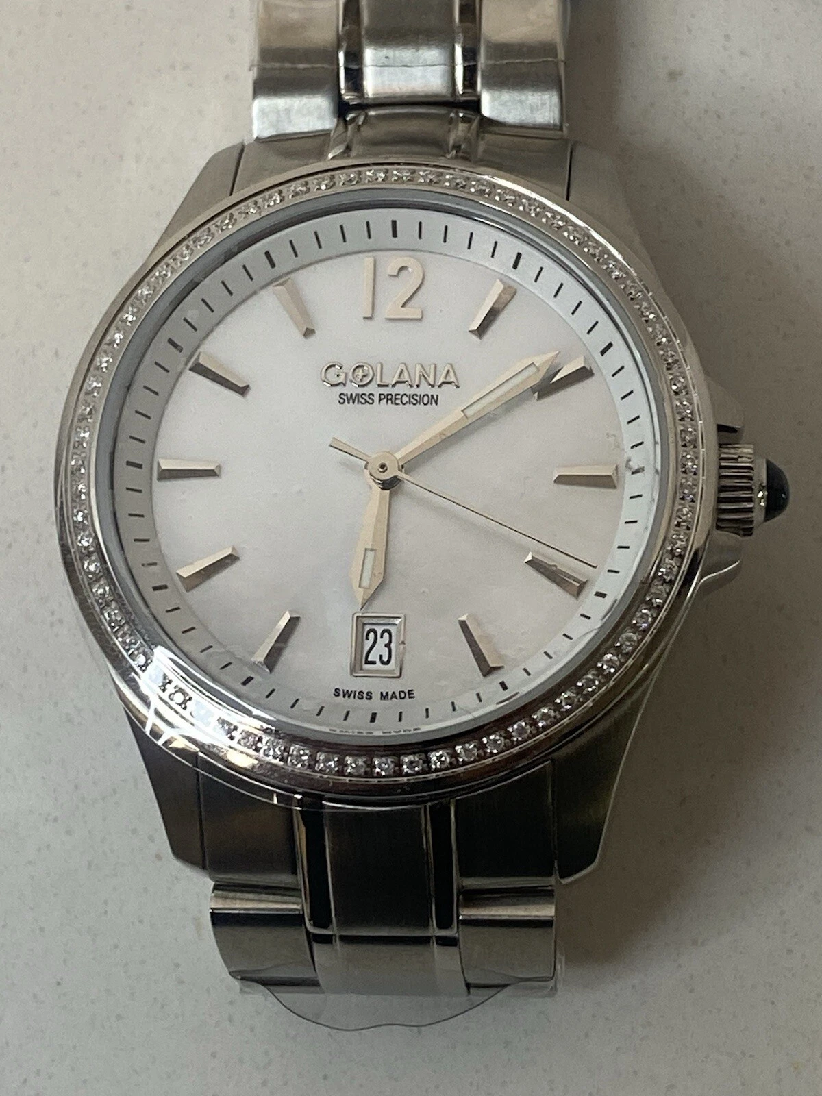 Womens Golana Swiss Precision Watch Gem Set Bezel Model G0831 33mm Case Steel