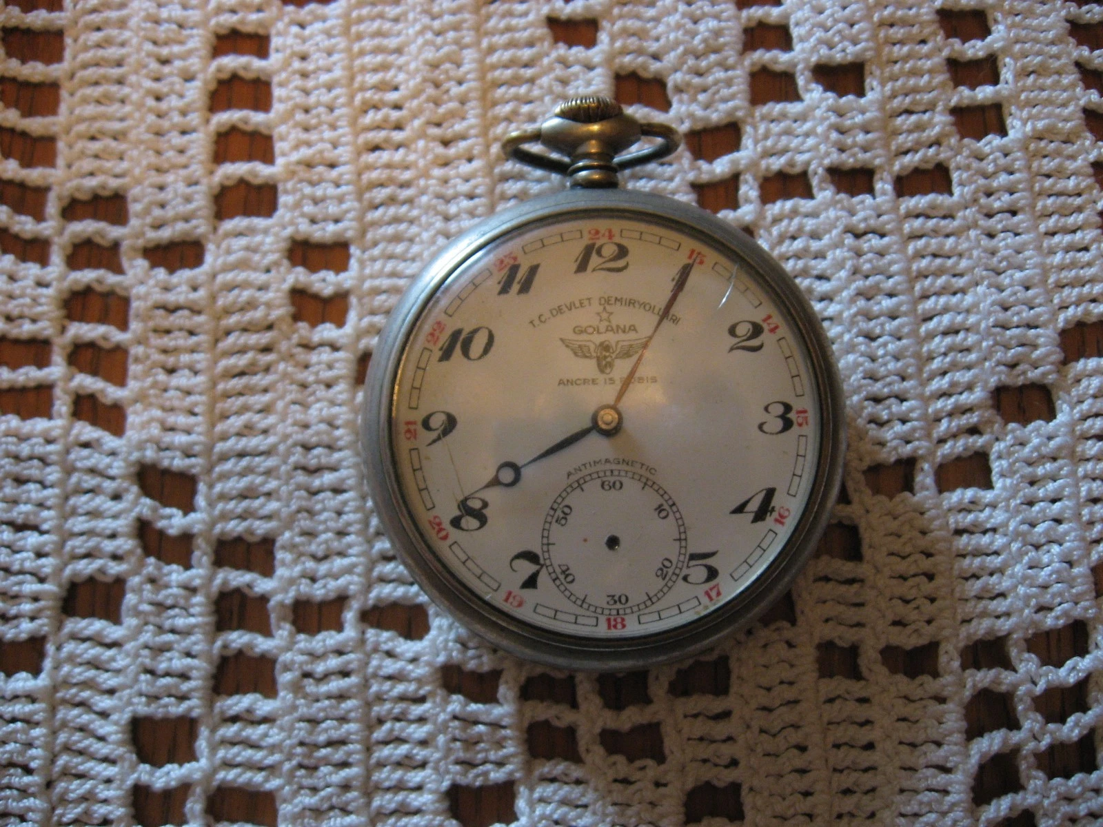T.C. DEVLET DEMIRYOLLARI GOLANA ANCRE 15RUBIS ANTIMAGNETIC RAILROAD POCKET WATCH