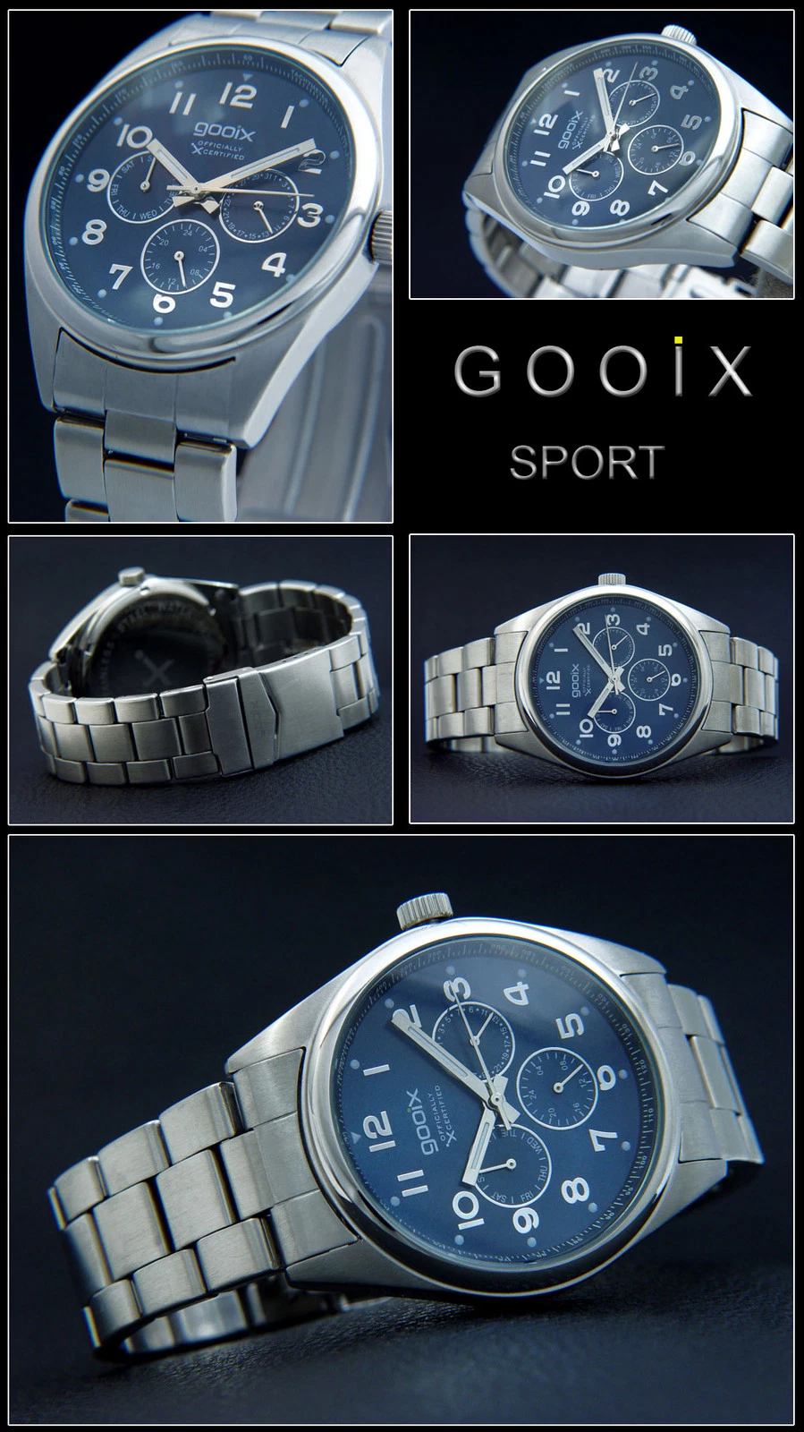 Gooix Pilot Watch 43mm Men's Stainless Steel Day Date Blue 5 BAR GX 05036 003