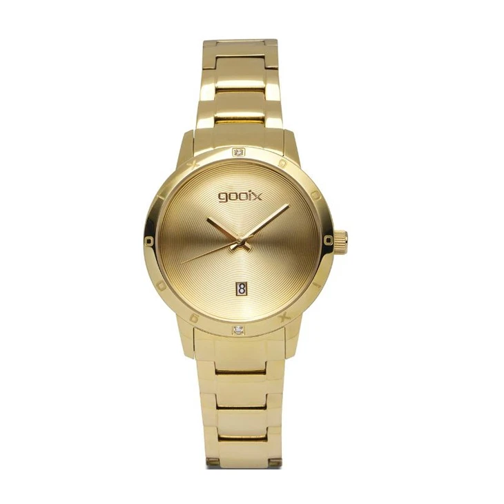 GOOIX Only Time Woman Watch PVD Steel Case and Strap with Calendar