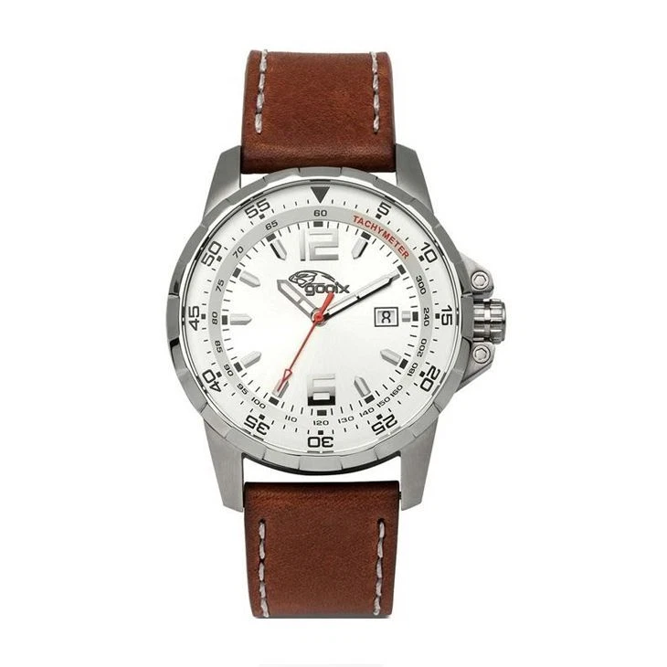 GOOIX HUA-05913 MENS CHRONOGRAPH WATCH STEEL CASE SILVER LEATHER STRAP MA