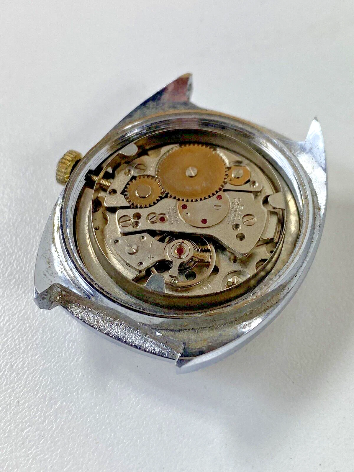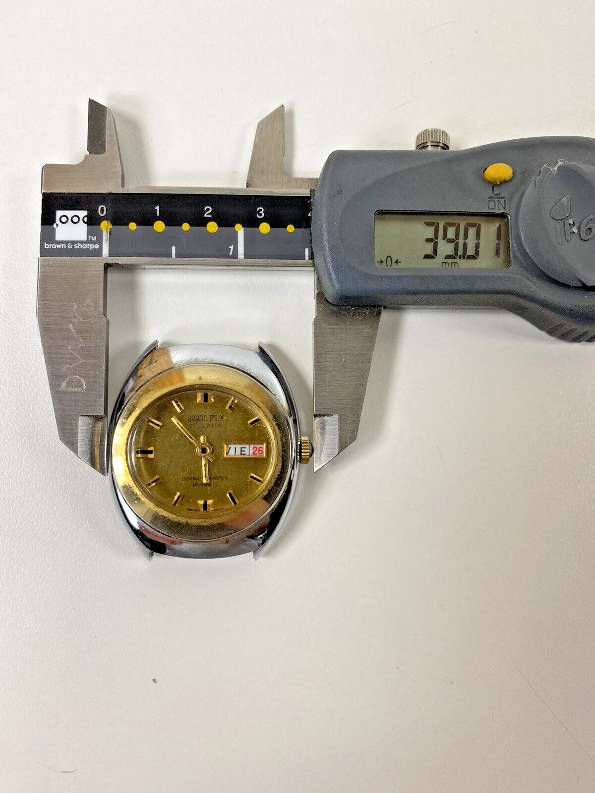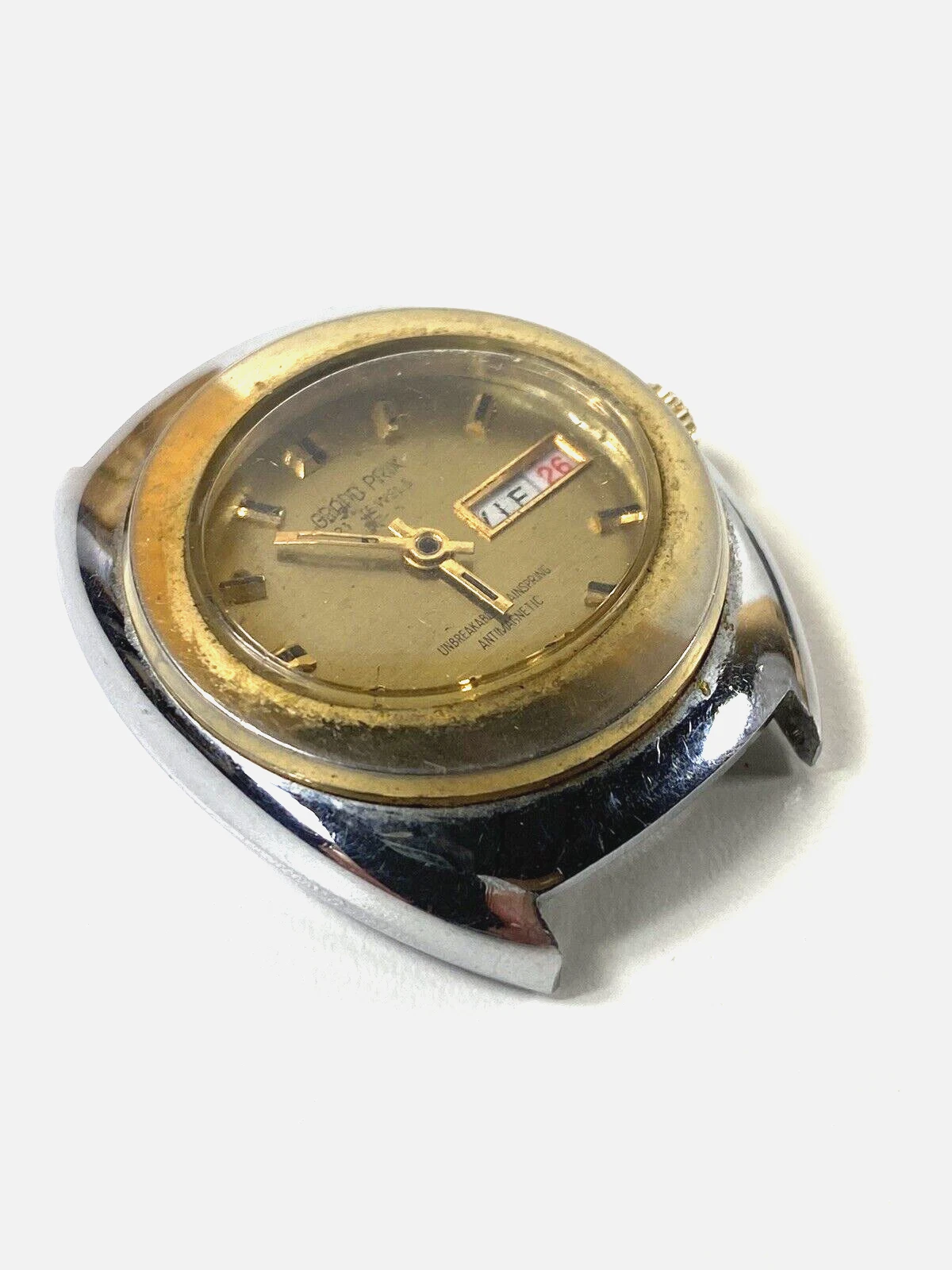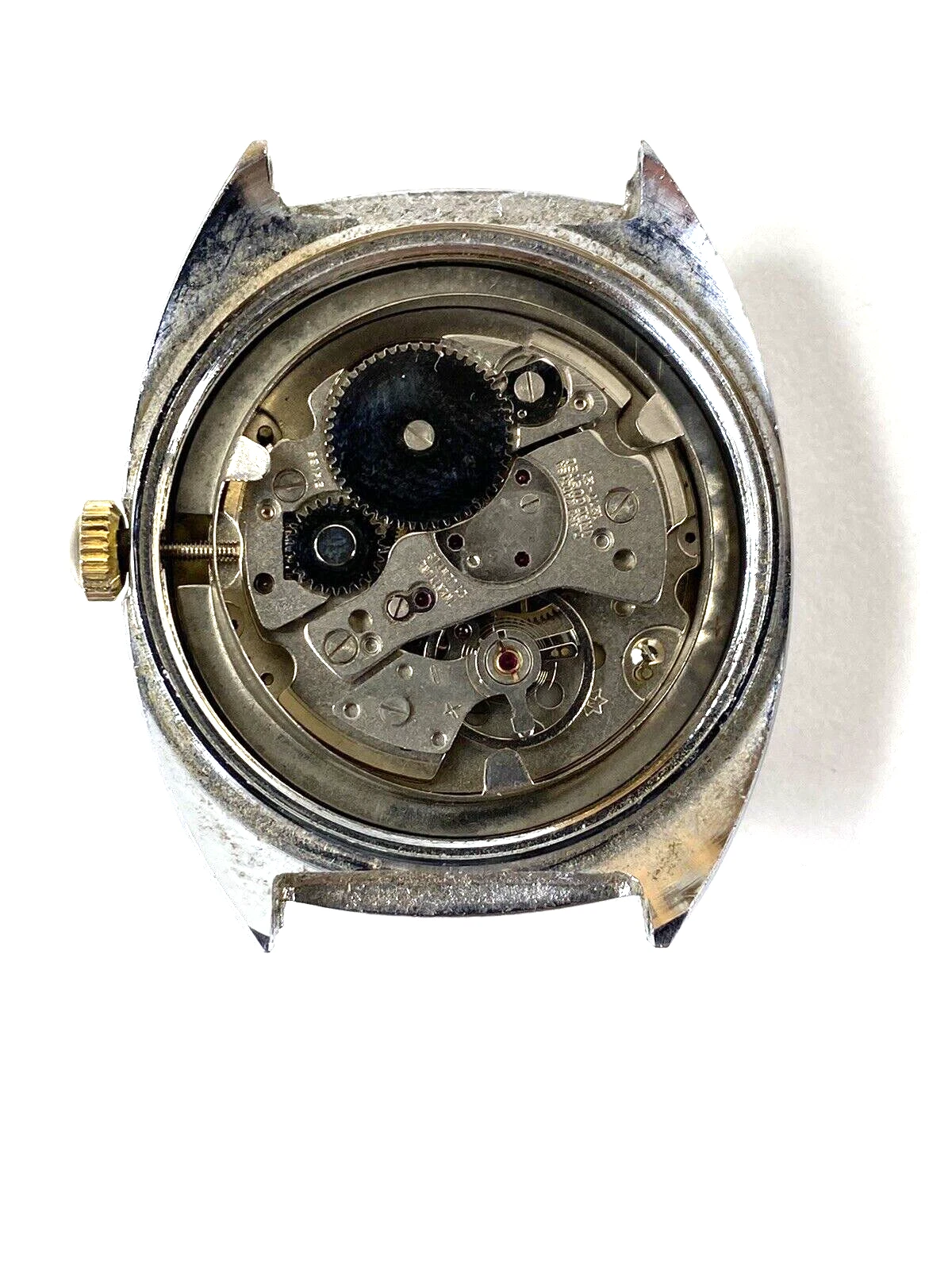 Vintage Grand Prix Mens Watch 21 Jewels 1970s MOD Style Chrome Day Date