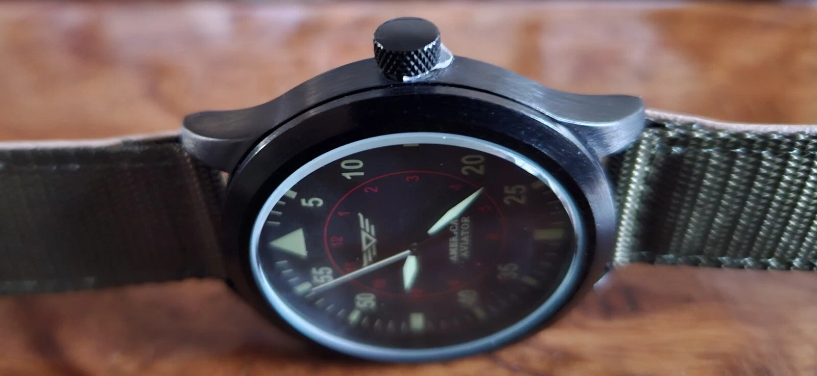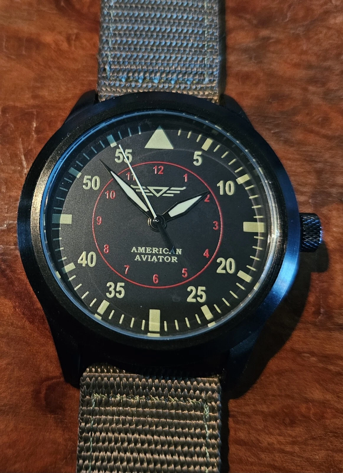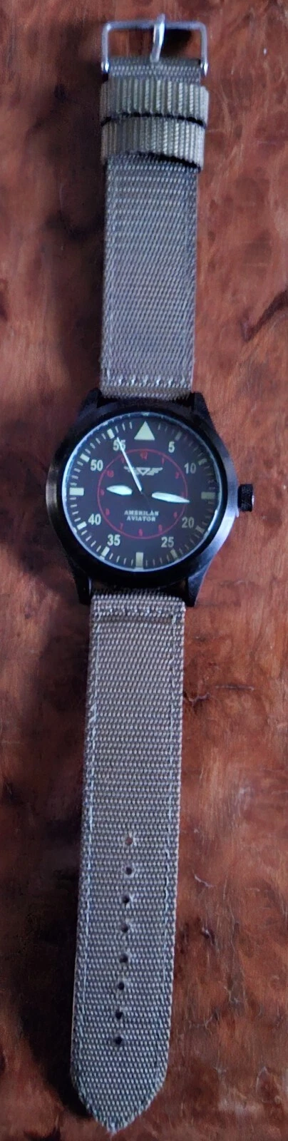 American Aviator Men's Quartz Watch 30MM Black Dial/Green Band #158279