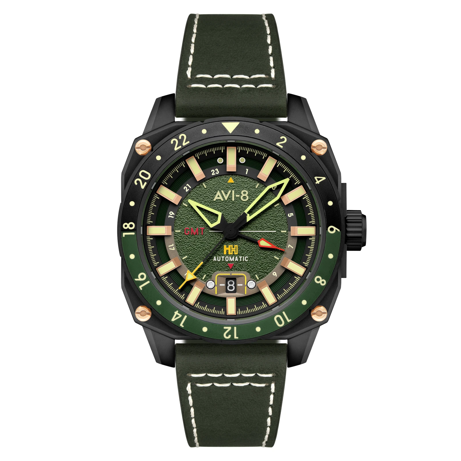 AVI-8 Hawker Hunter Atlas Gmt Automatic Amazon Green Men's Watch AV-4122-03