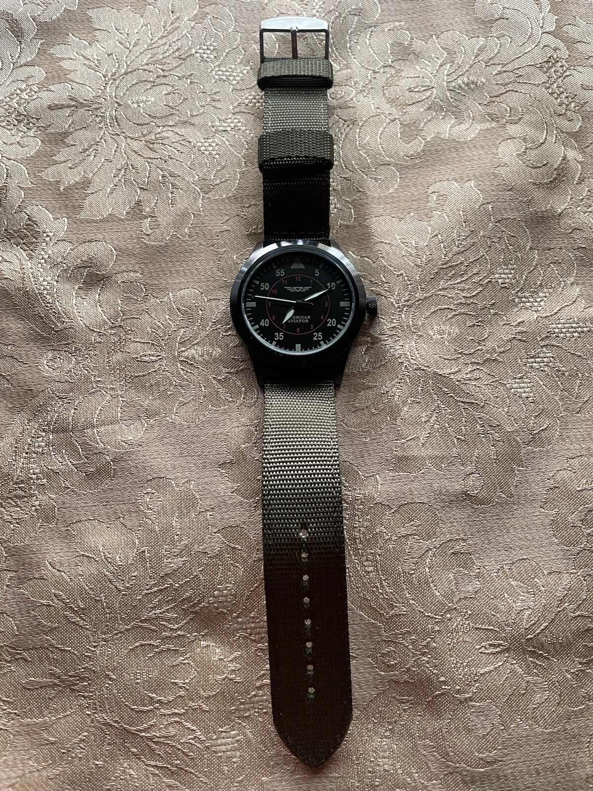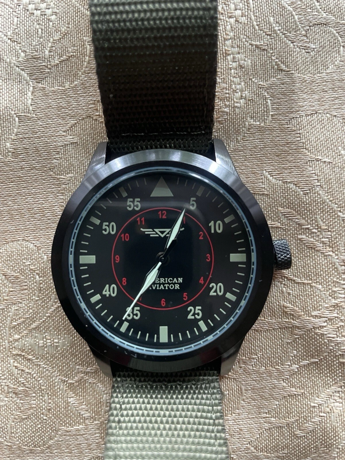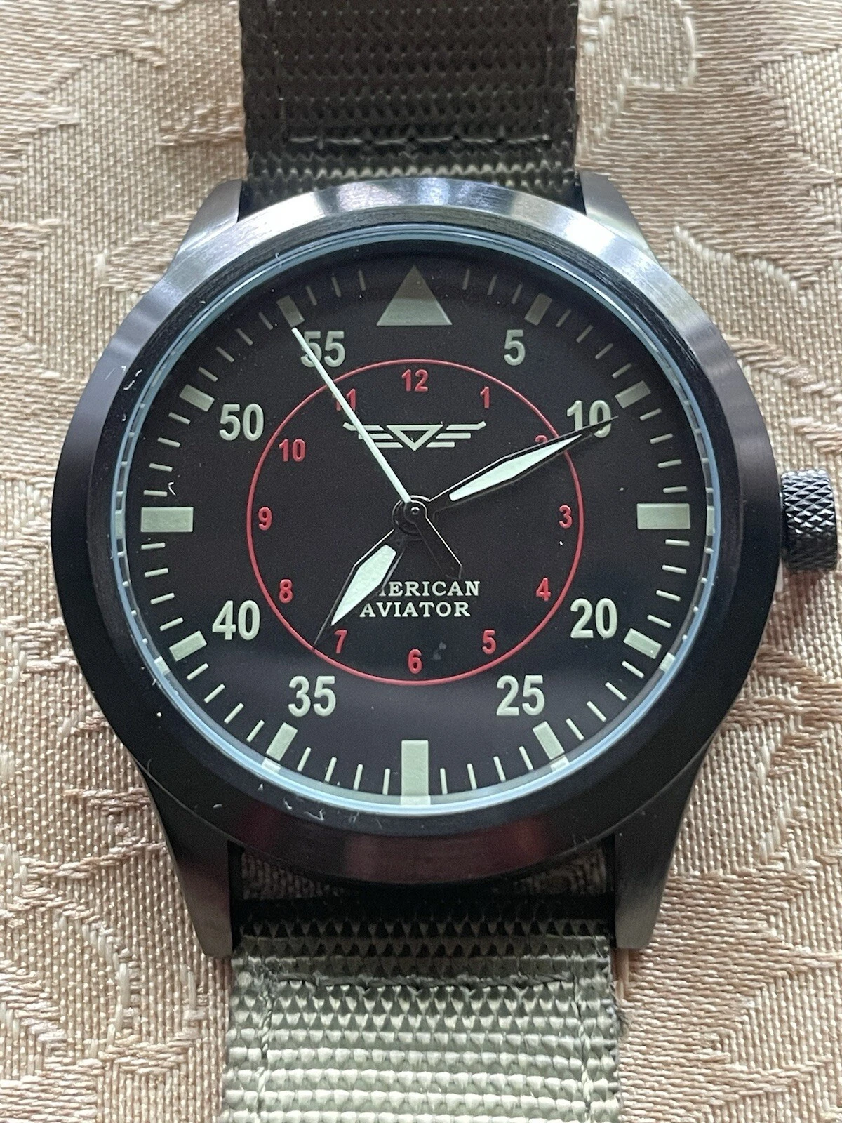 American Aviator 43mm Black Mylar Quartz Watch w/Olive Nylon/Beige Back Band