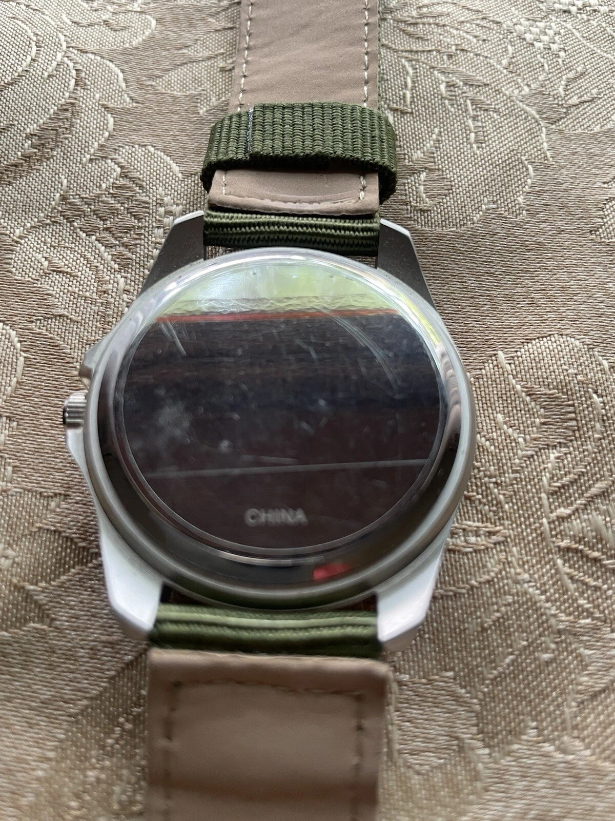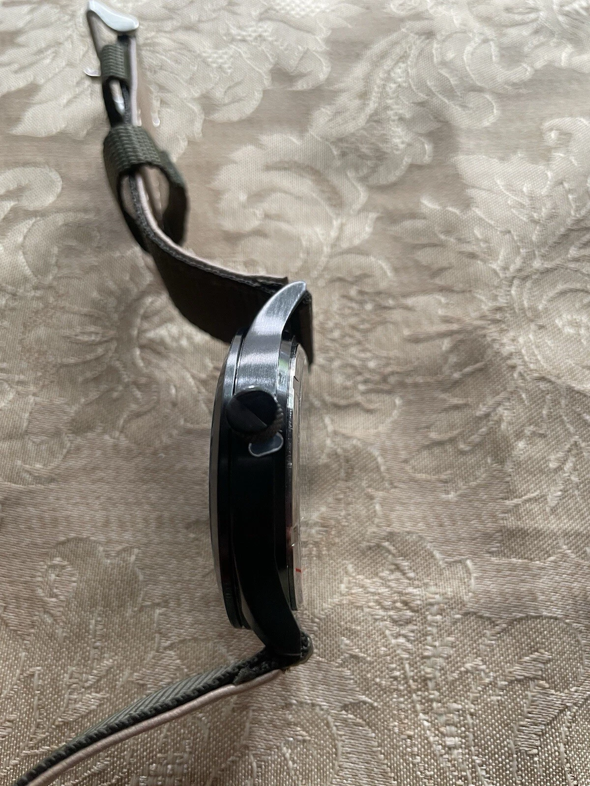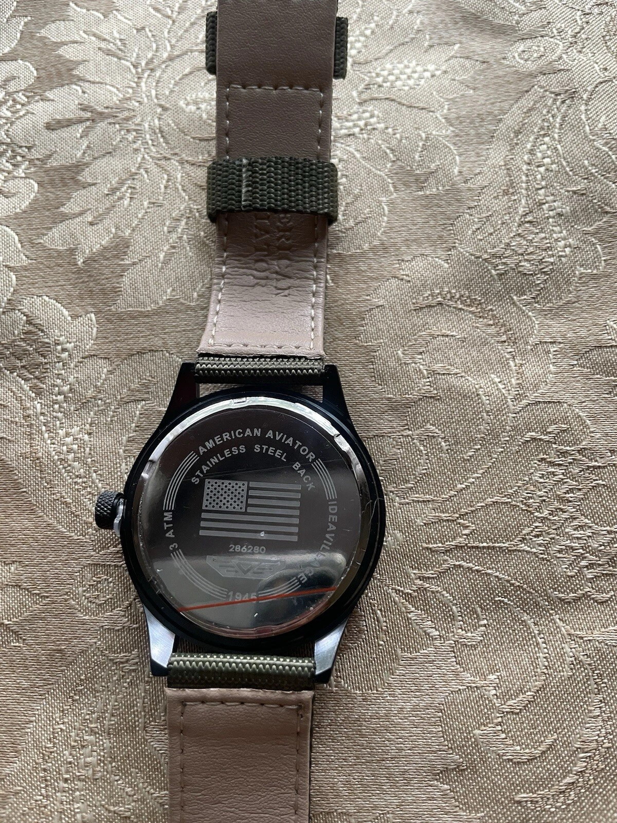 American Aviator 43mm Black Mylar Quartz Watch w/Olive Nylon/Beige Back Band