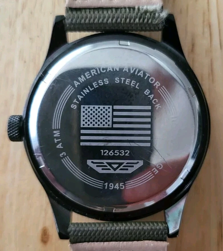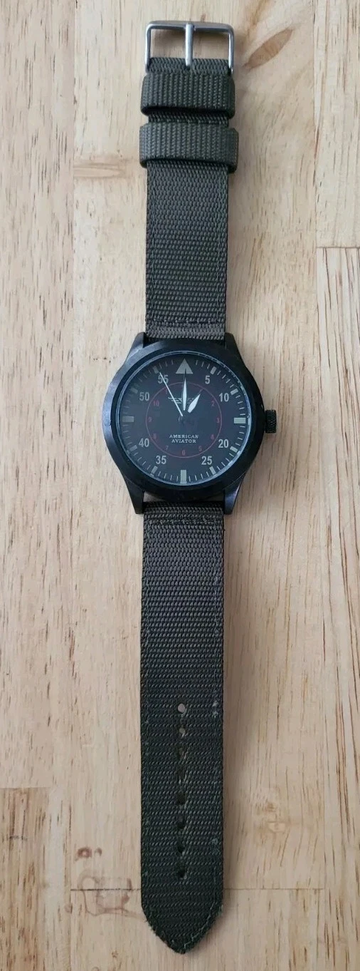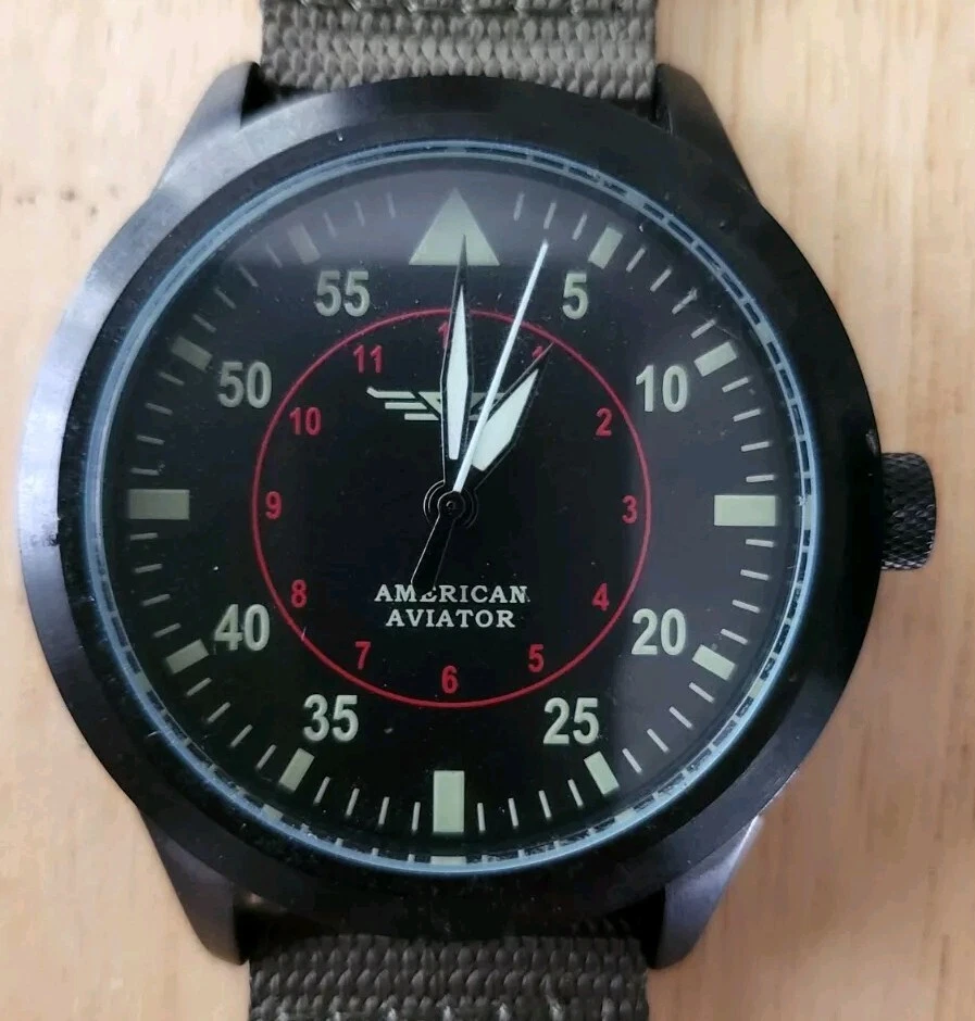 Men's AMERICAN AVIATOR 1945 Field Military Pilot Watch, Black Dial, Green Band!!