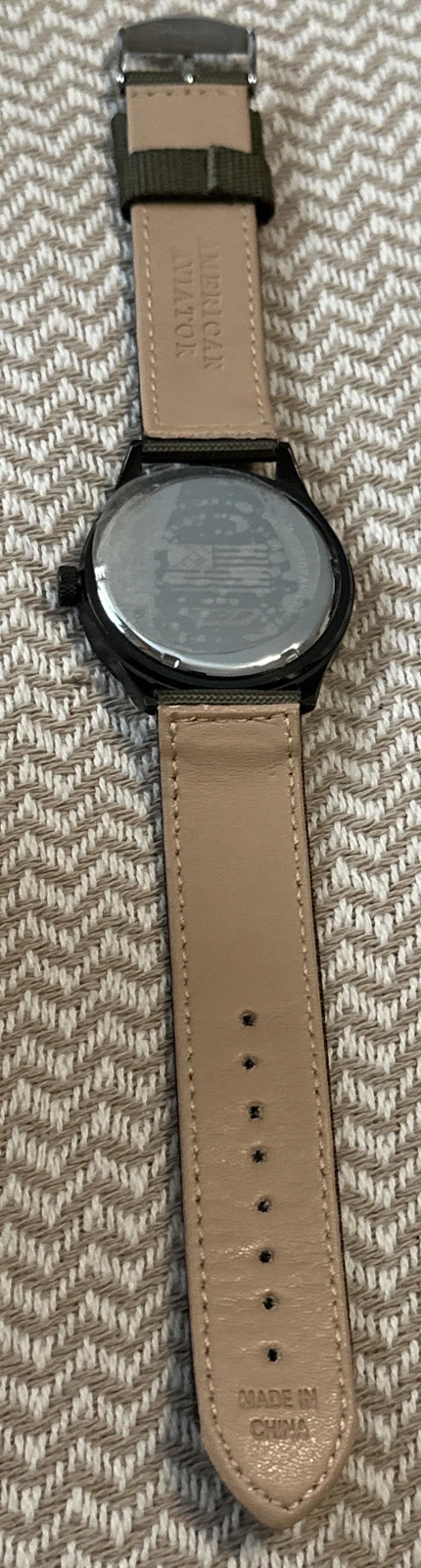 Men's AMERICAN AVIATOR 1945 Field Military Pilot Watch, Black Dial, Green Band!!