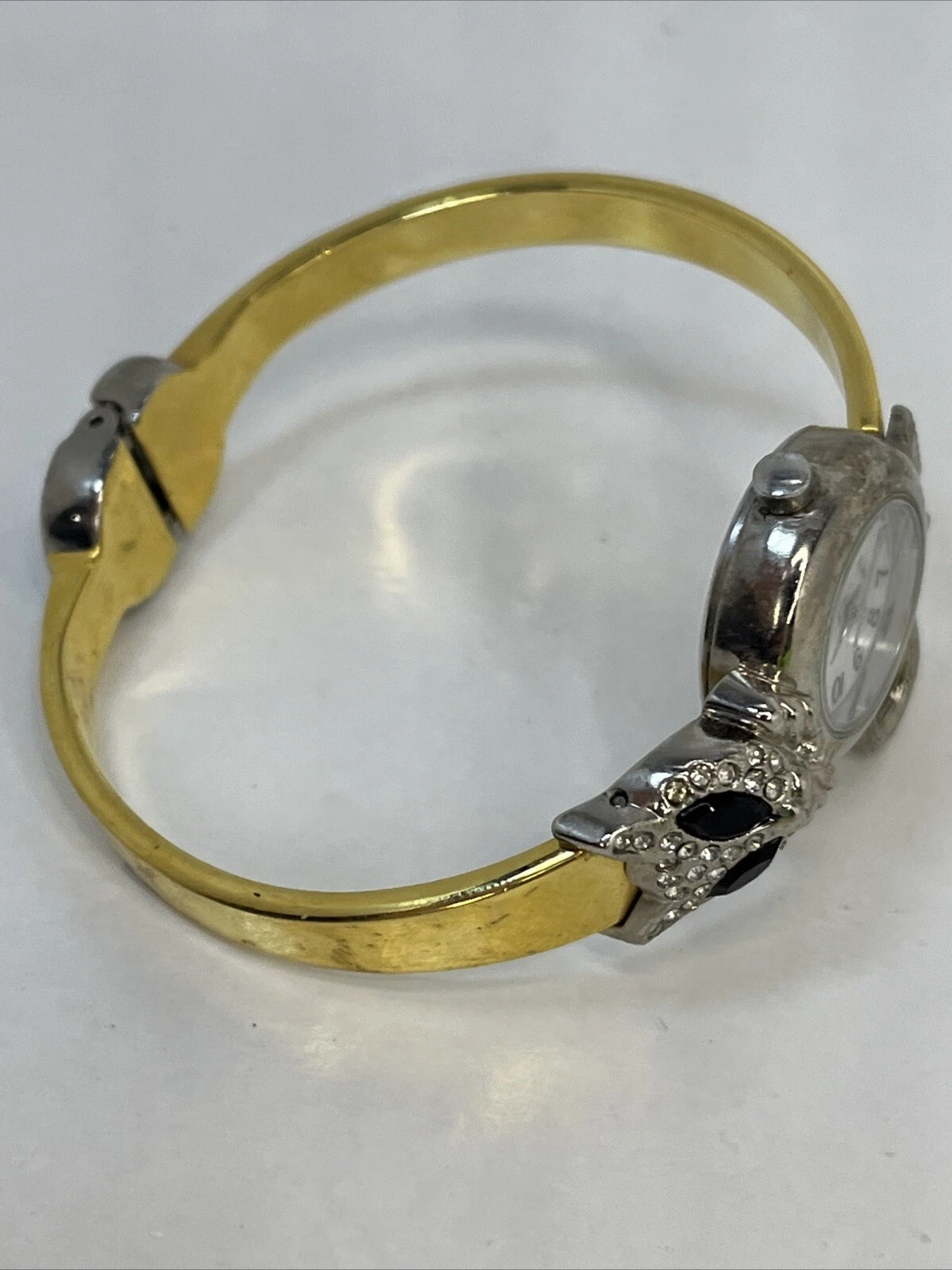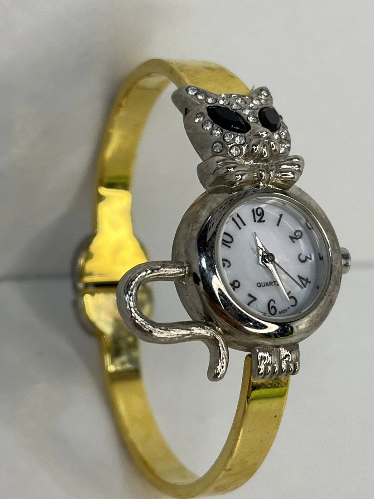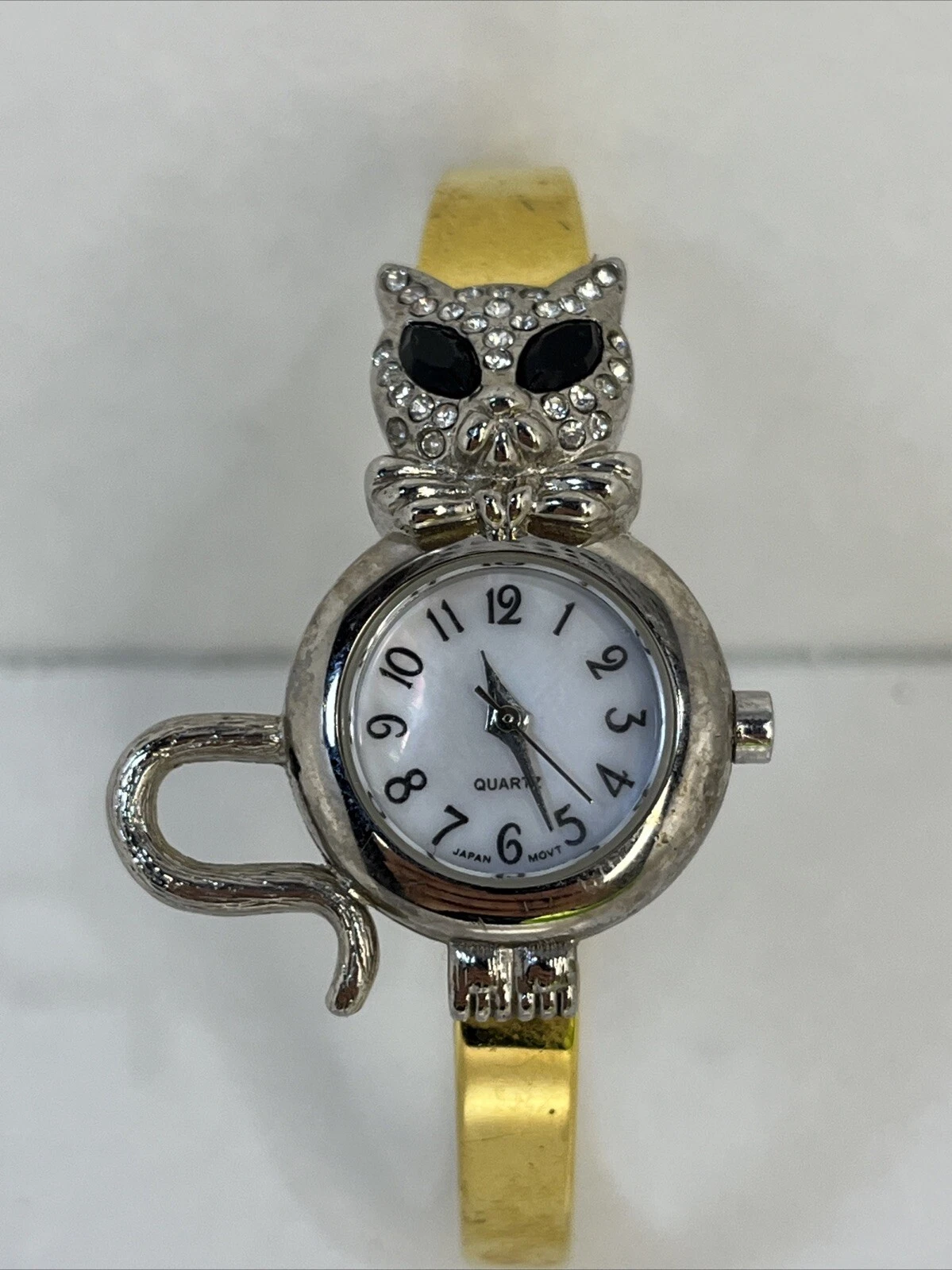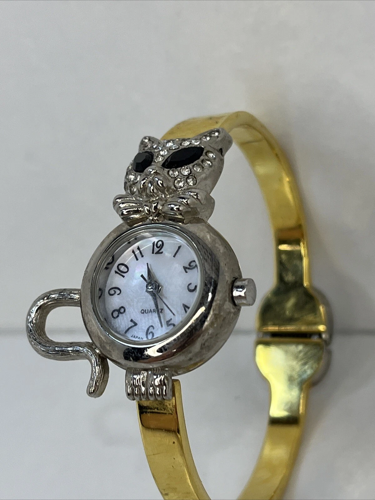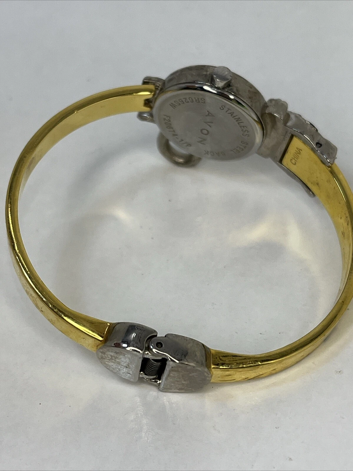 Avon Cat Women's Watch Two Tone Hinge Bangle Band MOP Dial- New Battery