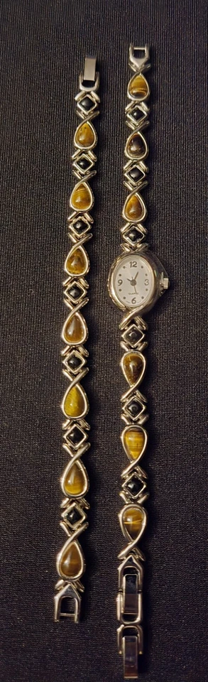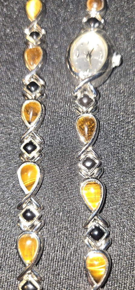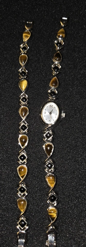 Avon Tiger's Eye And Black Onyx Watch & Bracelet Set. New Without Box Or Tags