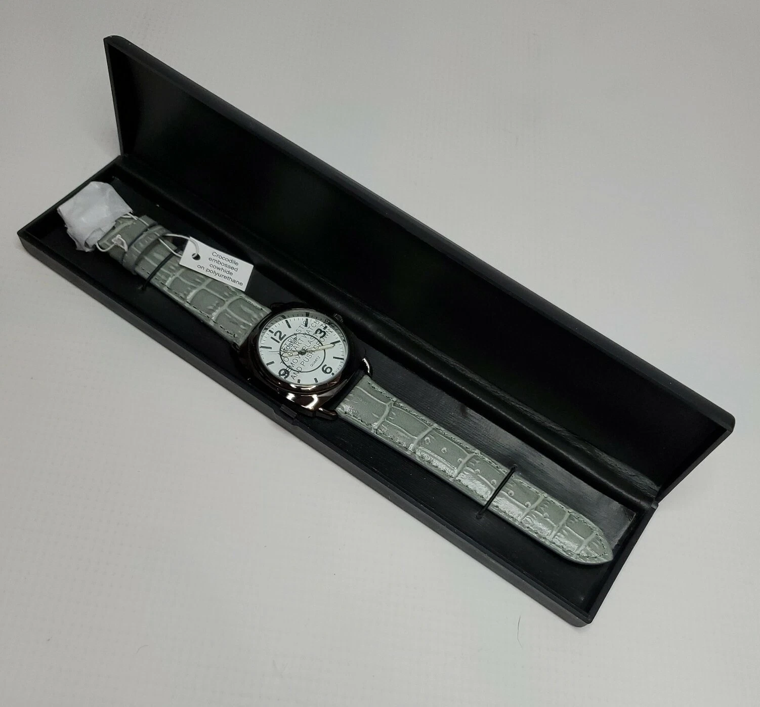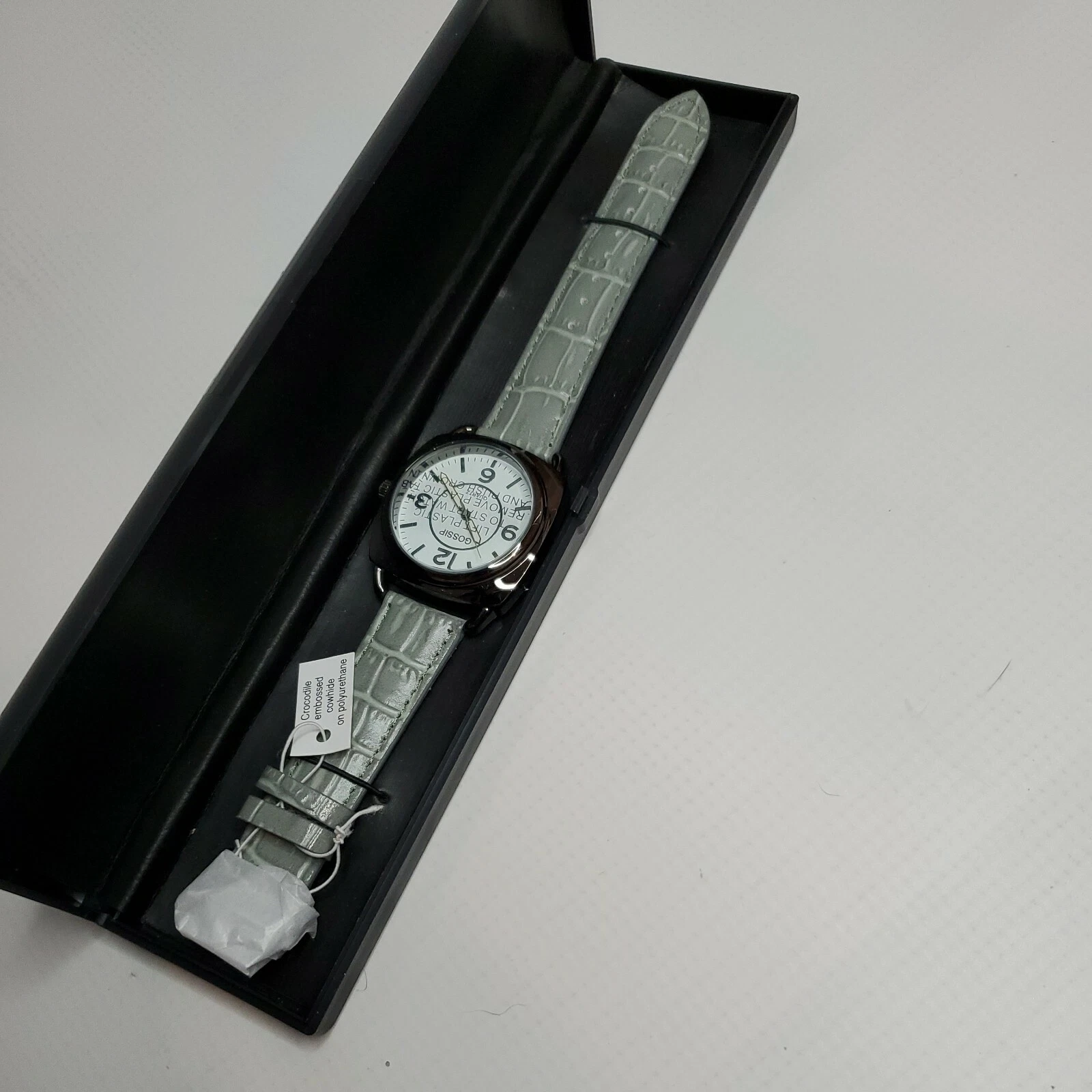 Gossip Watch Round Face with Crocodile Embossed Pattern Cowhide Band NEW READ