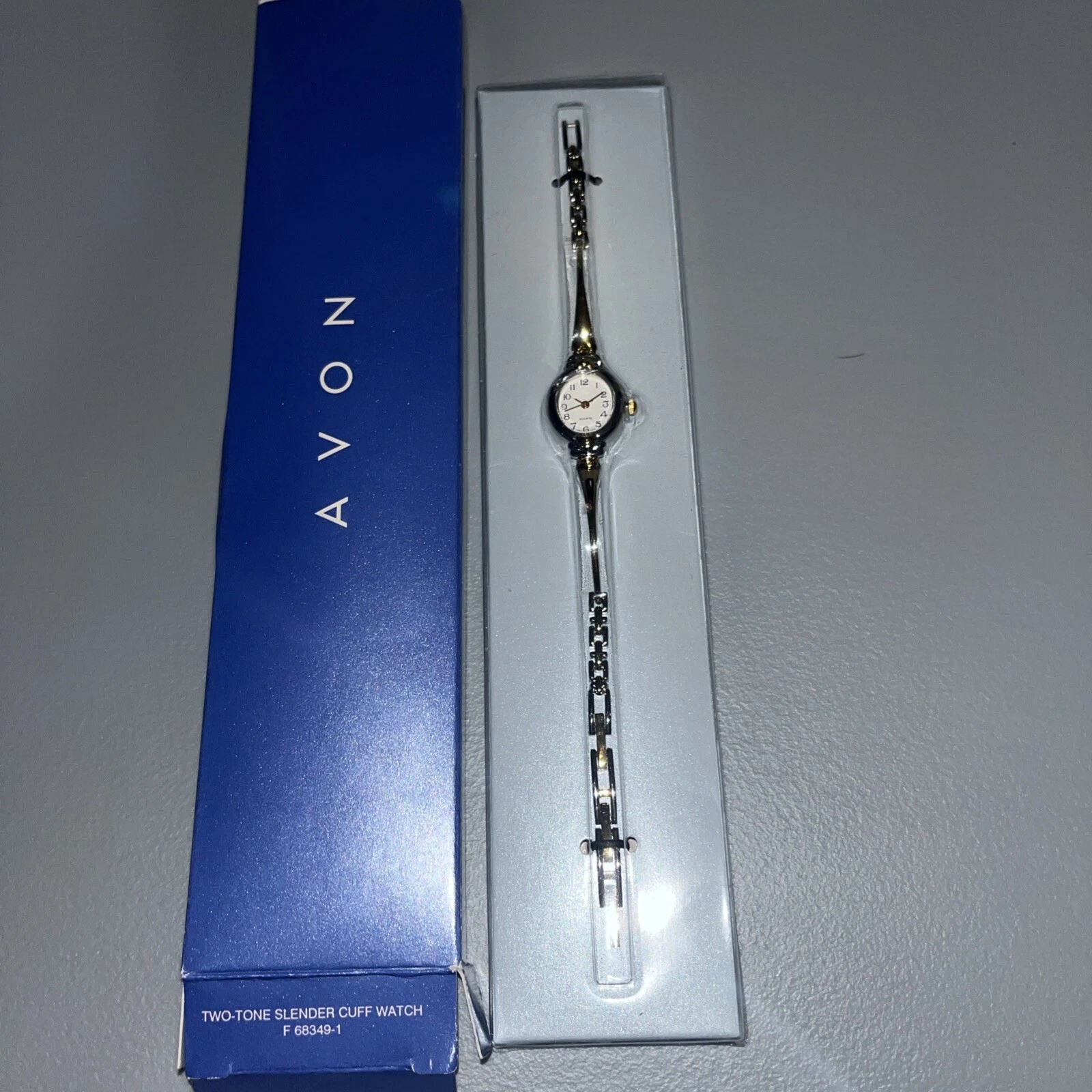 Avon 2002 Two Tone Slender Cuff Watch Open Box -Untested + Free Gift