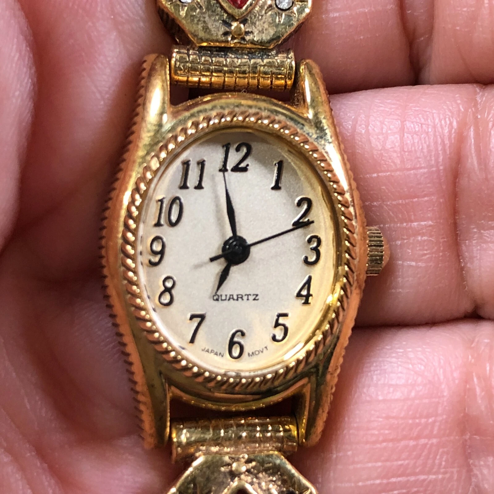 Avon Women F67438-1/P Dress Gold Tone Oval 18mm Quartz Analog Watch 6 1/2"