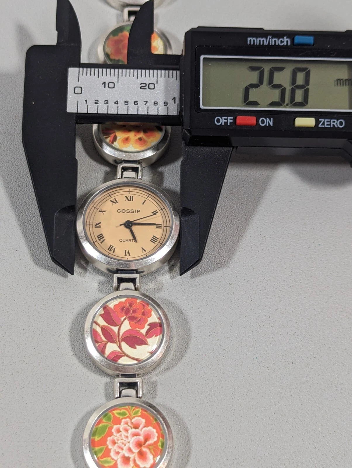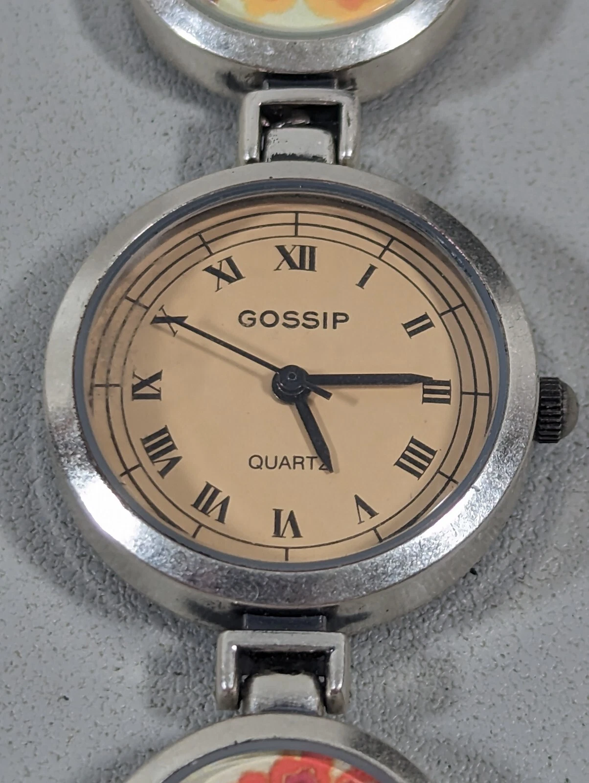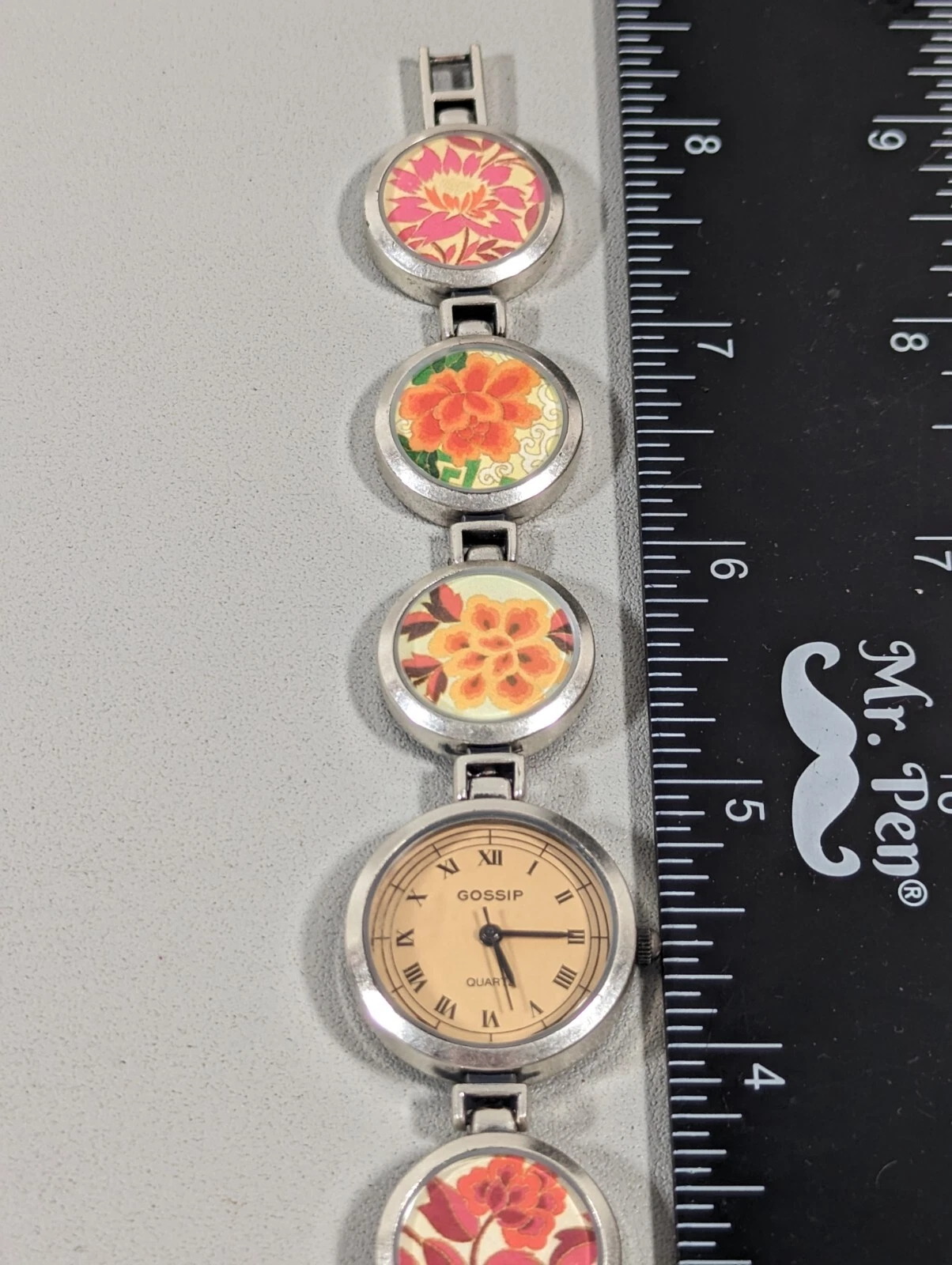 Gossip Brown Dial Round Silver Tone Case Colorful Flower Link Band Watch
