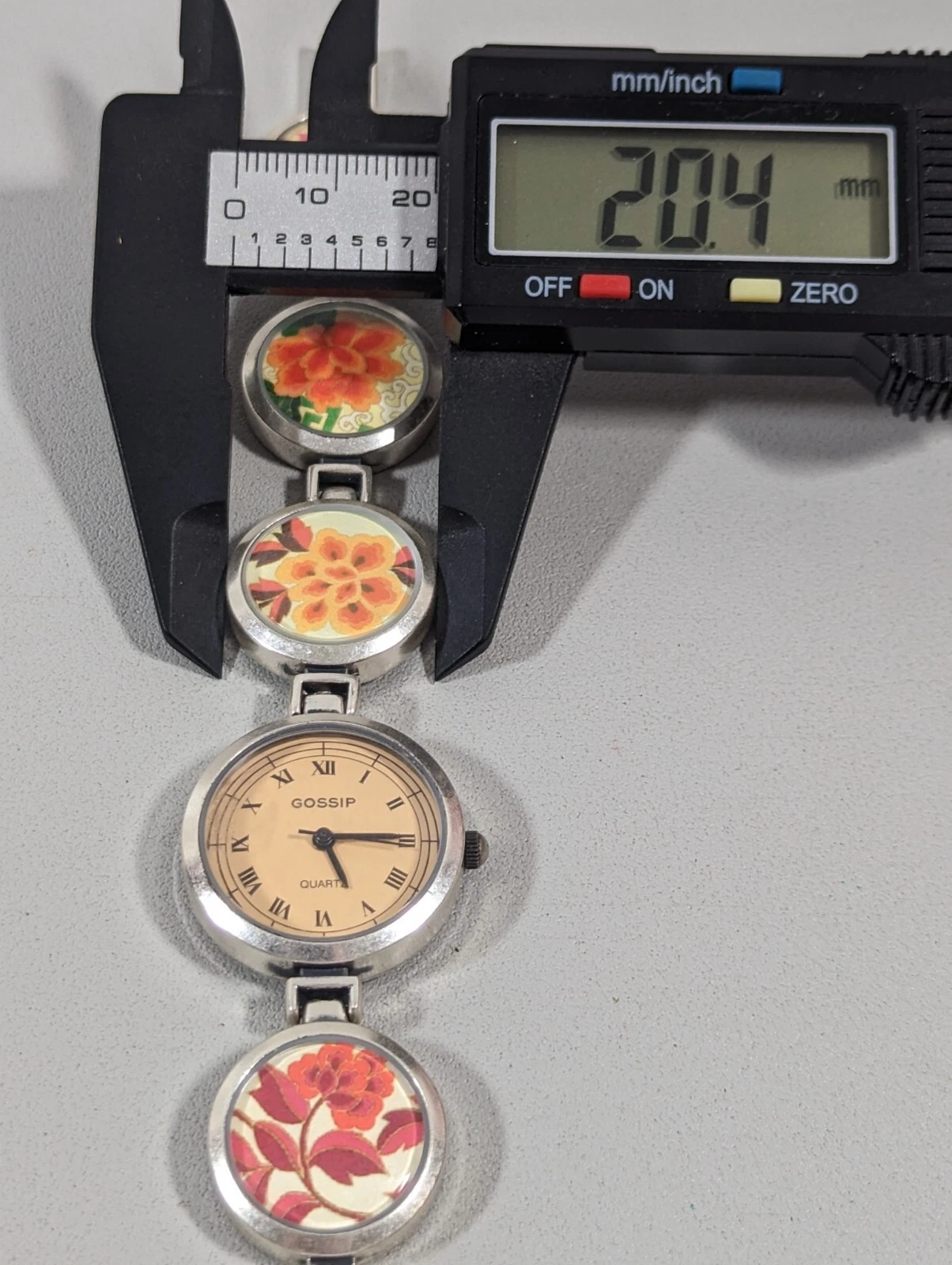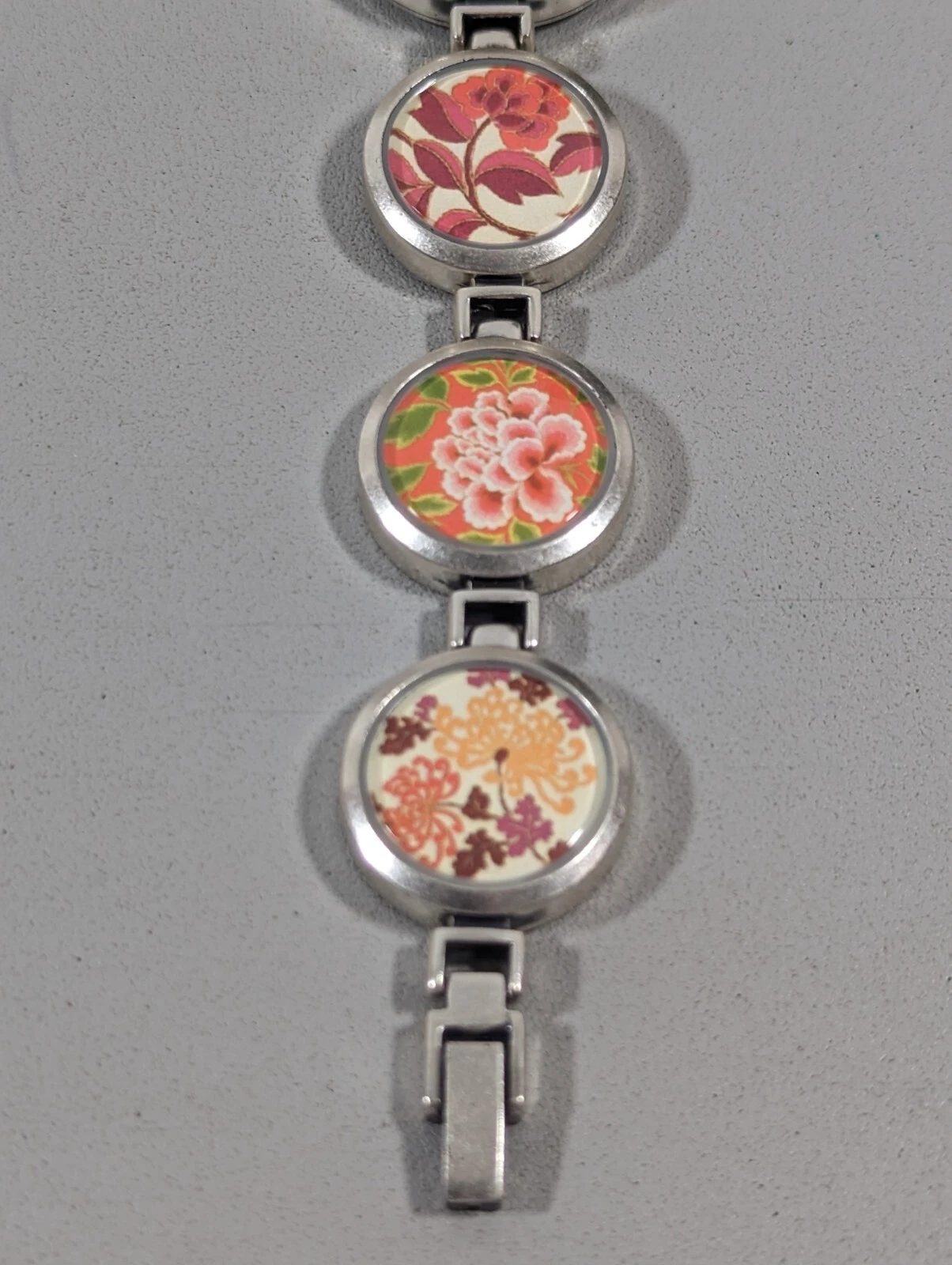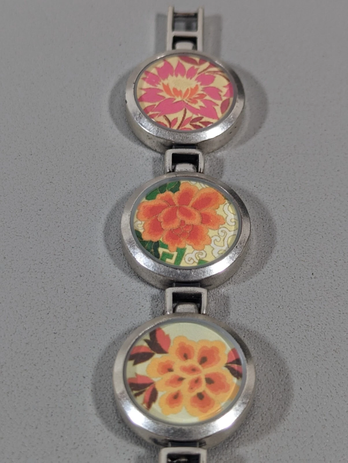 Gossip Brown Dial Round Silver Tone Case Colorful Flower Link Band Watch