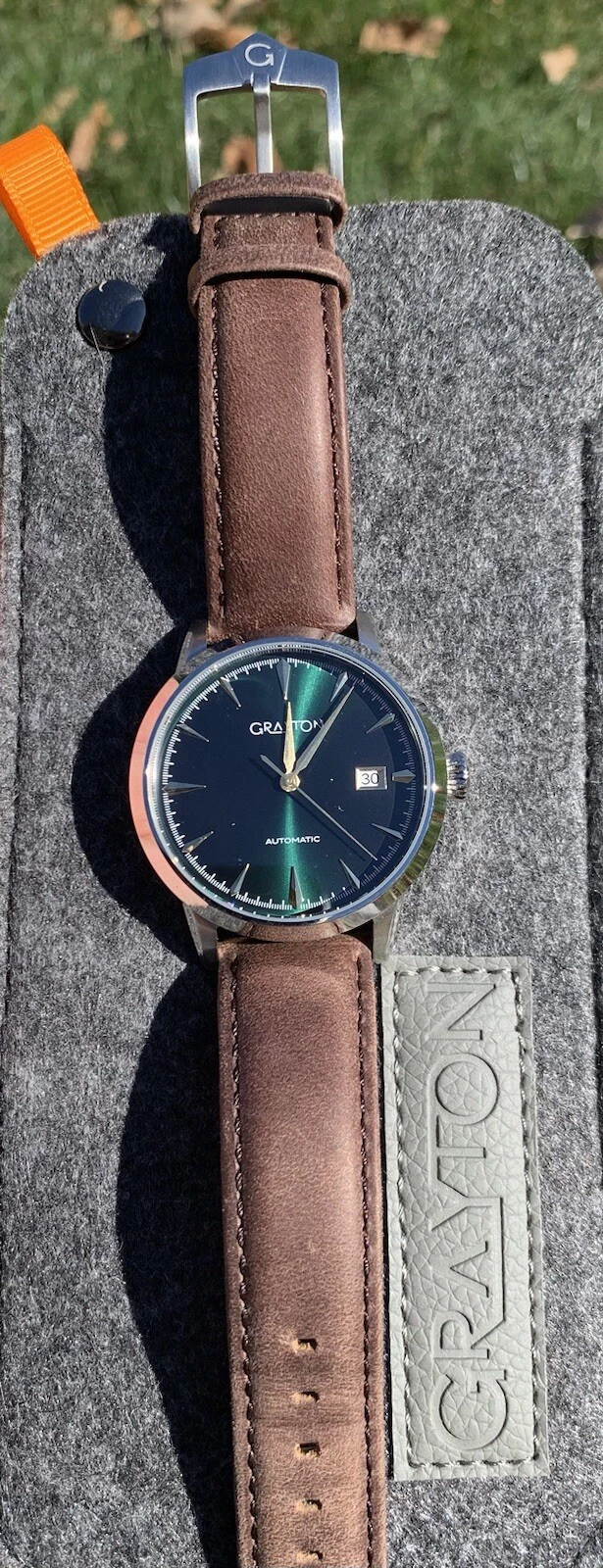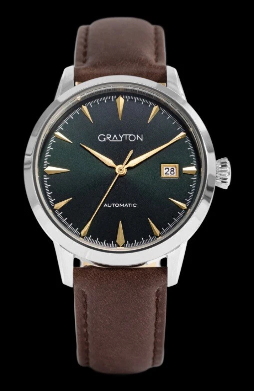 Automatic Mens Watch - Grayton Classic Leather Forest Green. MSRP $610!!
