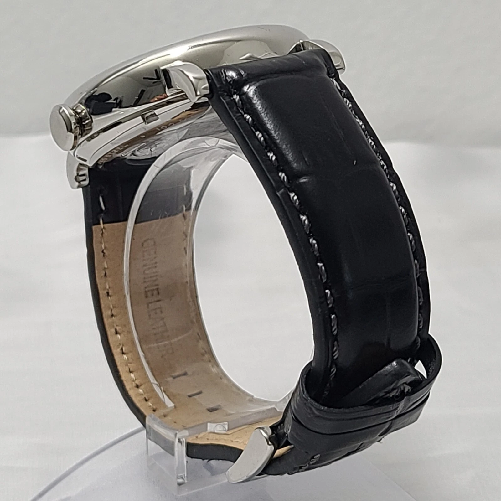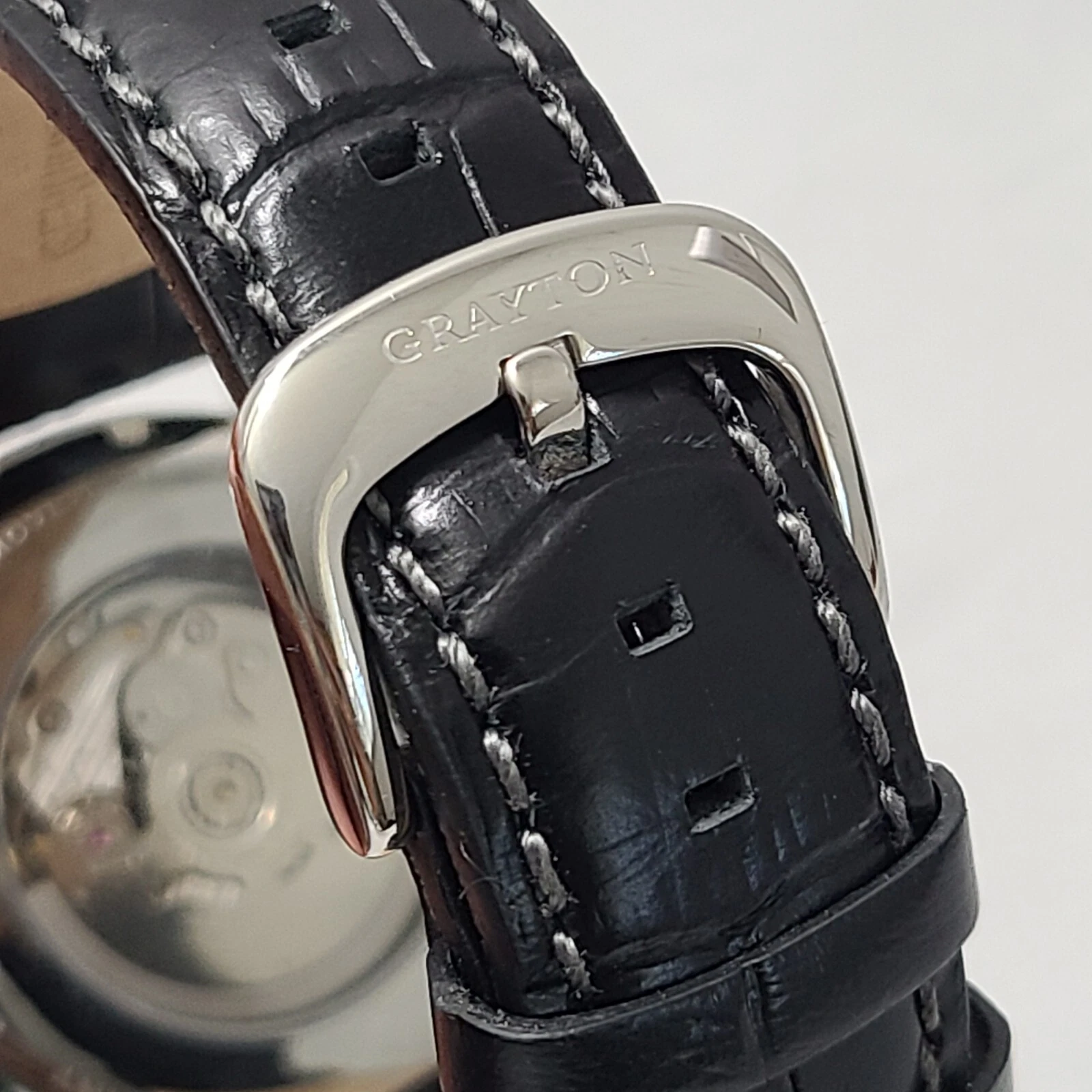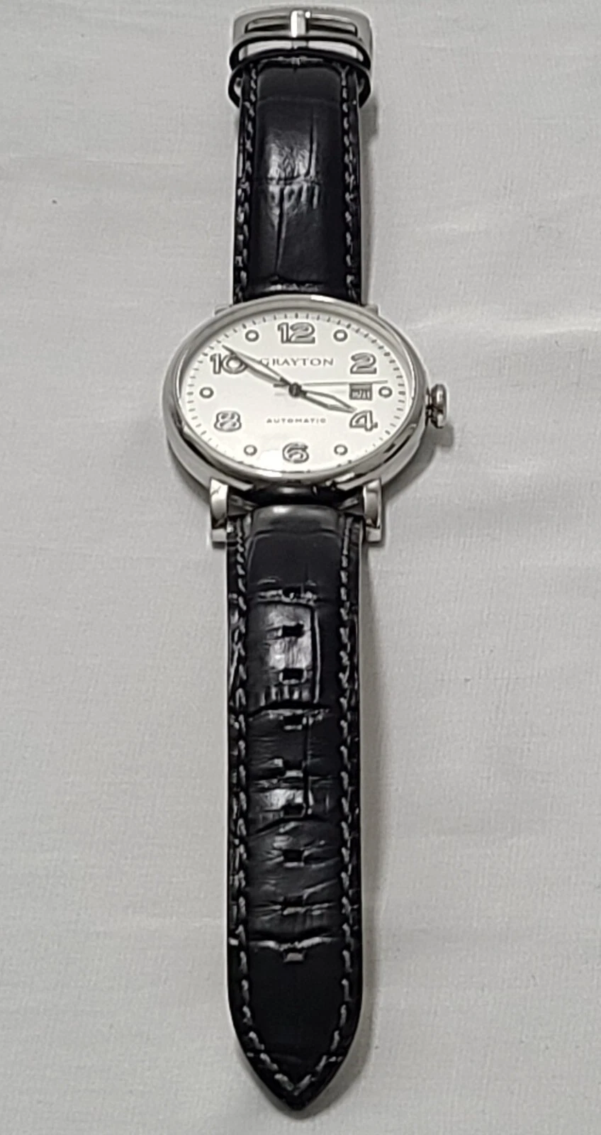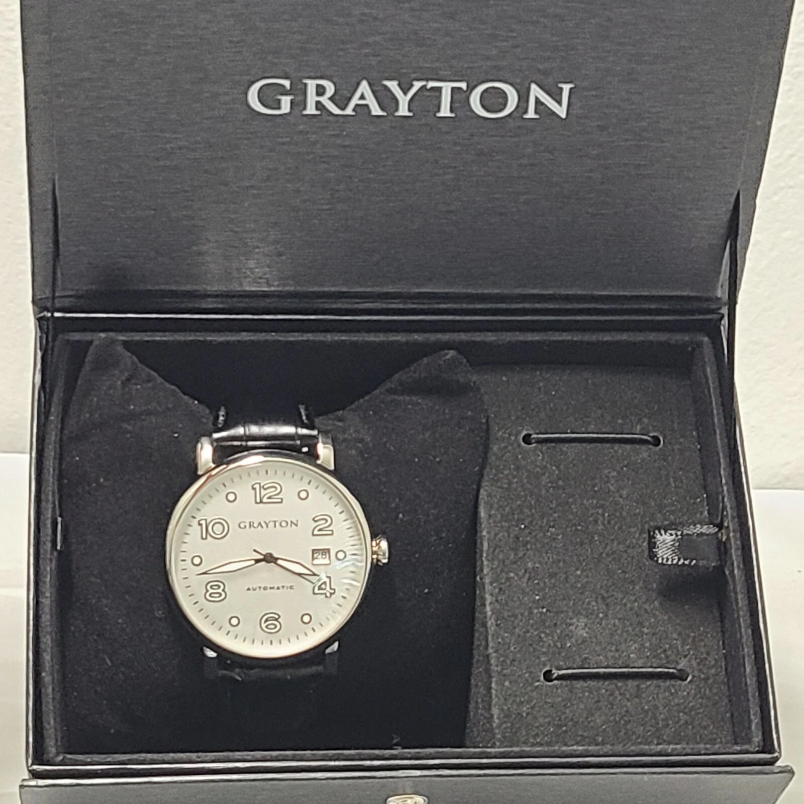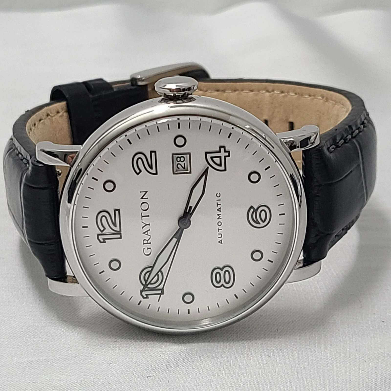 Grayton Silver dial Automatic watch 44mm Black Leather Strap Card NH35A 24 JEWEL