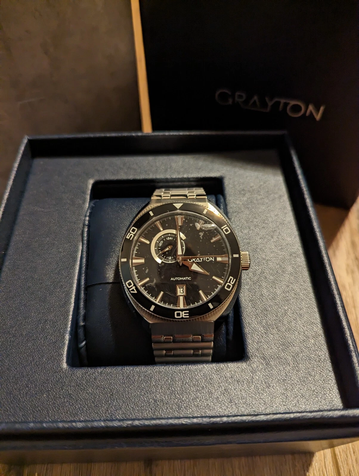 New Grayton Automatic Watch Cushion 24hr Dial 44.5mm W/box Links
