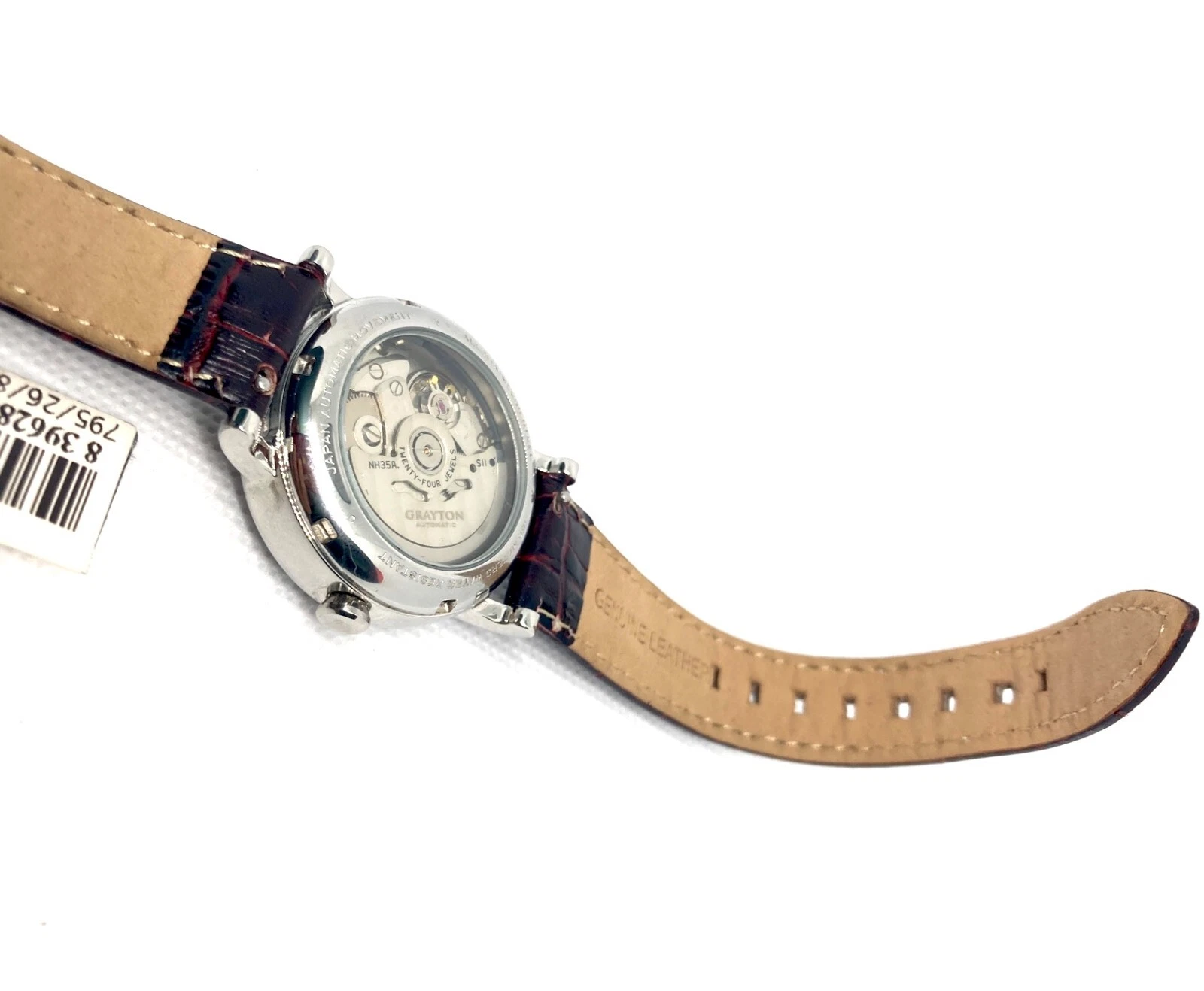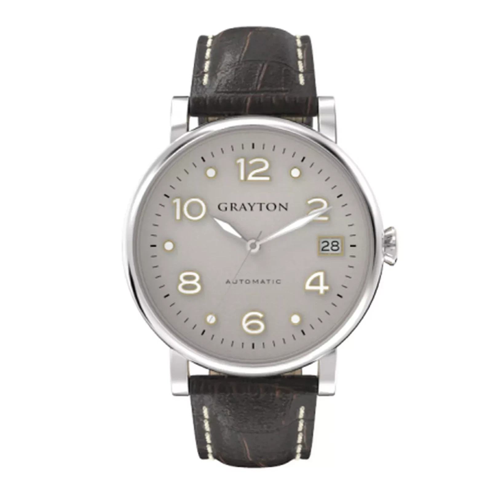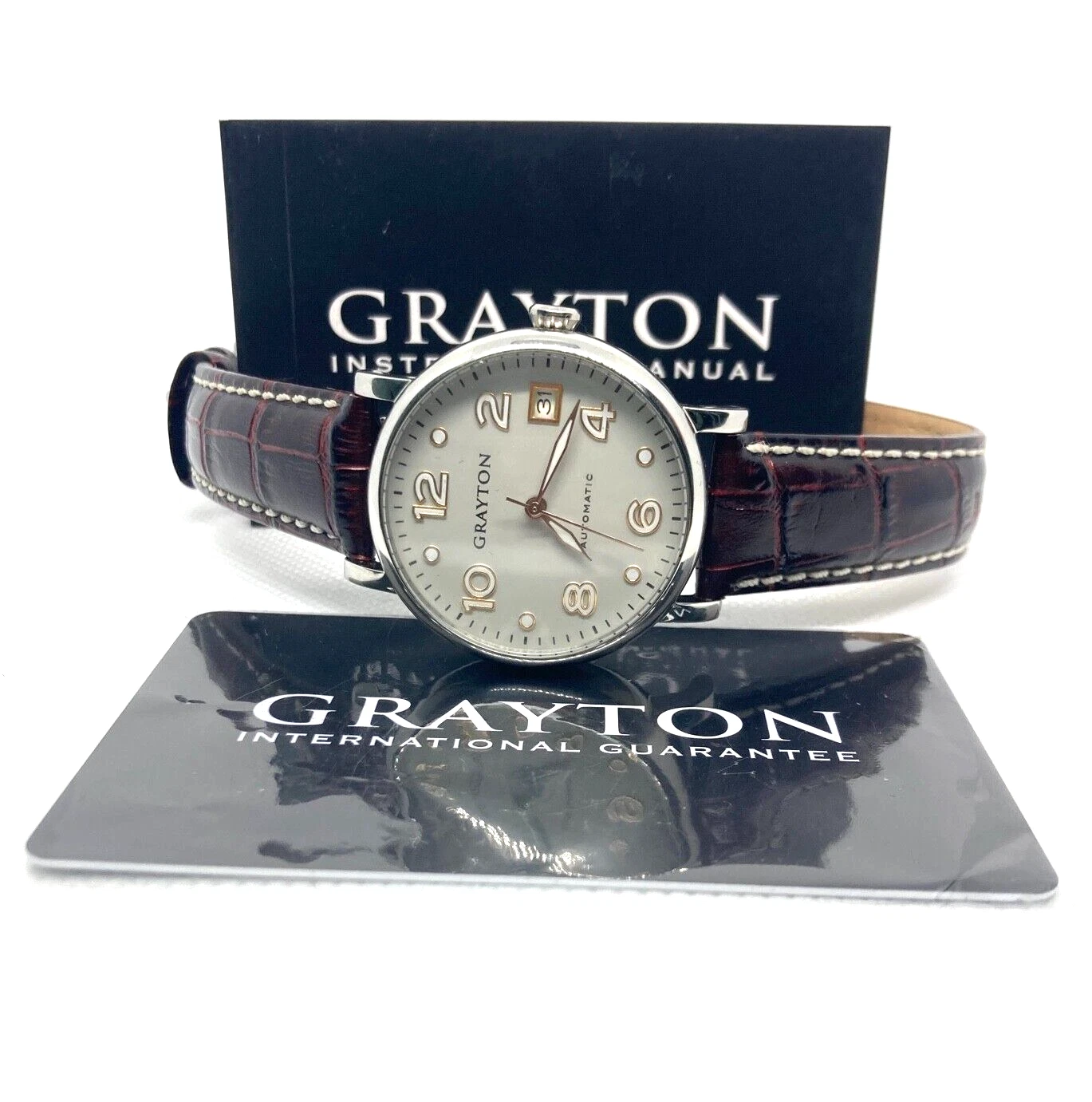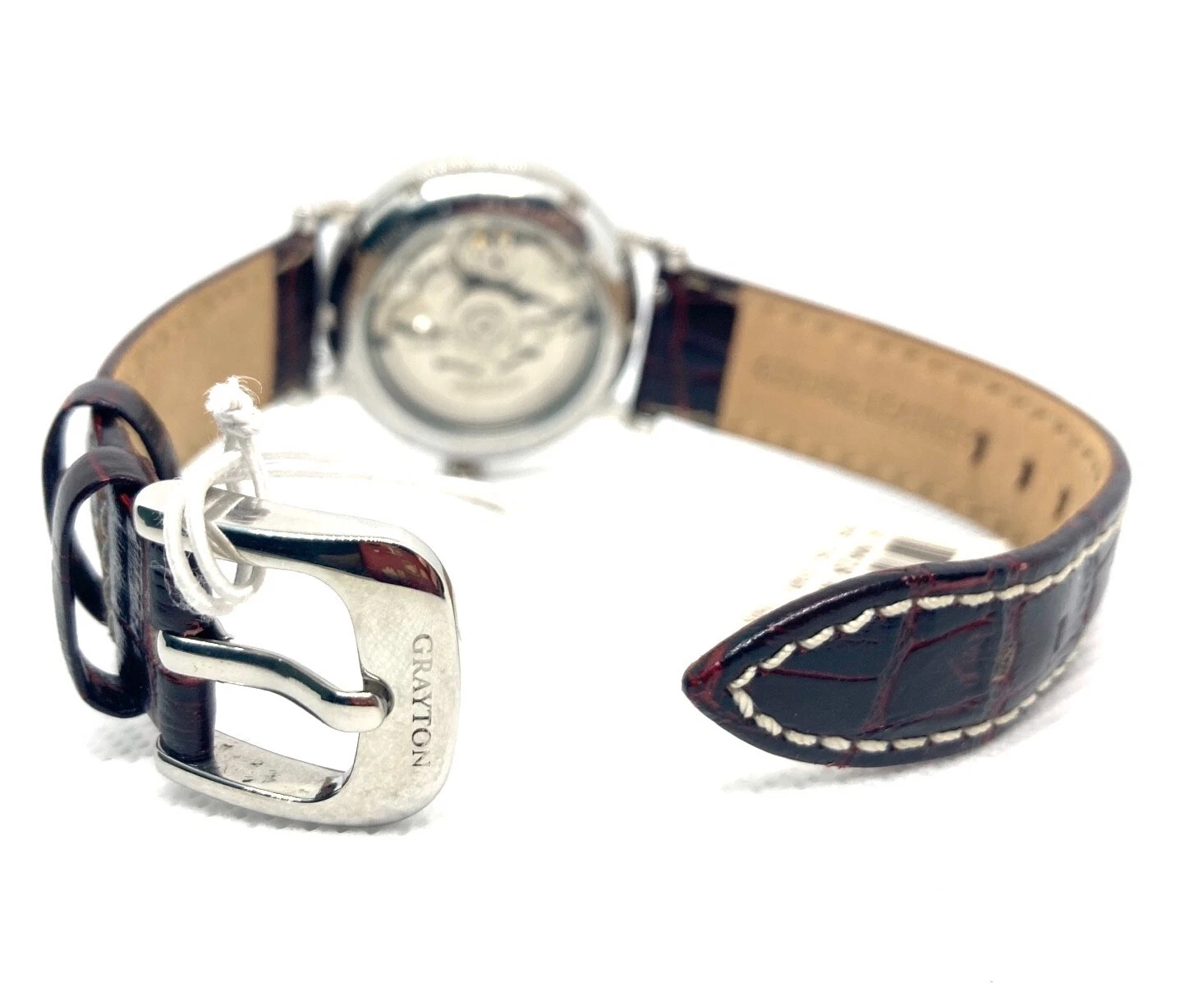 NEW GRAYTON AUTOMATIC BROWN CROCODILE LEATHER SILVER CLASSIC LADIES WATCH 36MM
