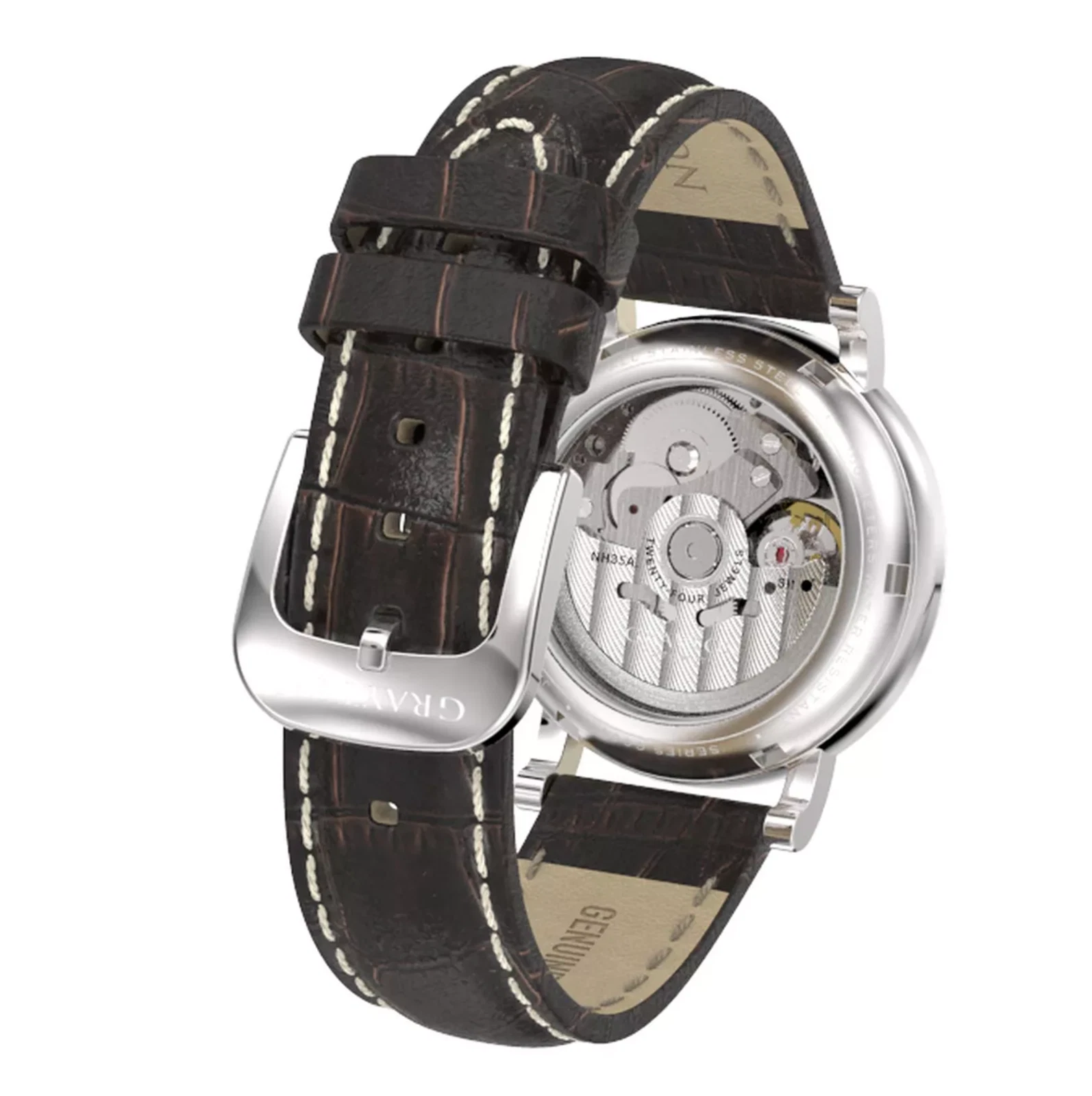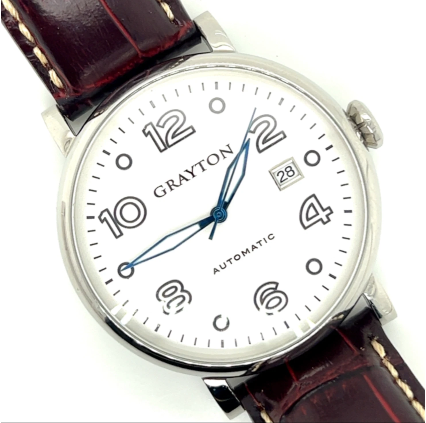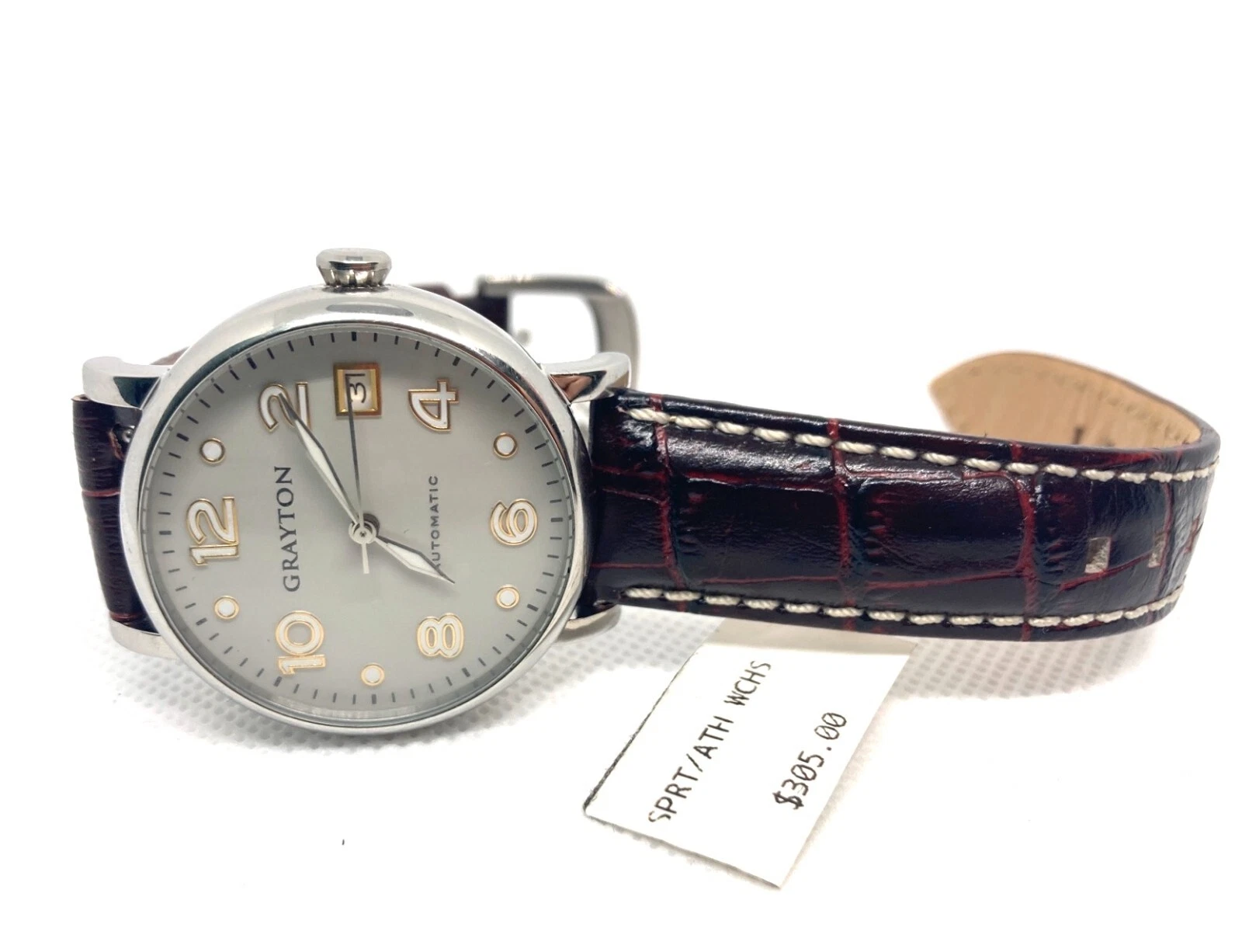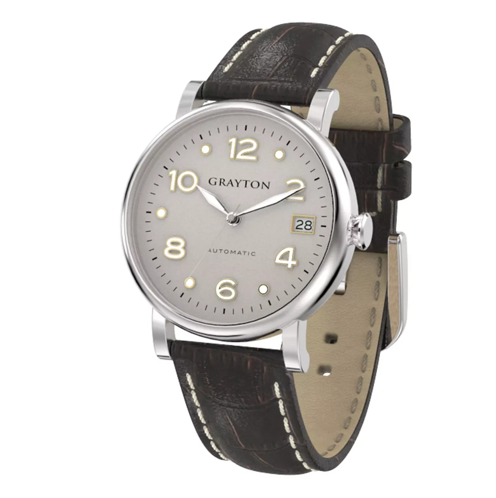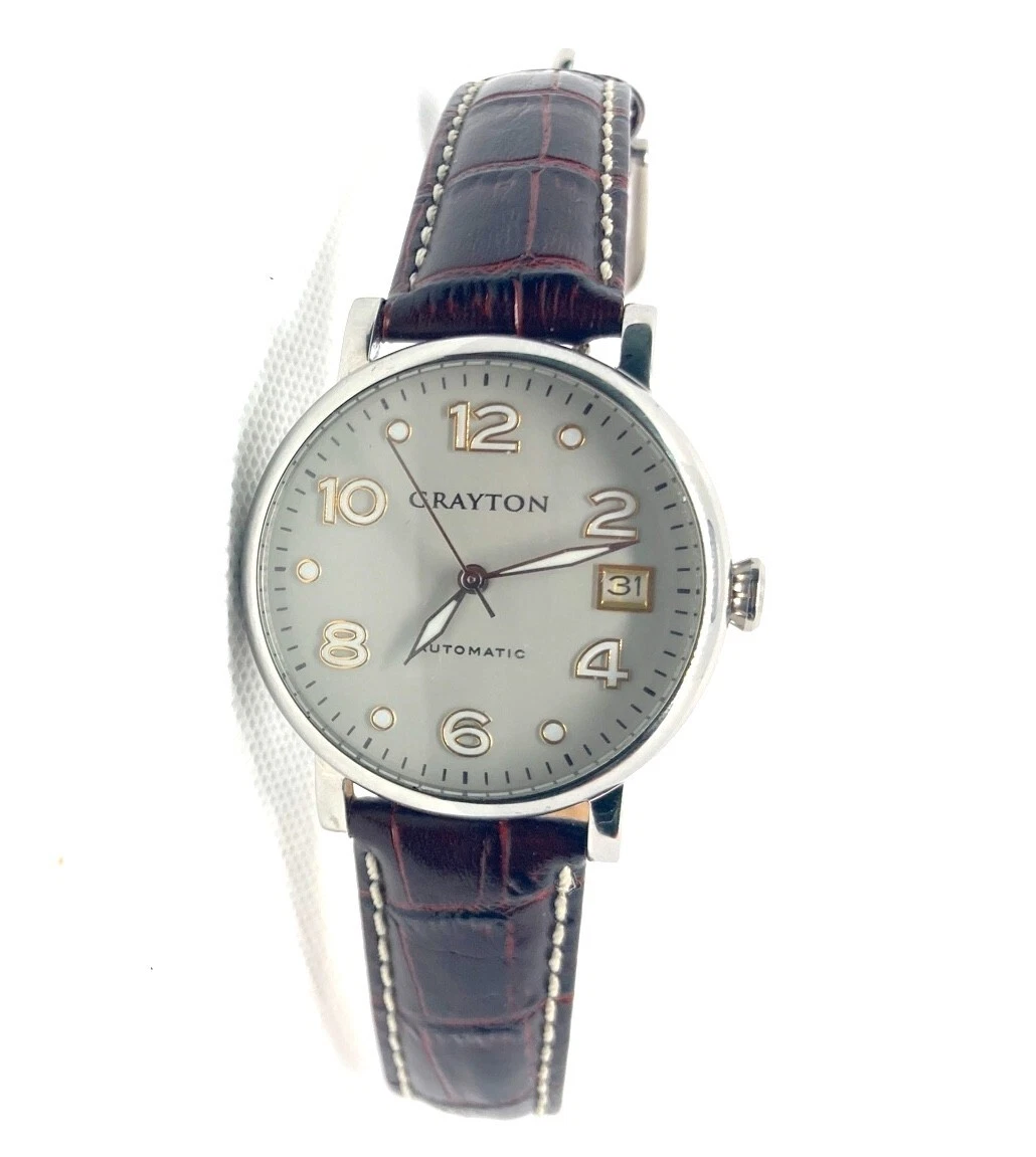 NEW GRAYTON AUTOMATIC BROWN CROCODILE LEATHER SILVER CLASSIC LADIES WATCH 36MM
