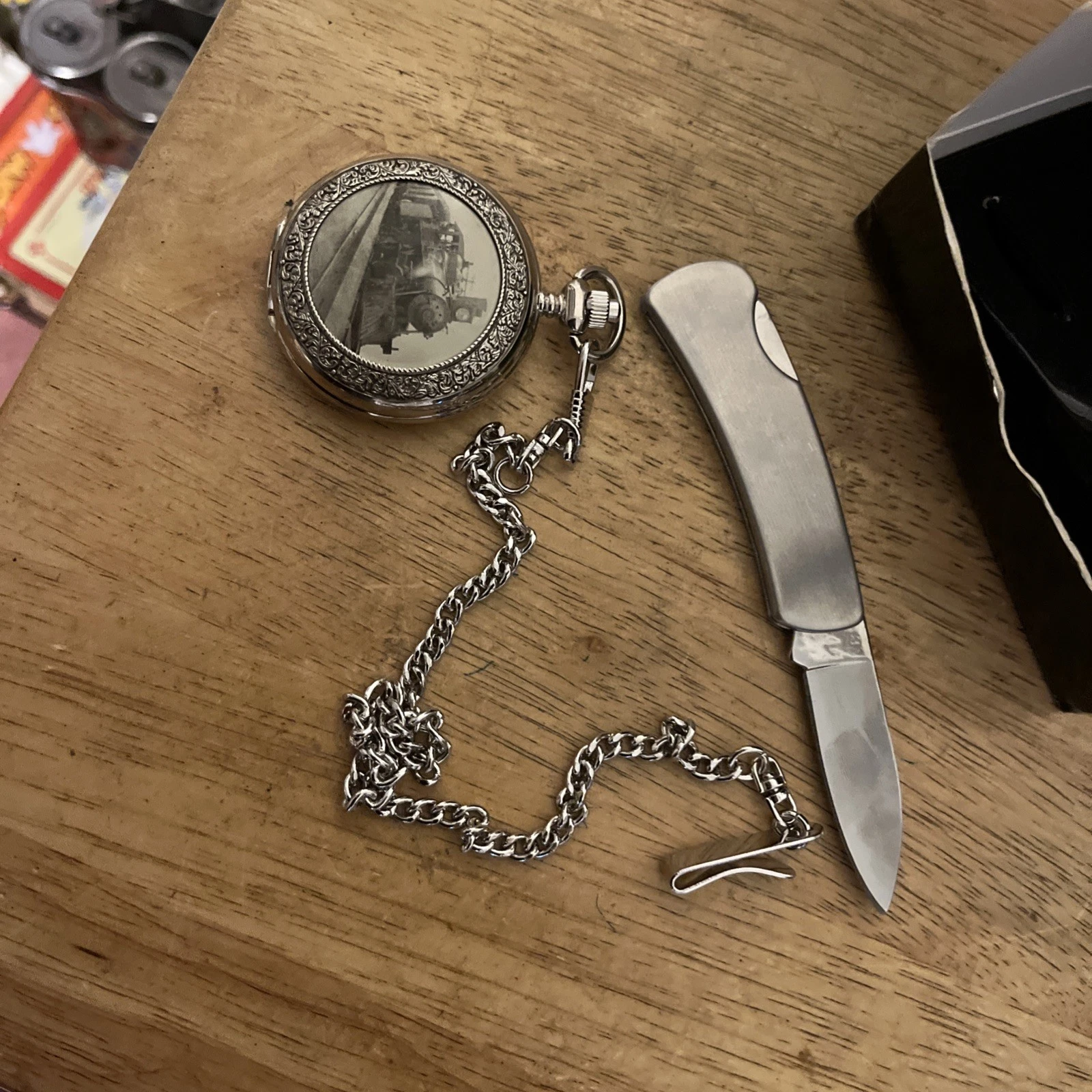 2005 Avon Pocket Watch Knife Steam Train Railroad Locomotive W/box