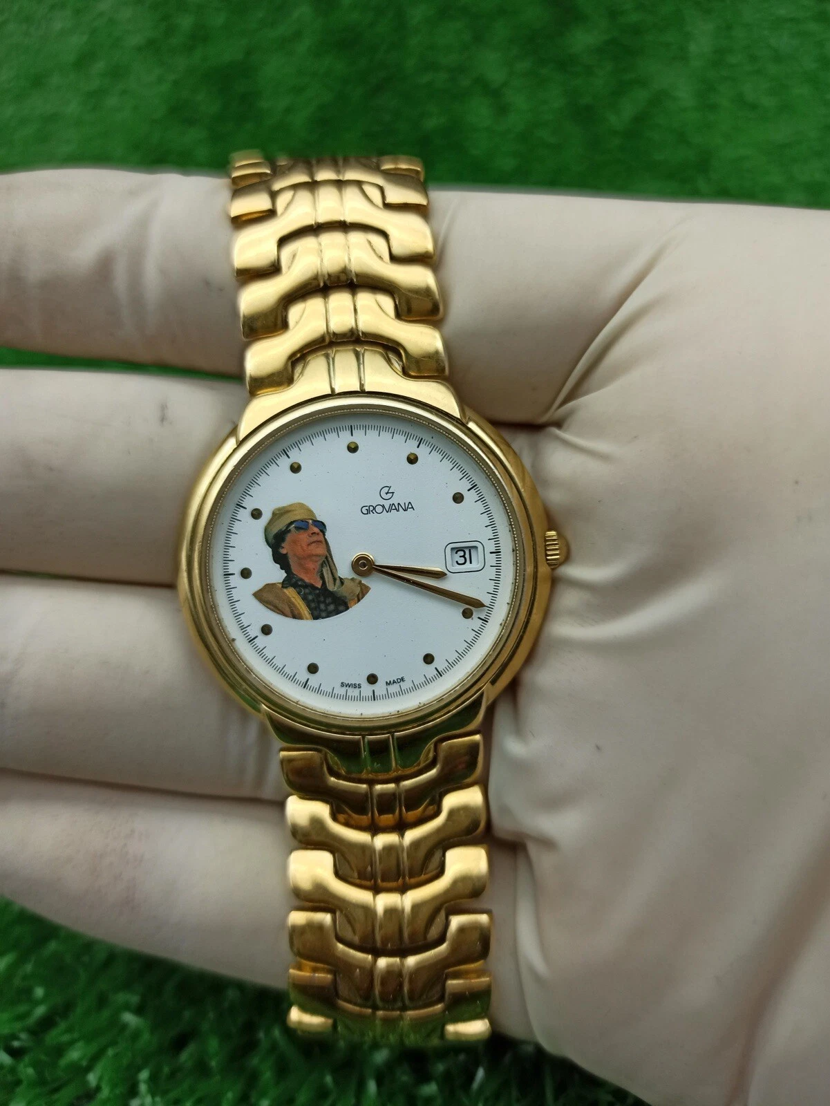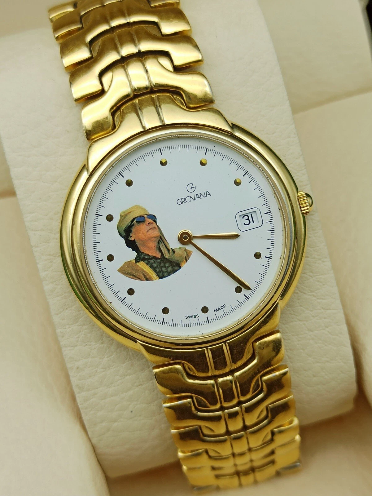 Rare Memorial GROVANA Watch For Muammar Gaddafi Issued For Military Gifts Swiss