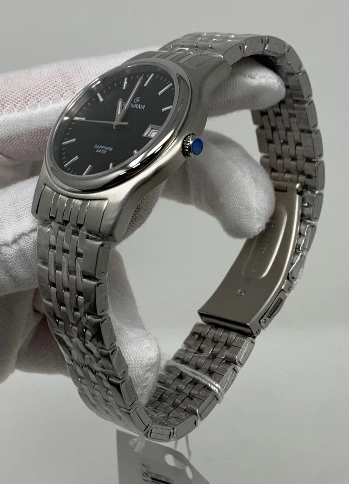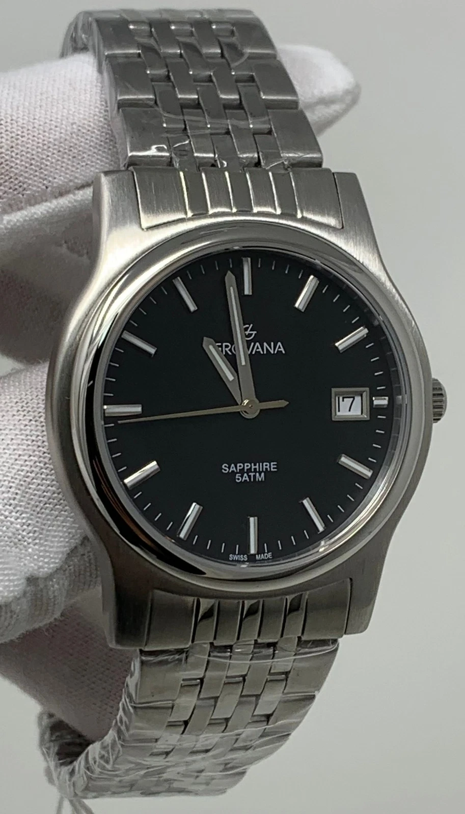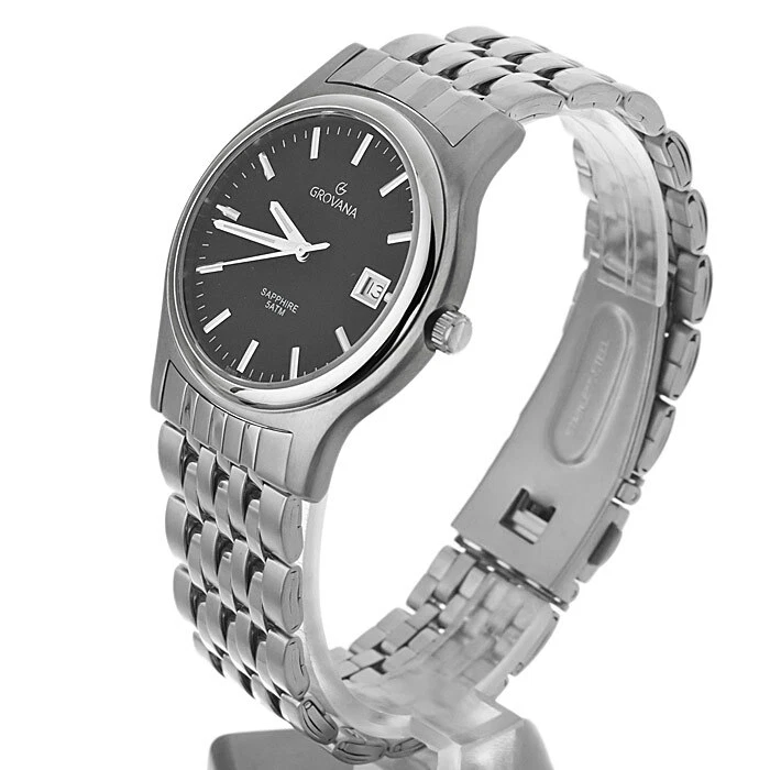 Grovana Swiss Made Black Dial Silver Tone Stainless Steel Men's Watch 1561.1134