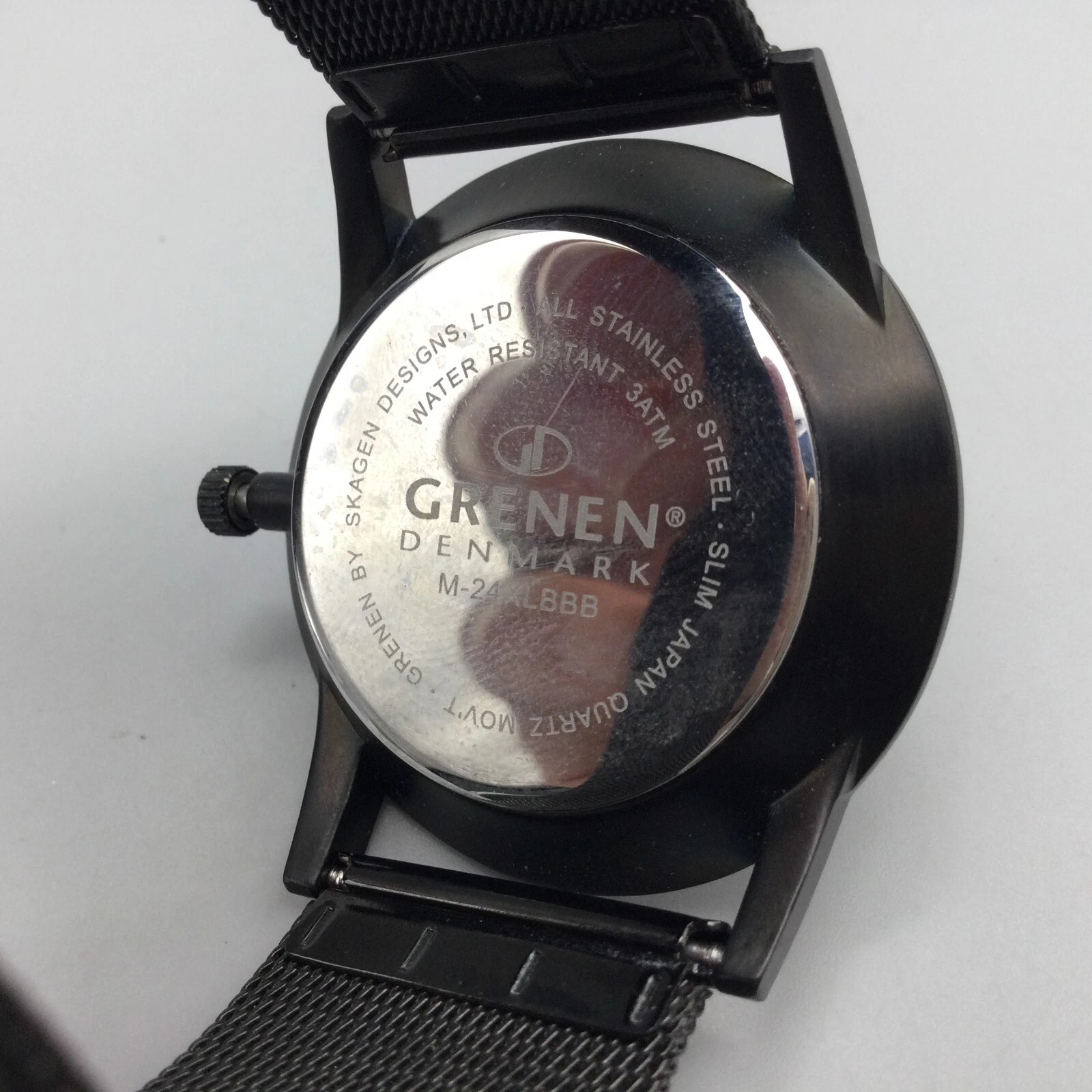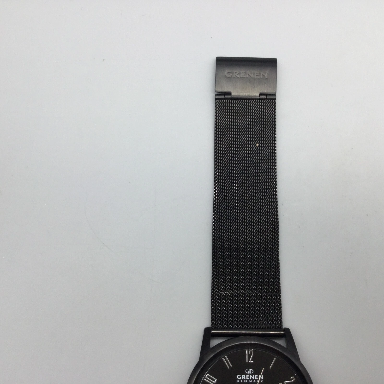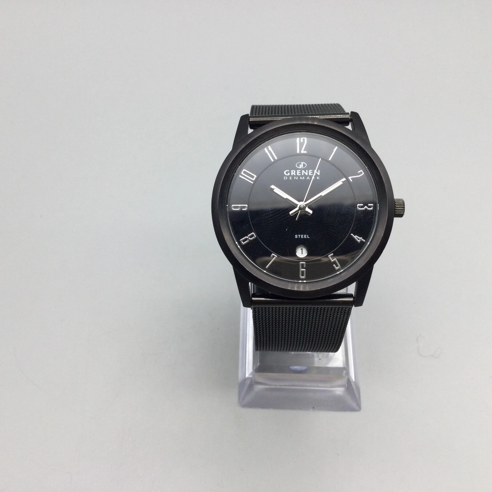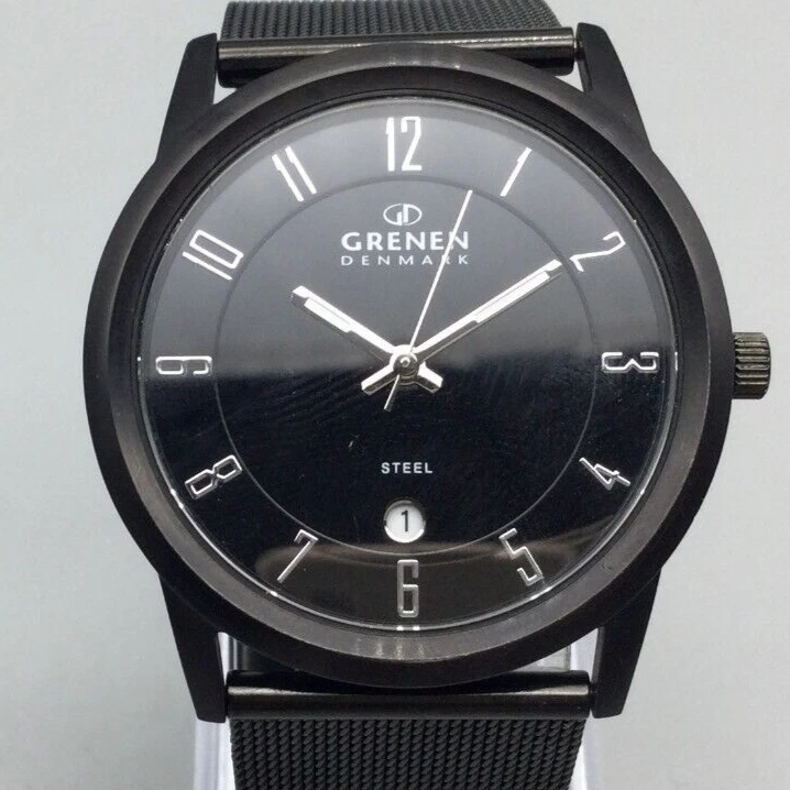 Grenen Denmark Slim Watch Men 38mm Silver Tone Black Adj Band Date New Battery
