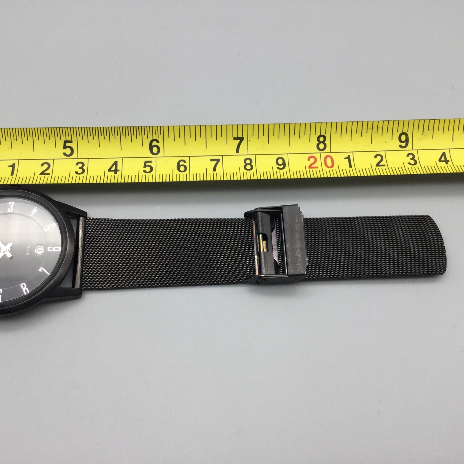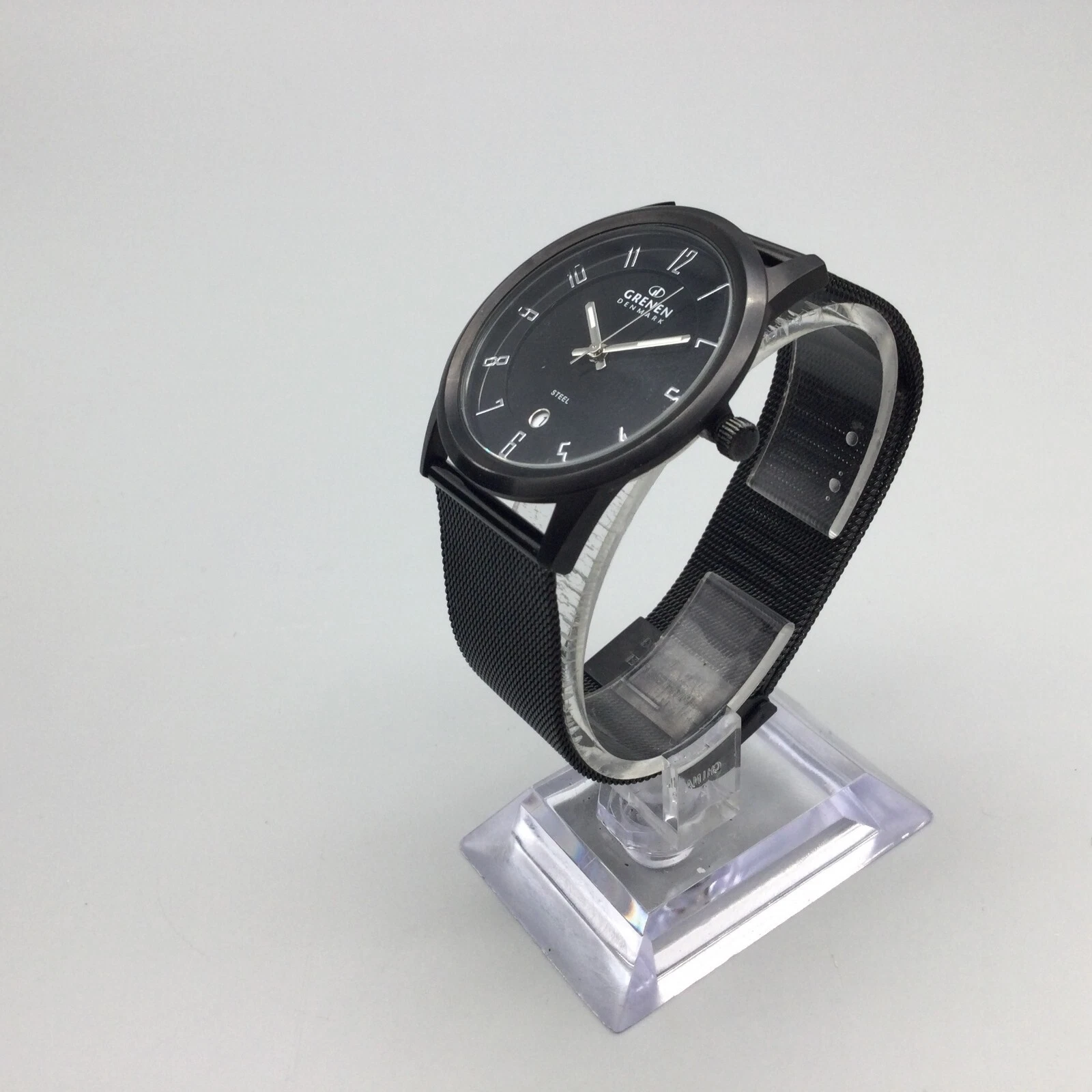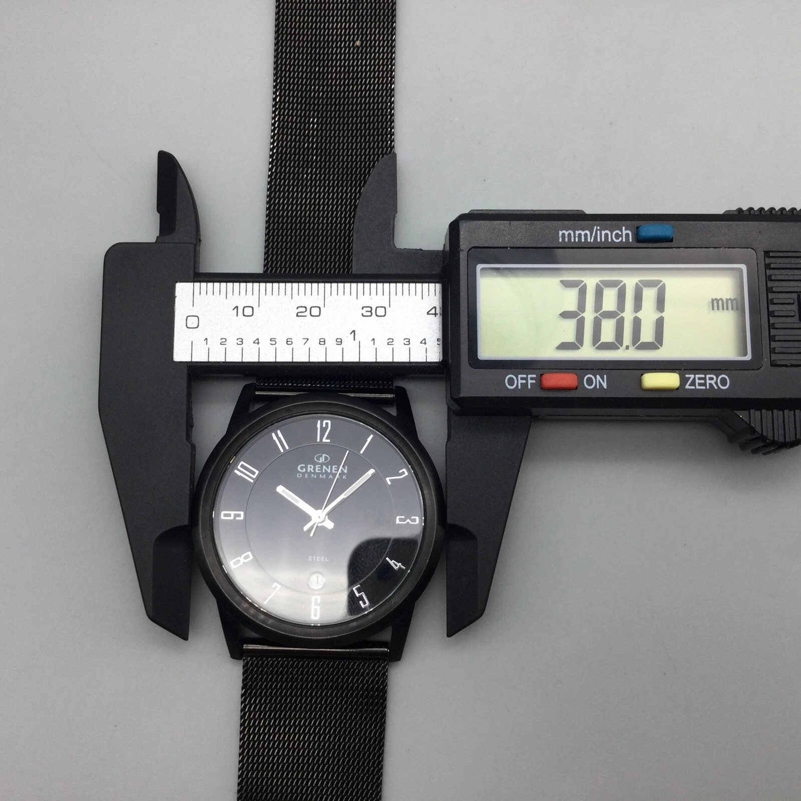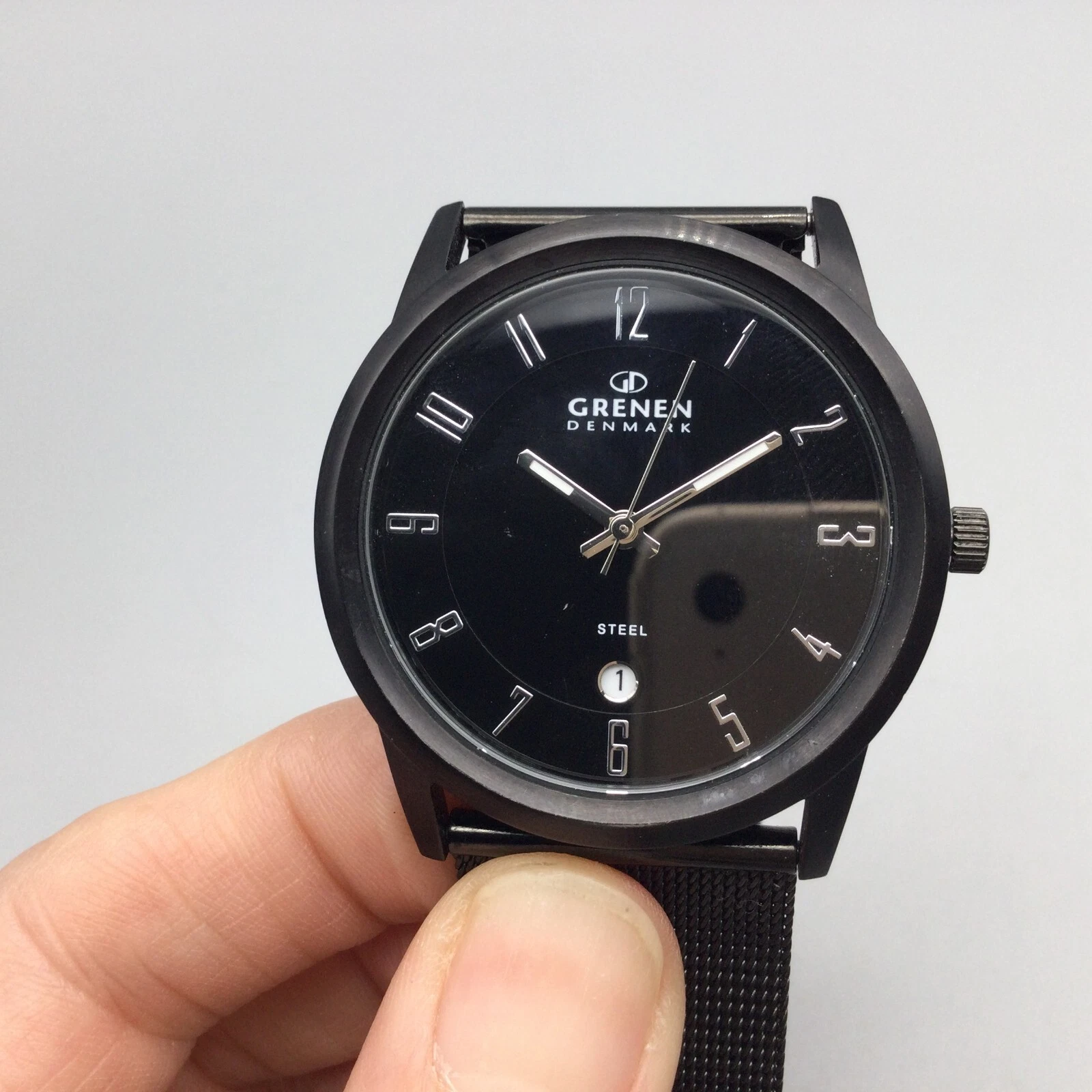 Grenen Denmark Slim Watch Men 38mm Silver Tone Black Adj Band Date New Battery