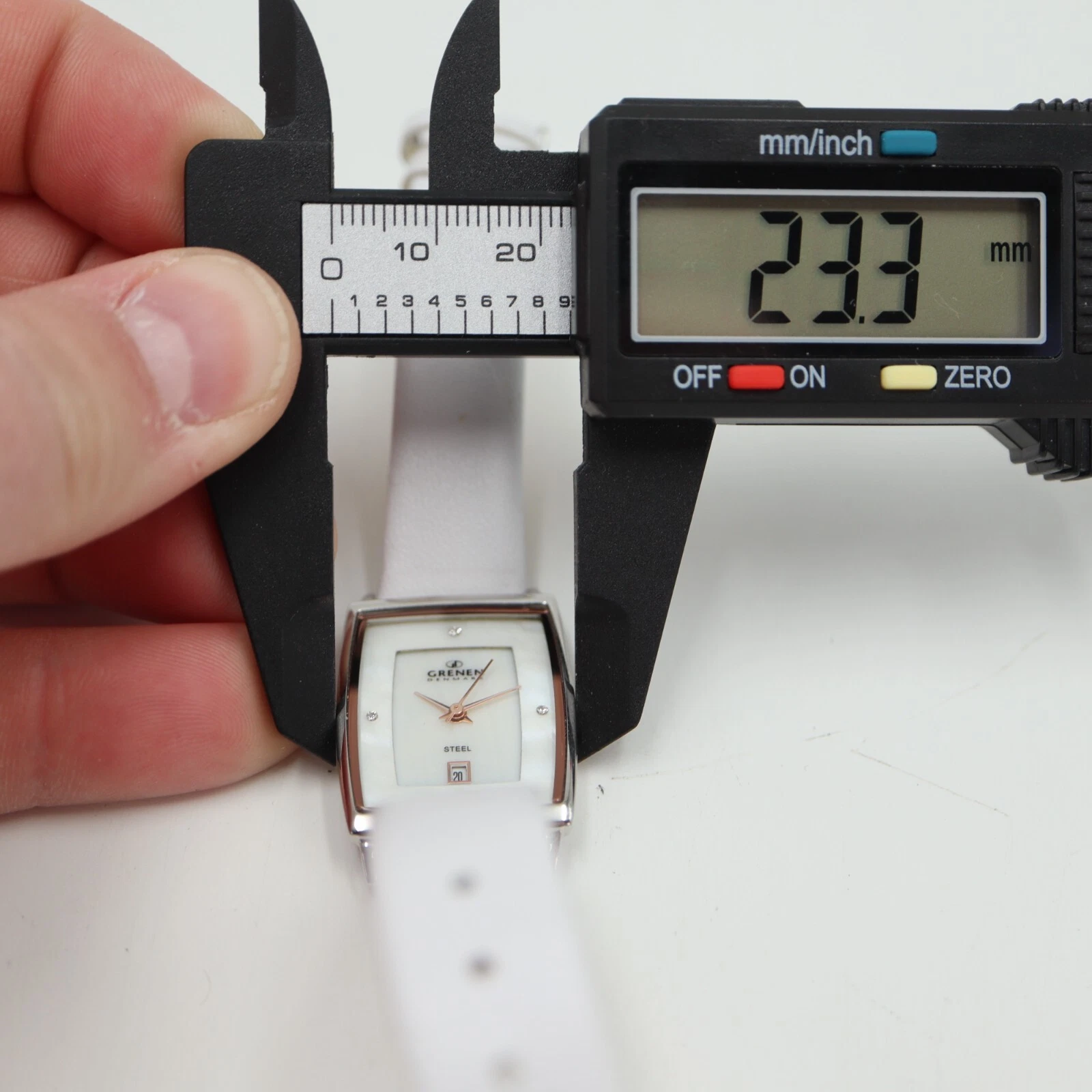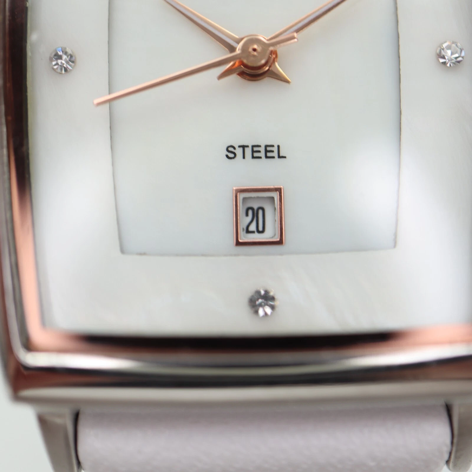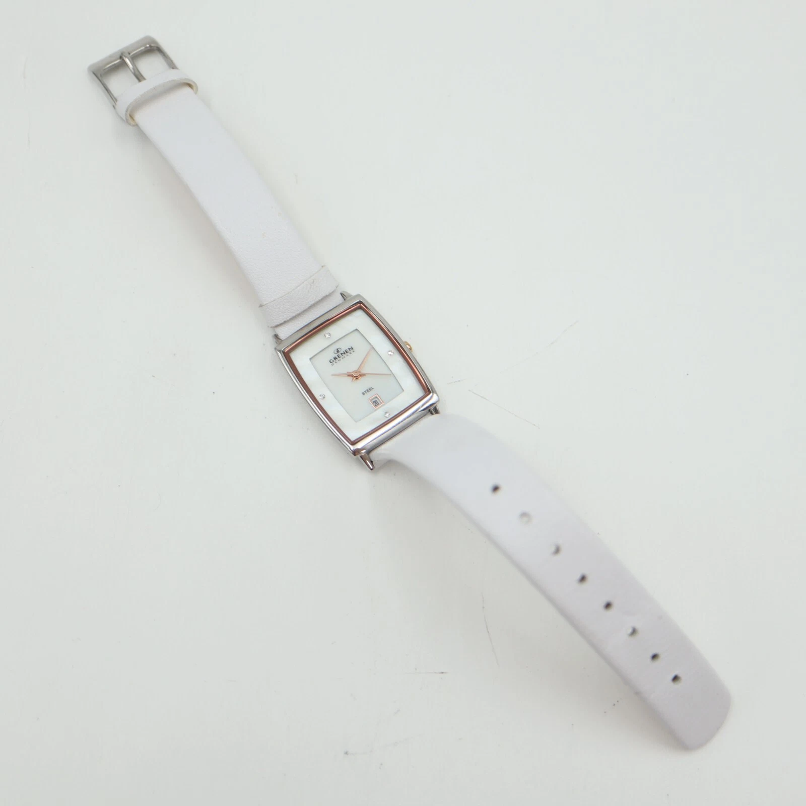 Grenen Denmark Womens 23mm MOP Barrel Date Dial White Leather w New Battery