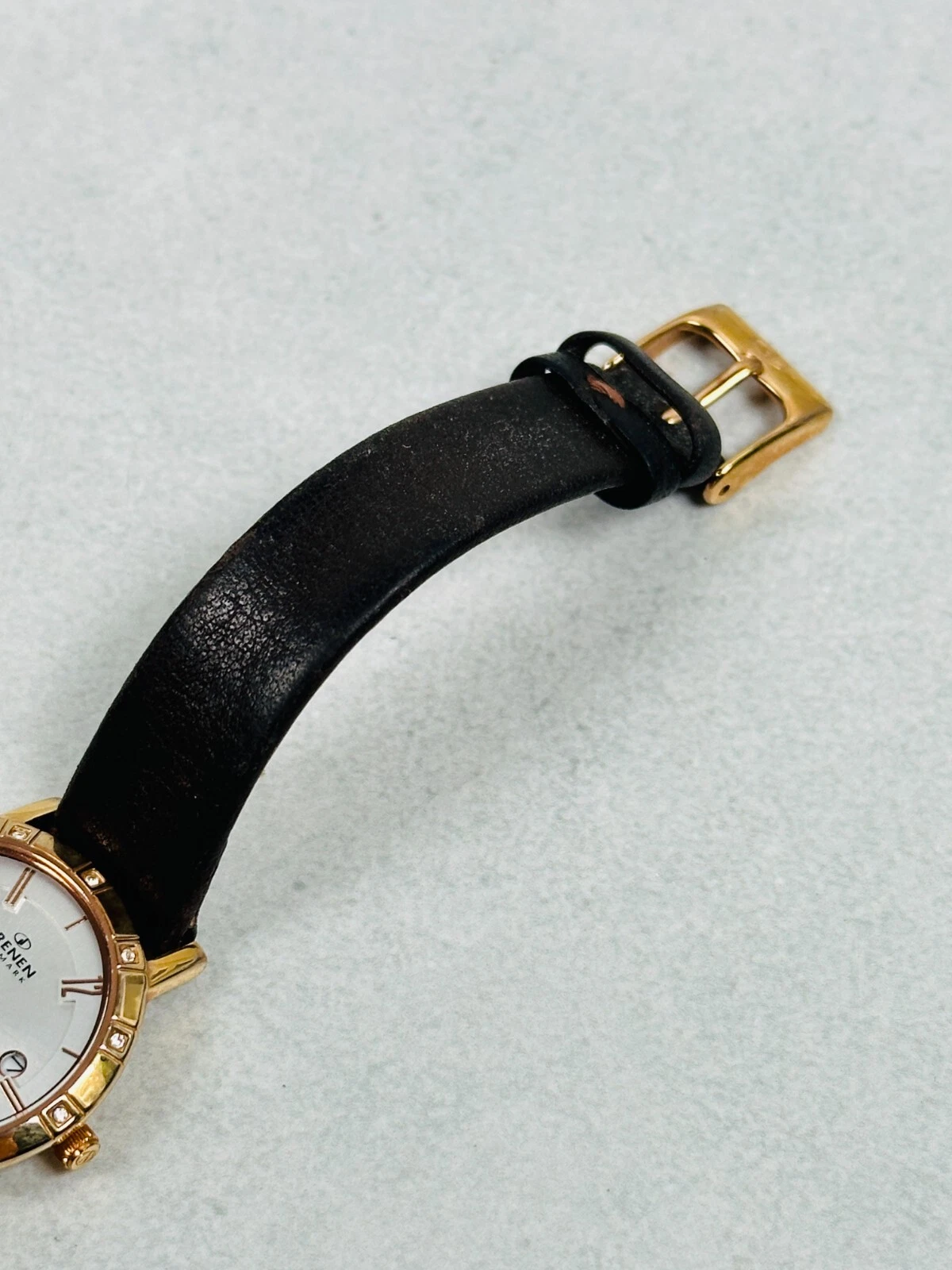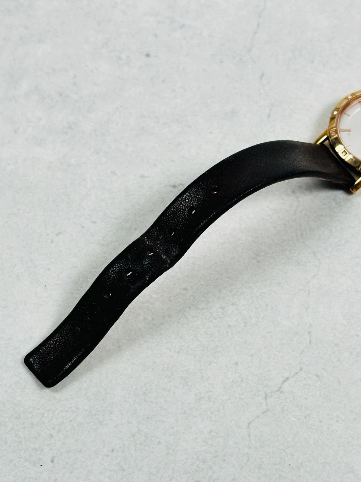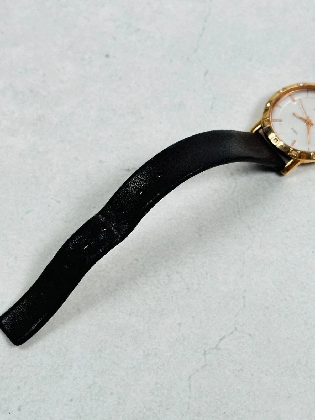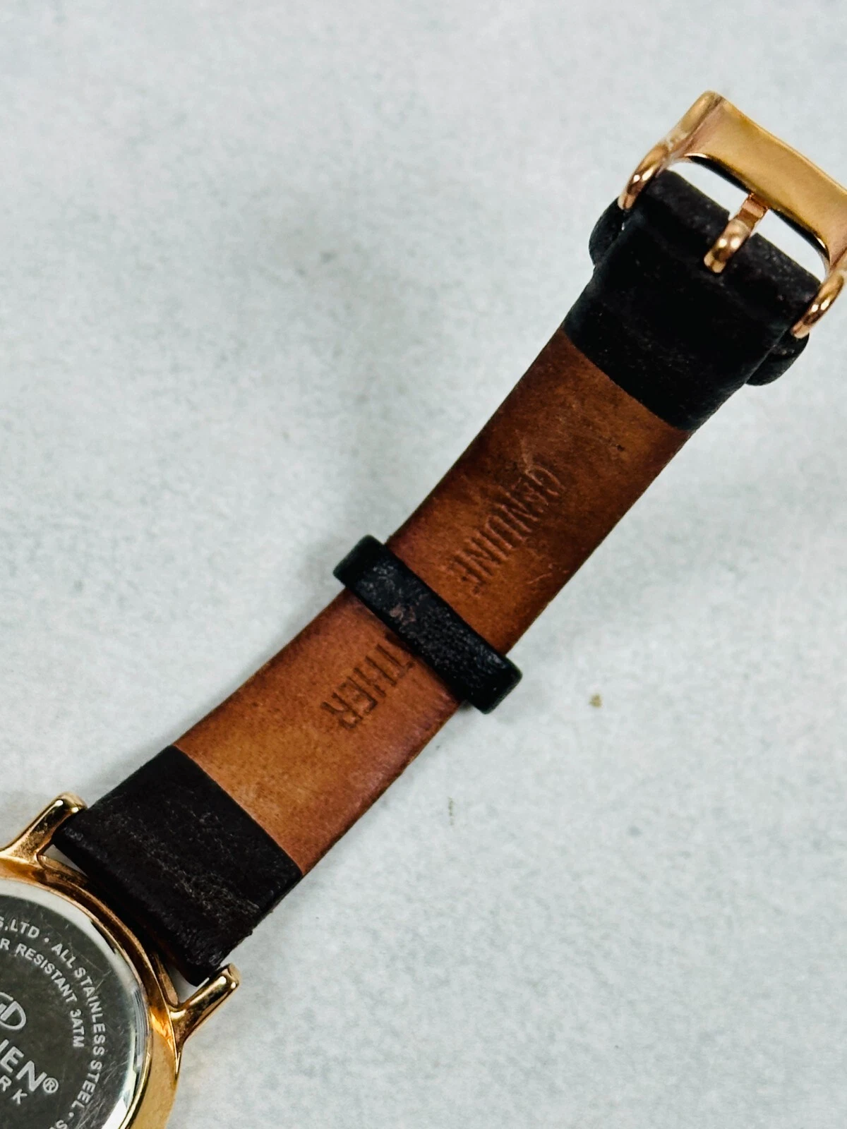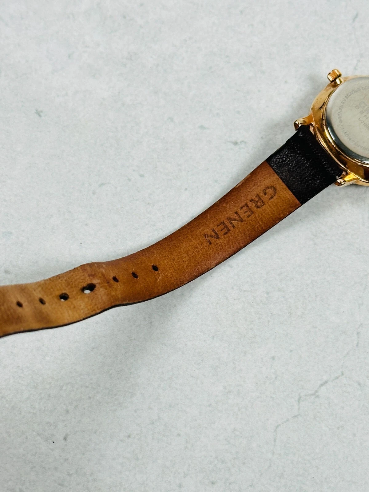 Grenen Denmark Watch Womens 27mm Date Gold Tone Crystal Bezel Steel New Battery