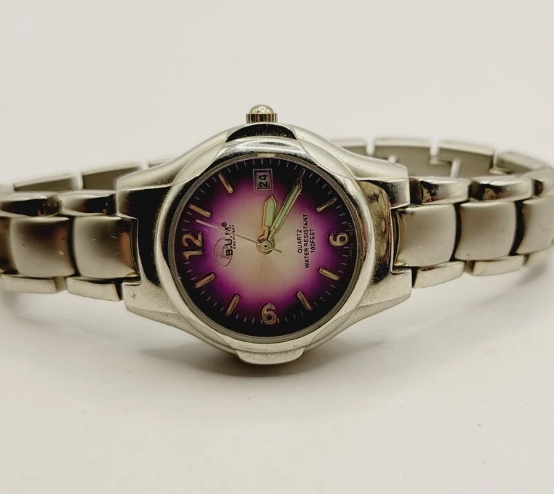 Ladies BUM Equipment Round Stainless Silver Tone Purple Dial Analog Watch