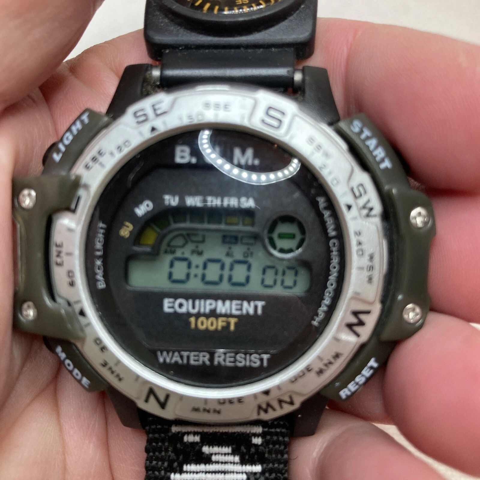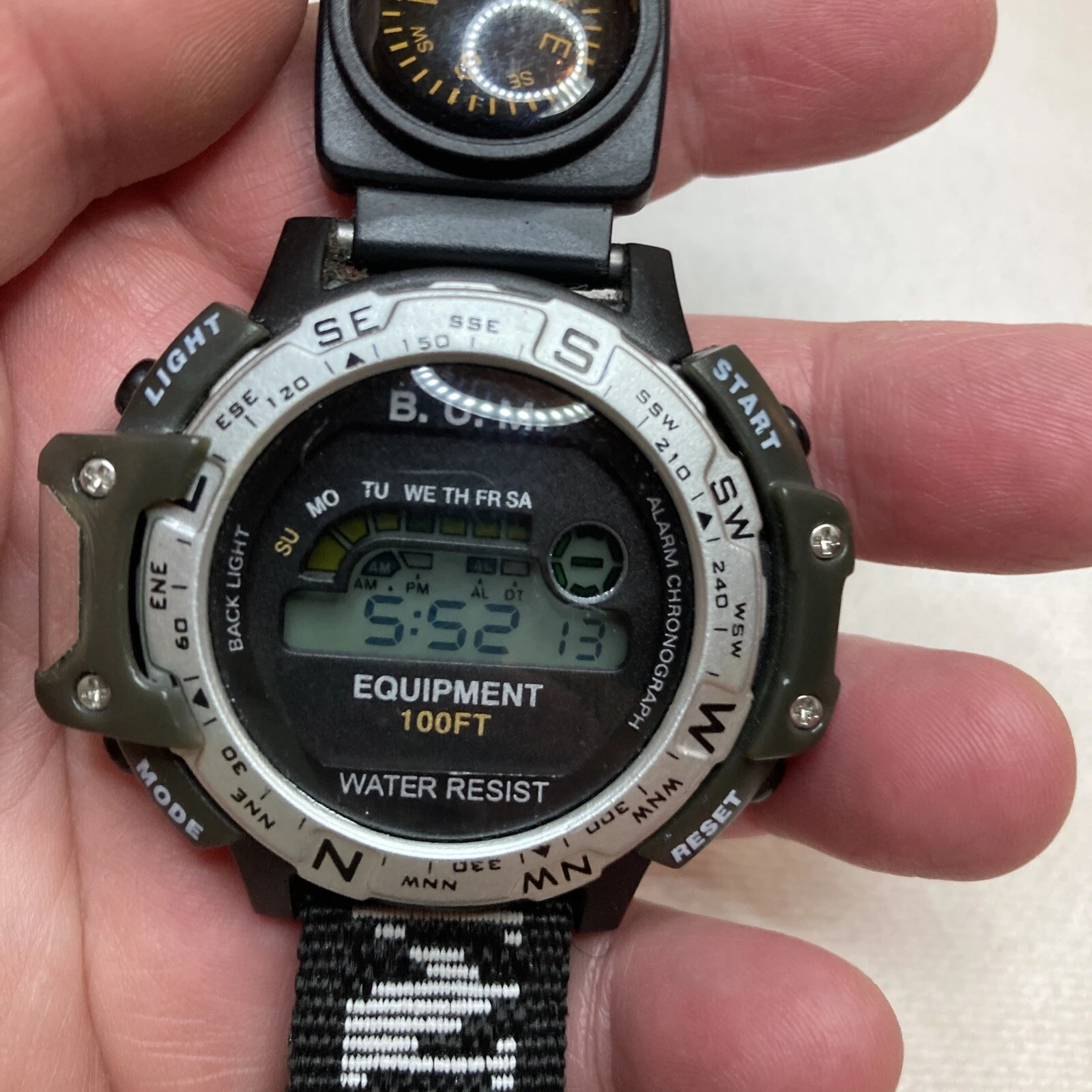 Working BUM Equipment Clip Watch With Compass, Light, Stopwatch. New Battery