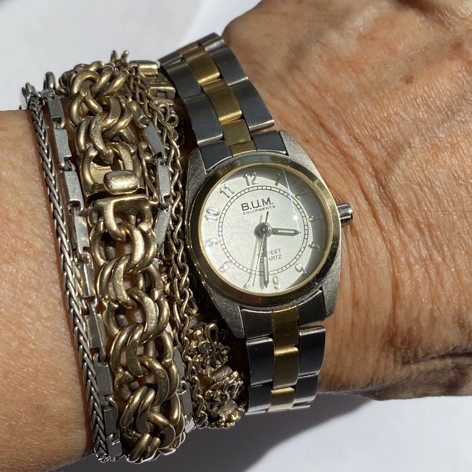 BUM Women's Two Tone Watch Silver Gold Water Resistant 1in Wide Face New Battery