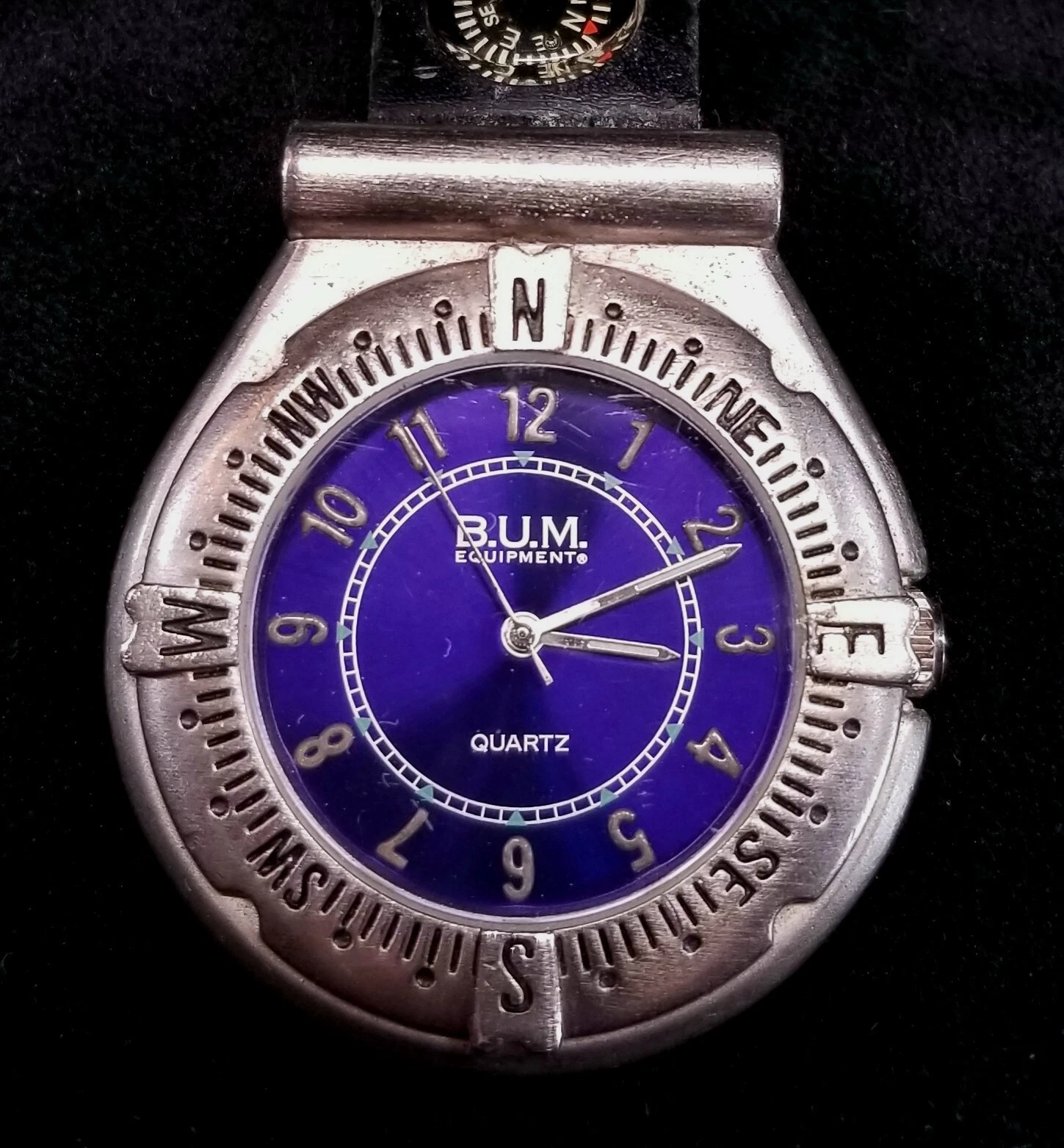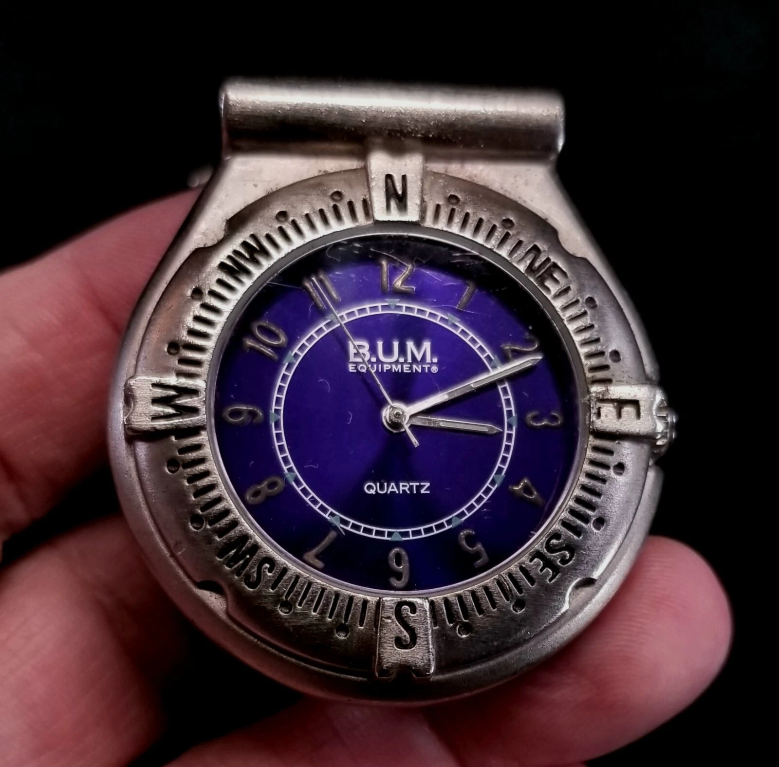 B U M Equipment Compass Quartz Pocket Watch On Snap Fob 43mm Needs Battery