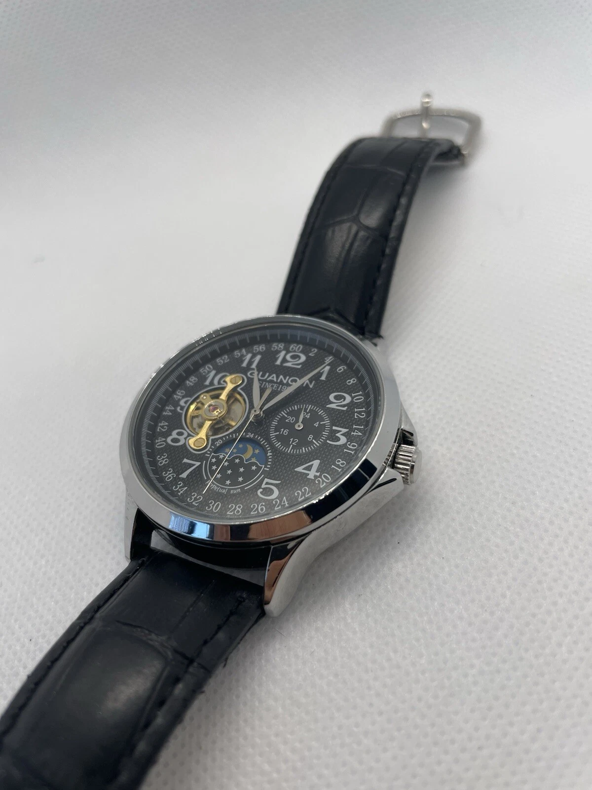 Guanqin Men's Automatic Open Heart Watch, Fly Wheel, Star Moon 21 Jewel WR. 3BAR
