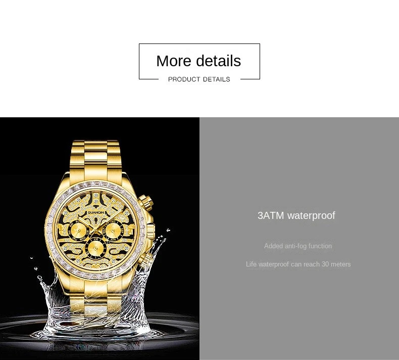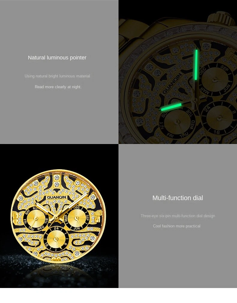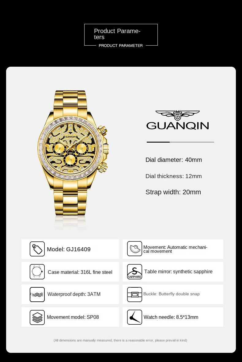 Guanqin Men's Automatic Mechanical Watch Waterproof Business Rainbow Tiger 40mm