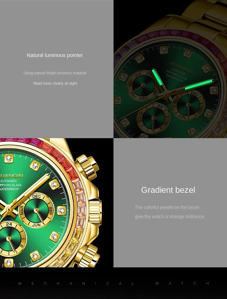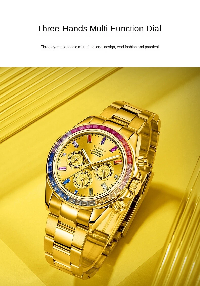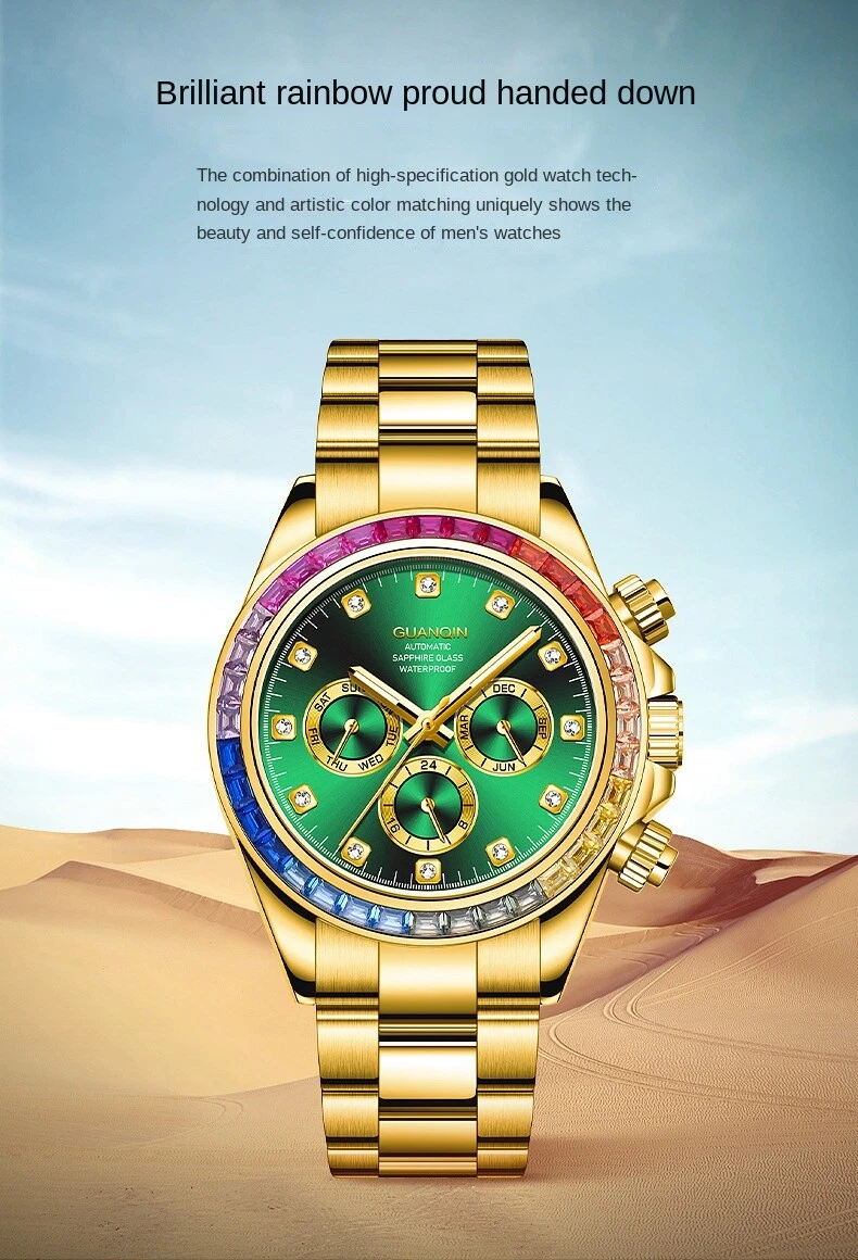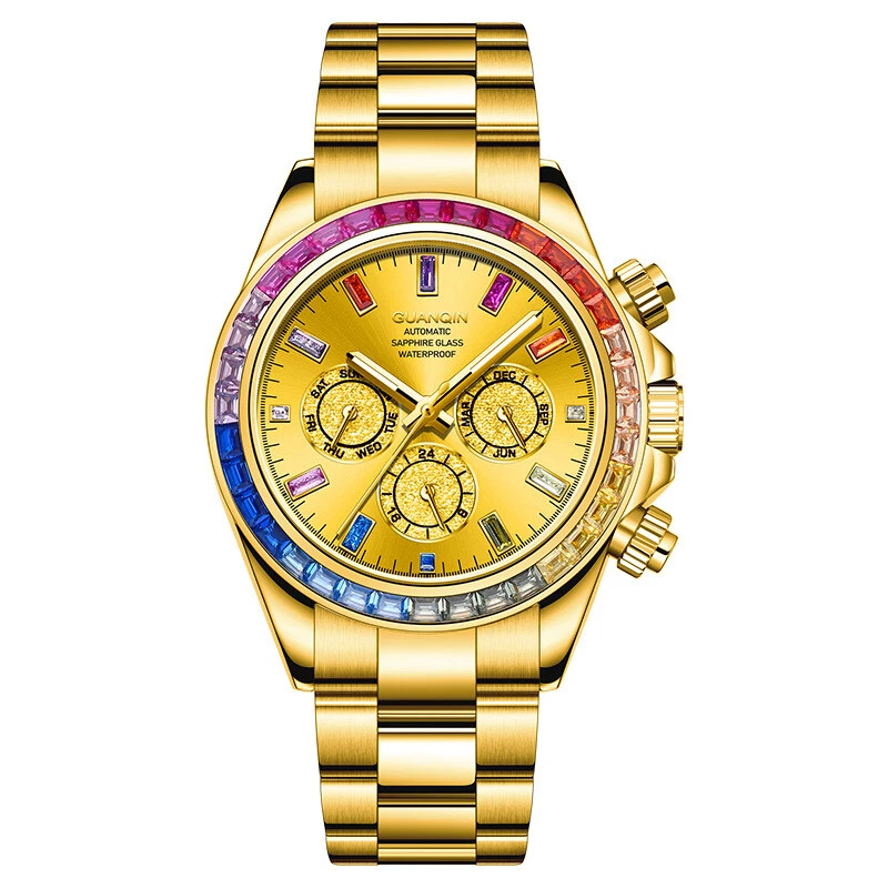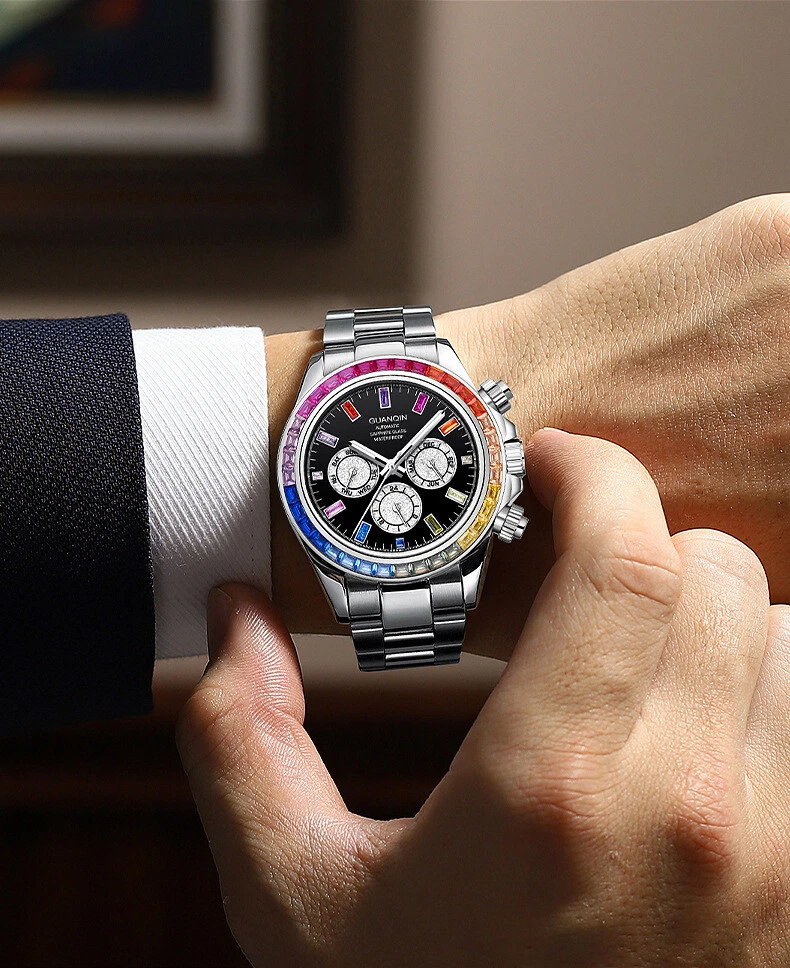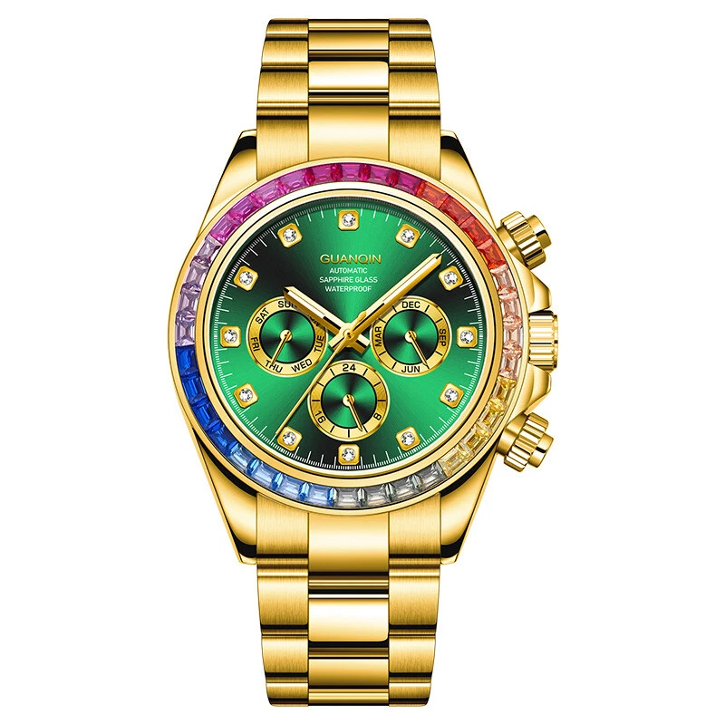 Guanqin Men's Mechanical Watch Waterproof Luminous Business Advanced Rainbow41mm