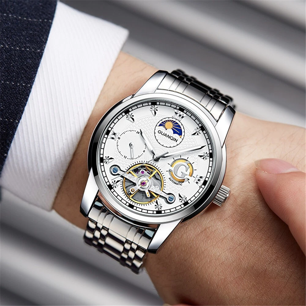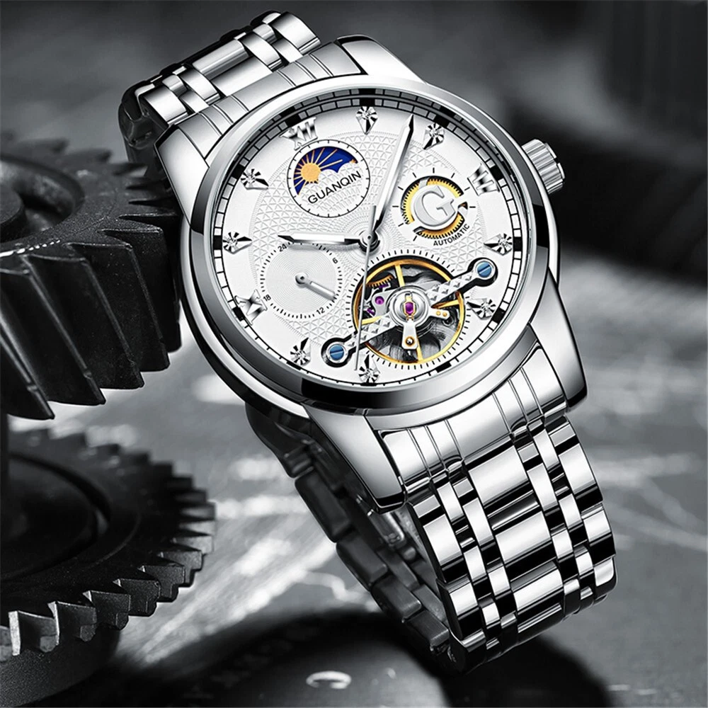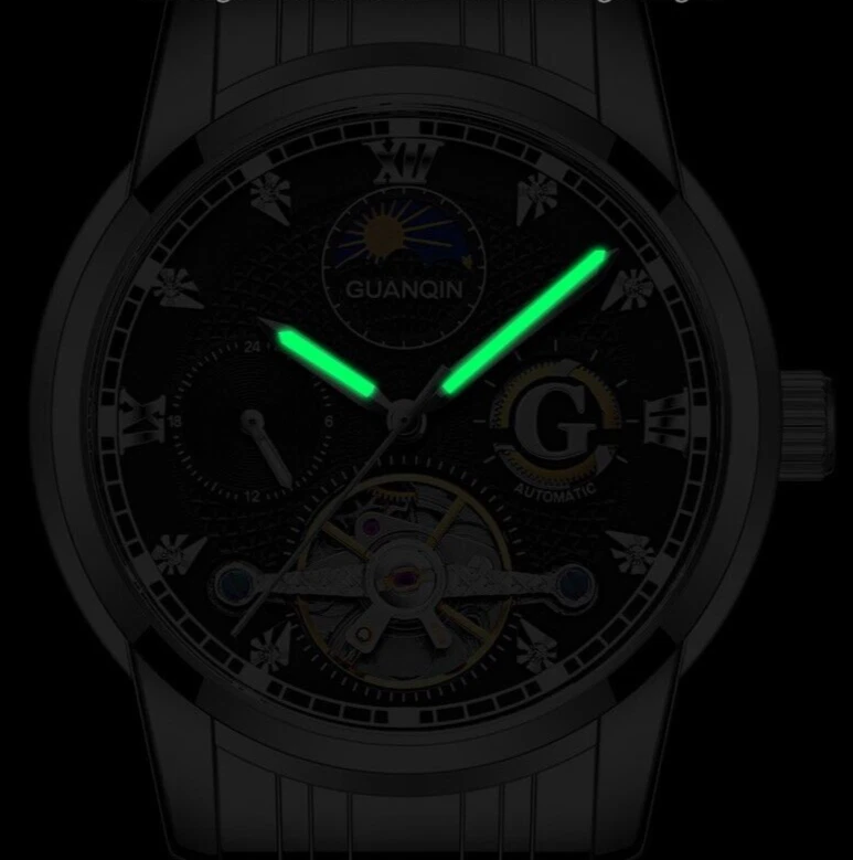 GUANQIN Mechanical Automatic Moonphase Diver Watch Men's 30M Waterproof Luminous