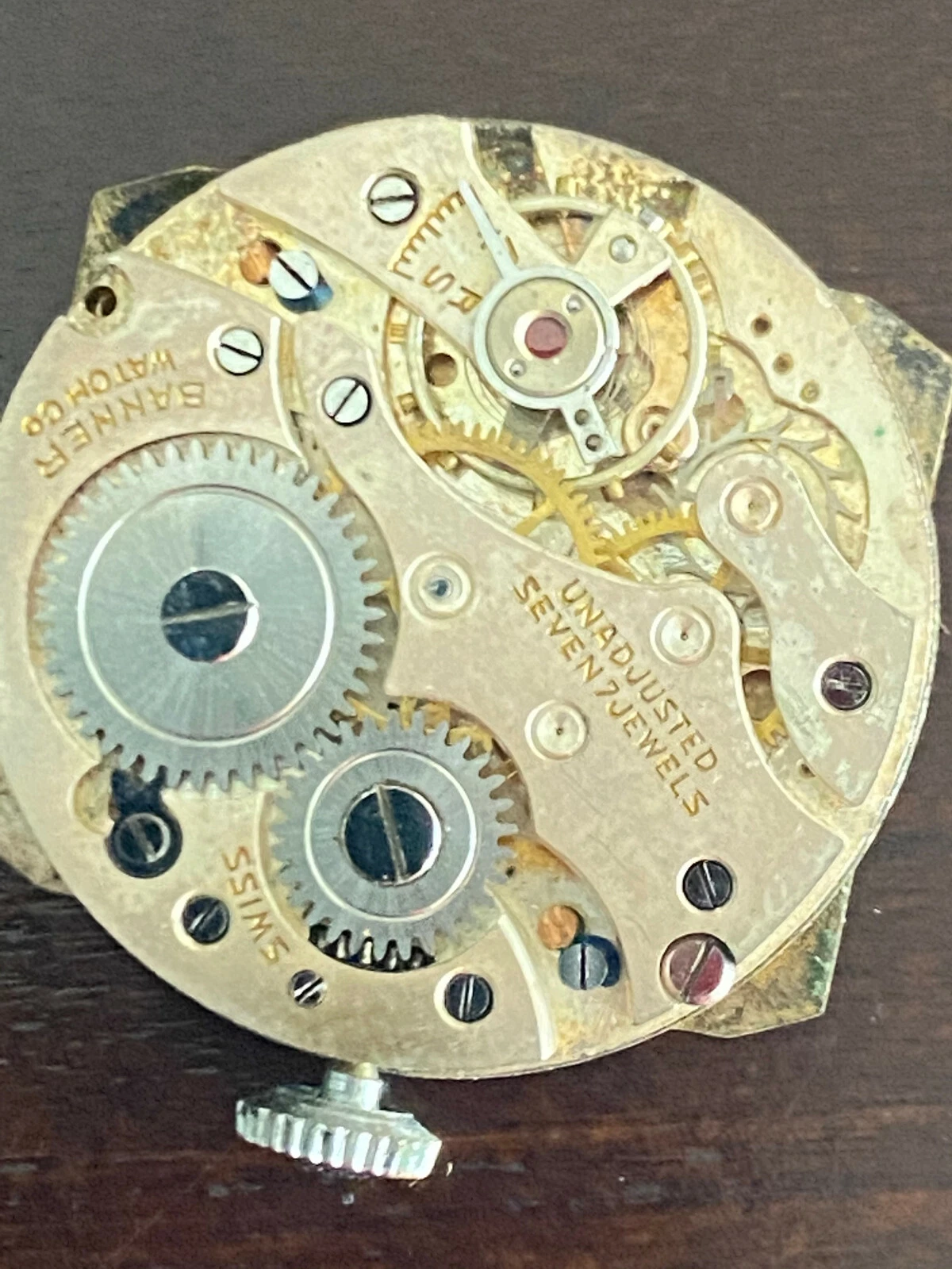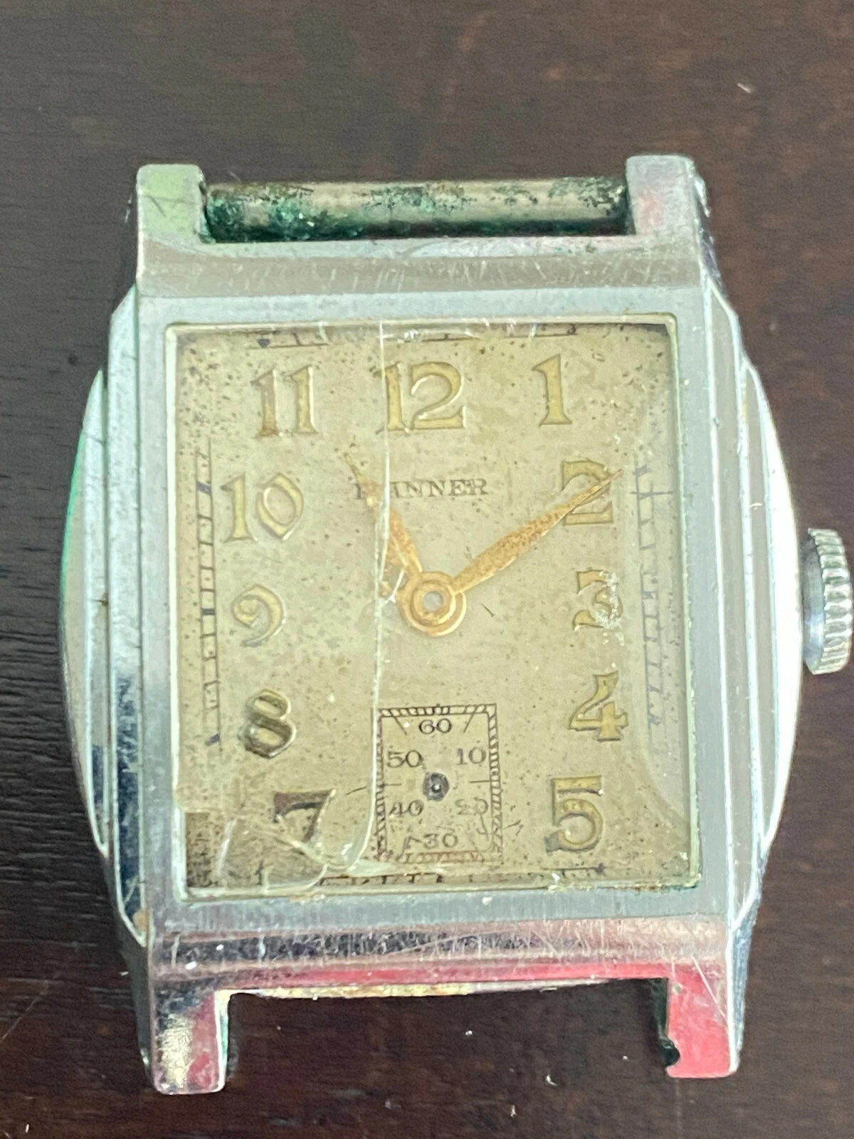 VINTAGE MEN'S BANNER WRIST WATCH- NO BAND, NOT RUNNING BROKEN STAFF
