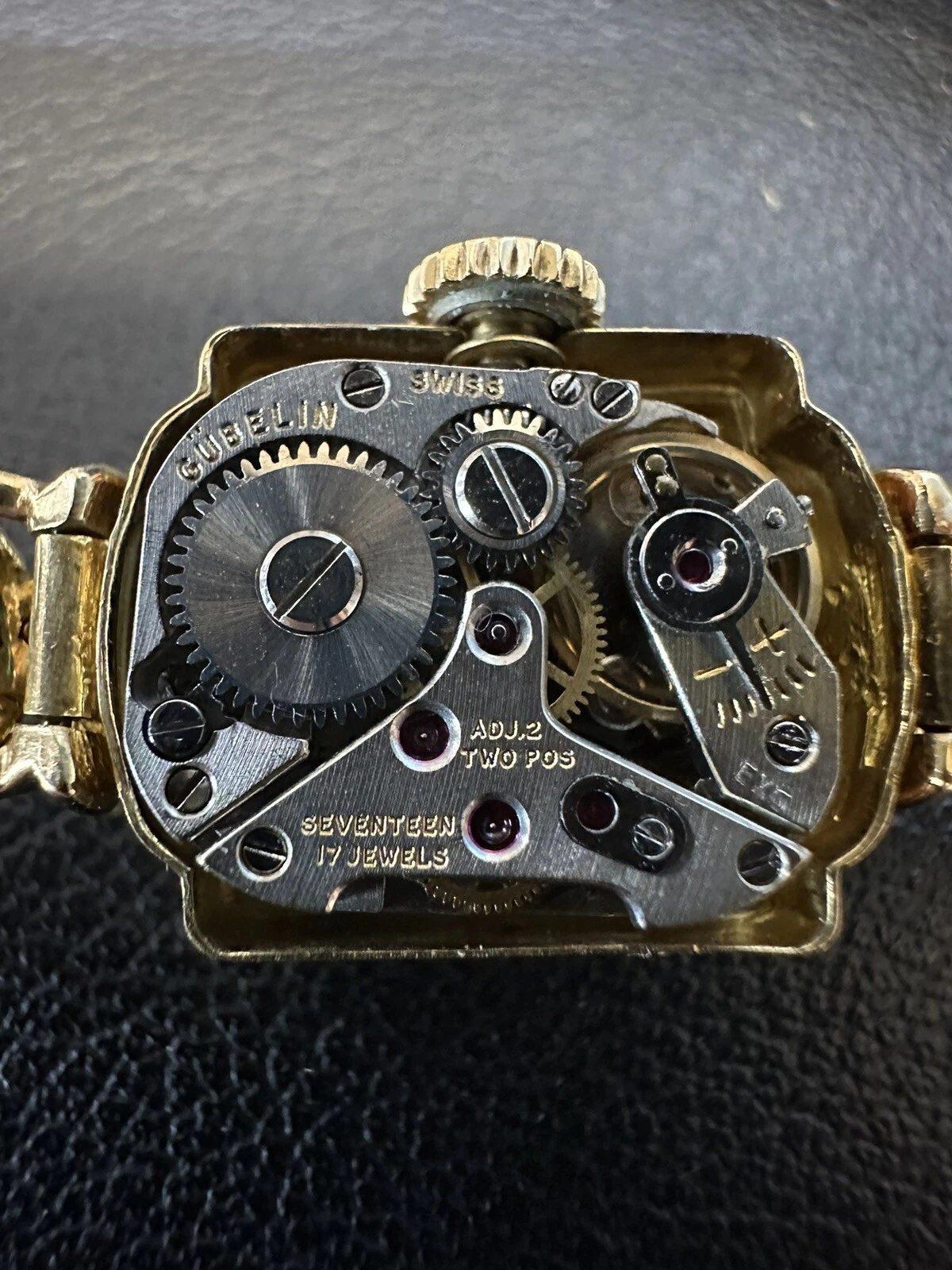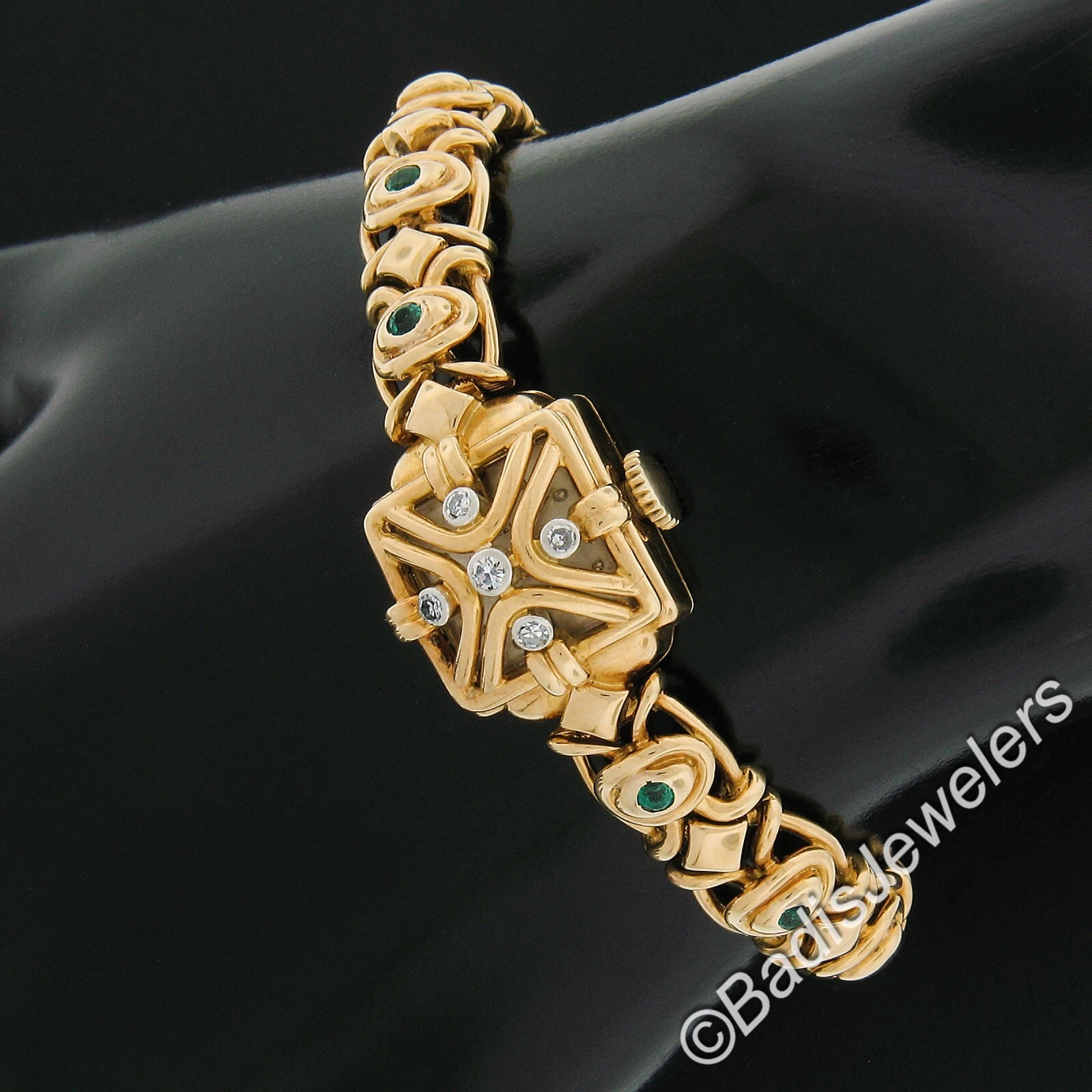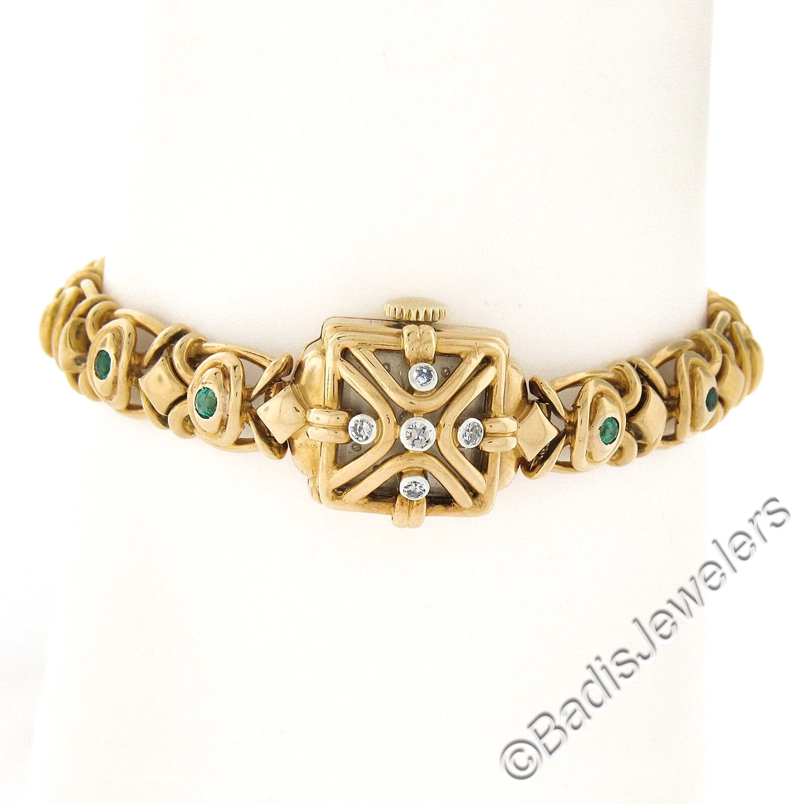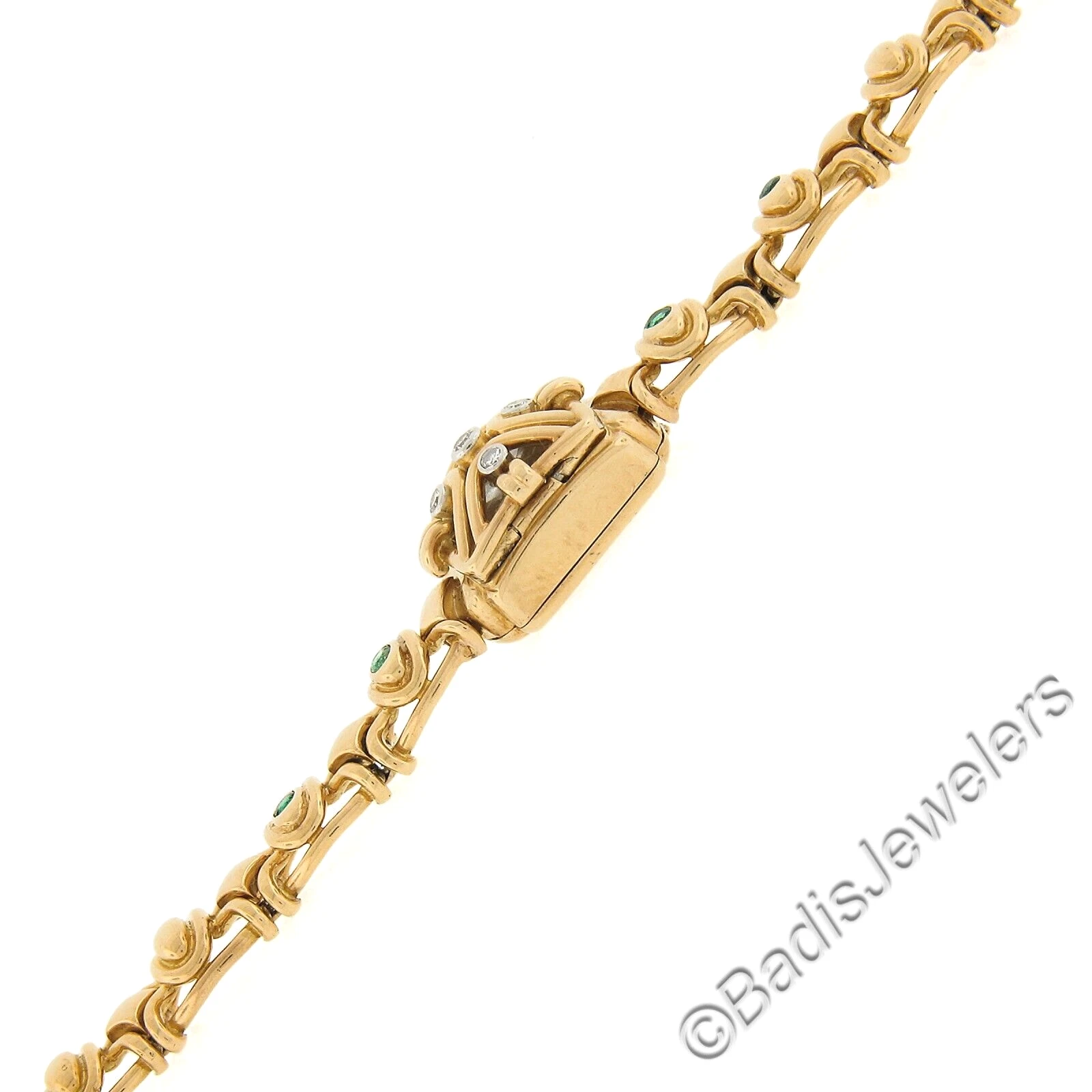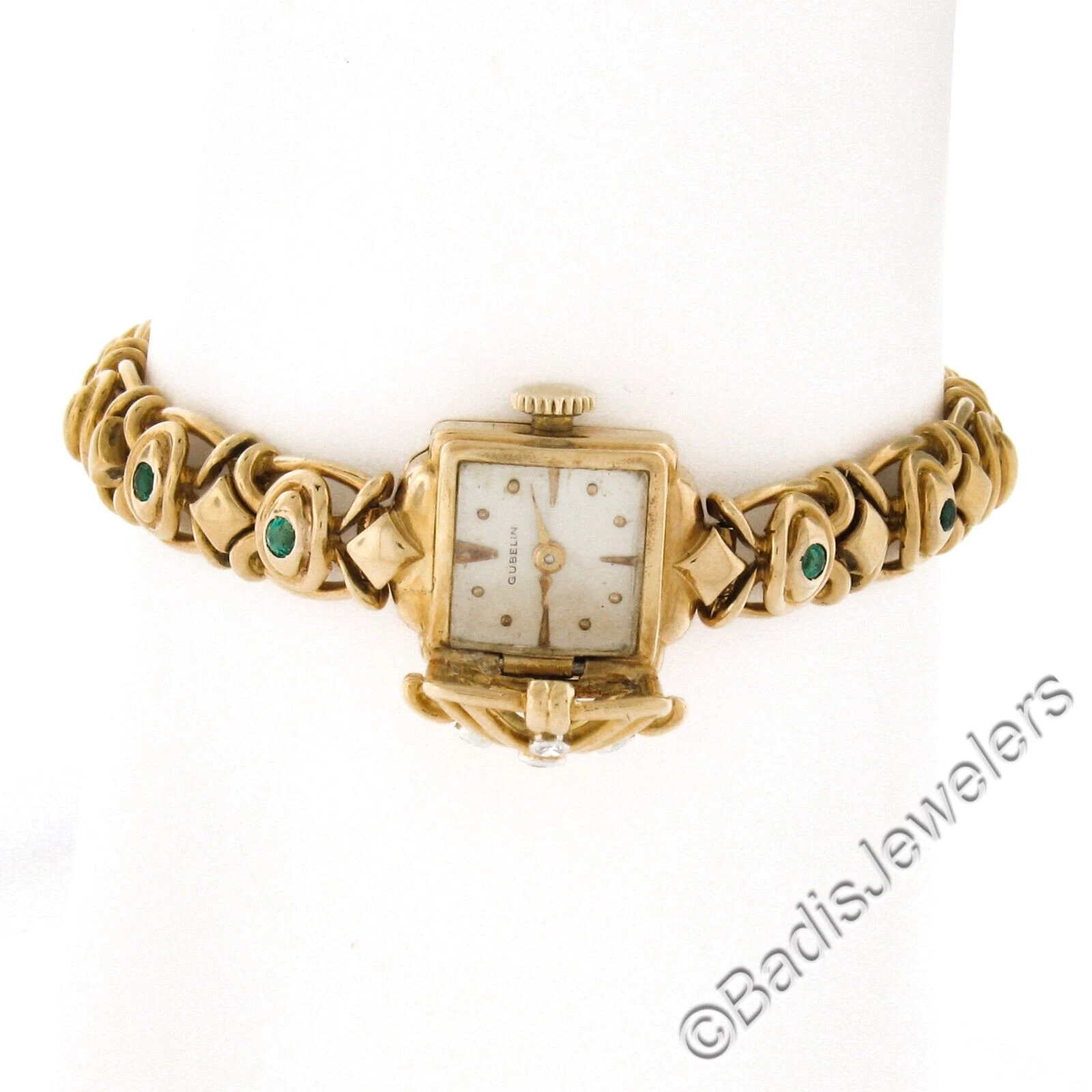 Vintage Gubelin 14mm Watch 18k Yellow Gold Diamond & Emerald Link Bracelet