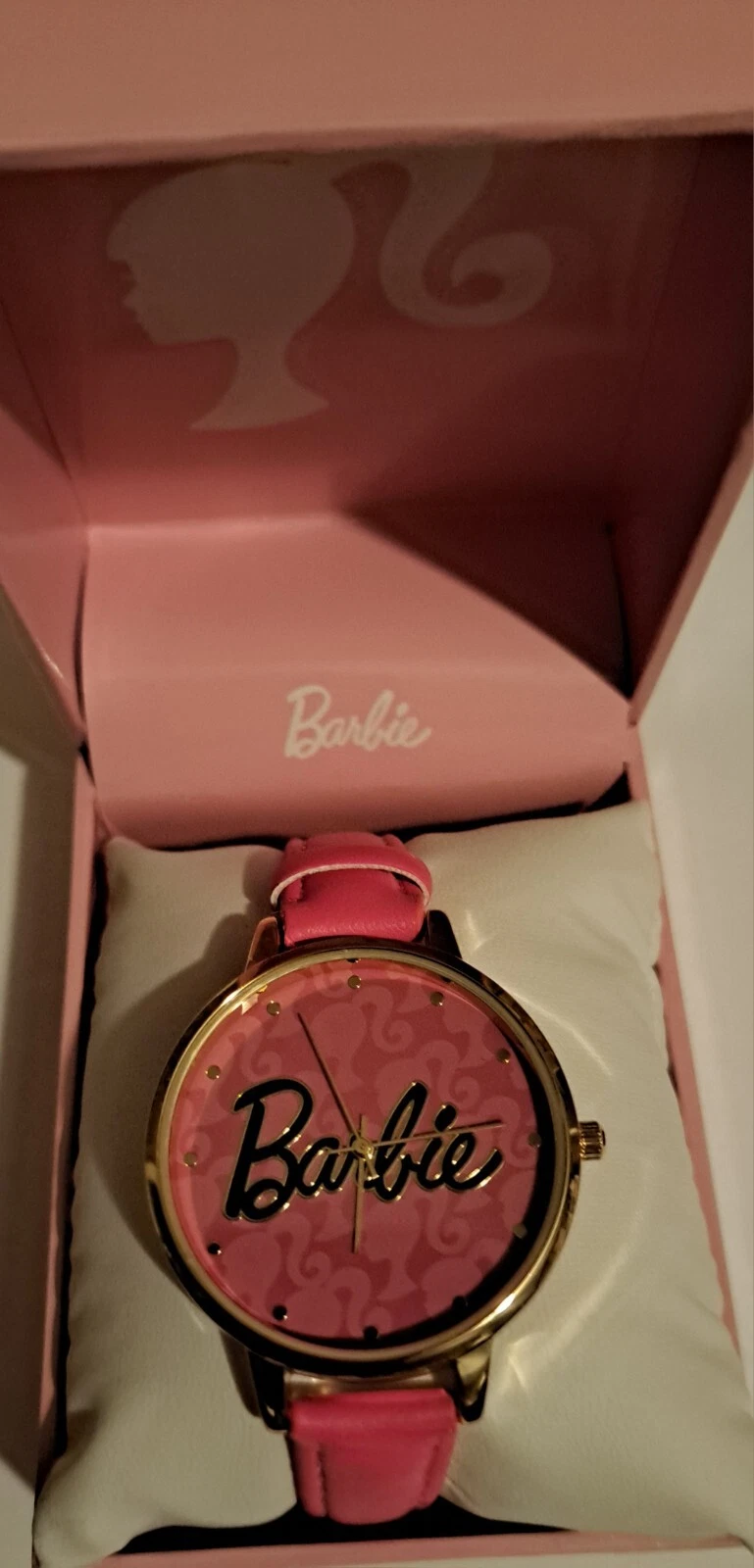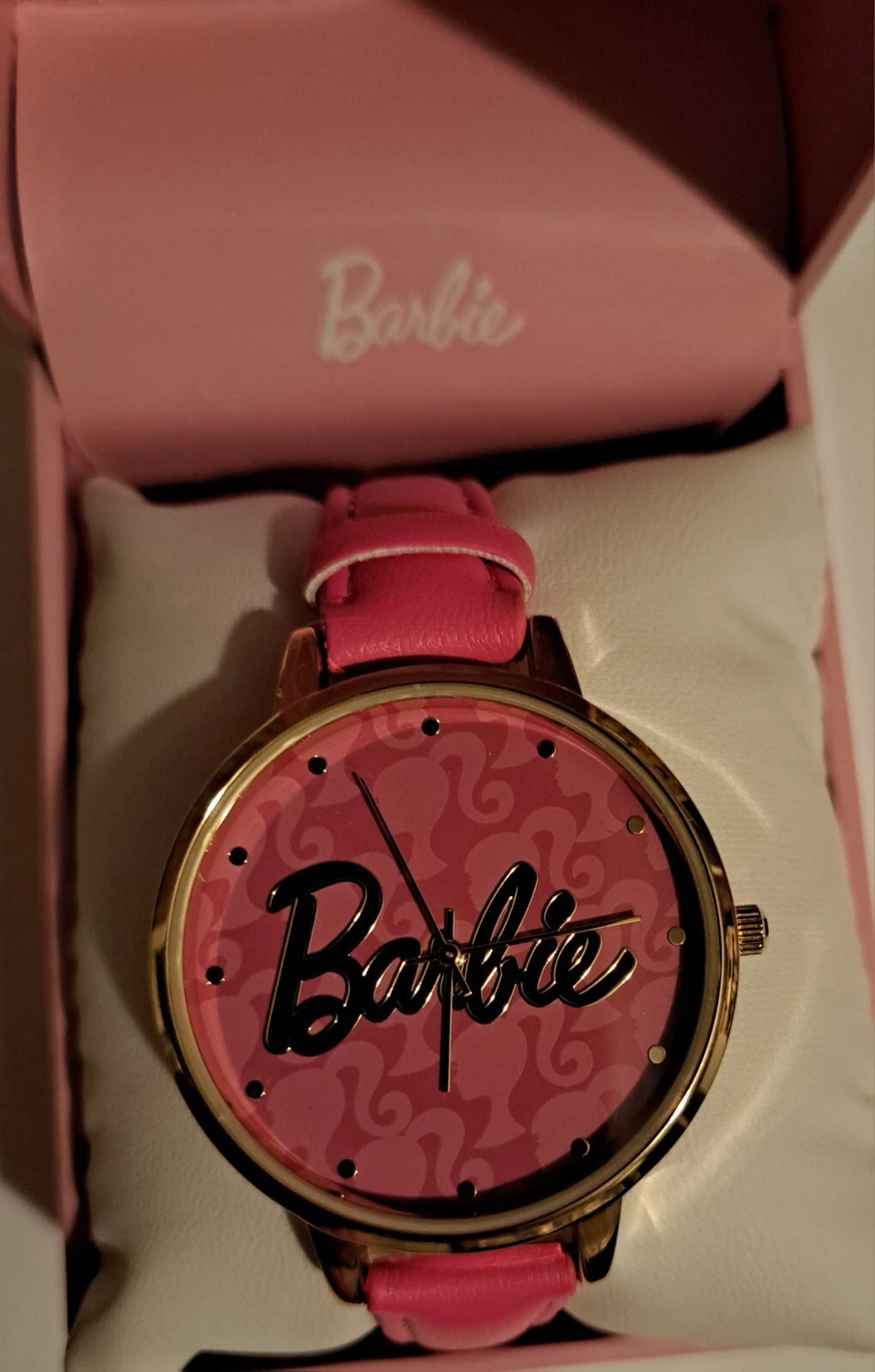 Barbie Quartz Movement Watch With Pink Leather Strap. Barbie Logo.