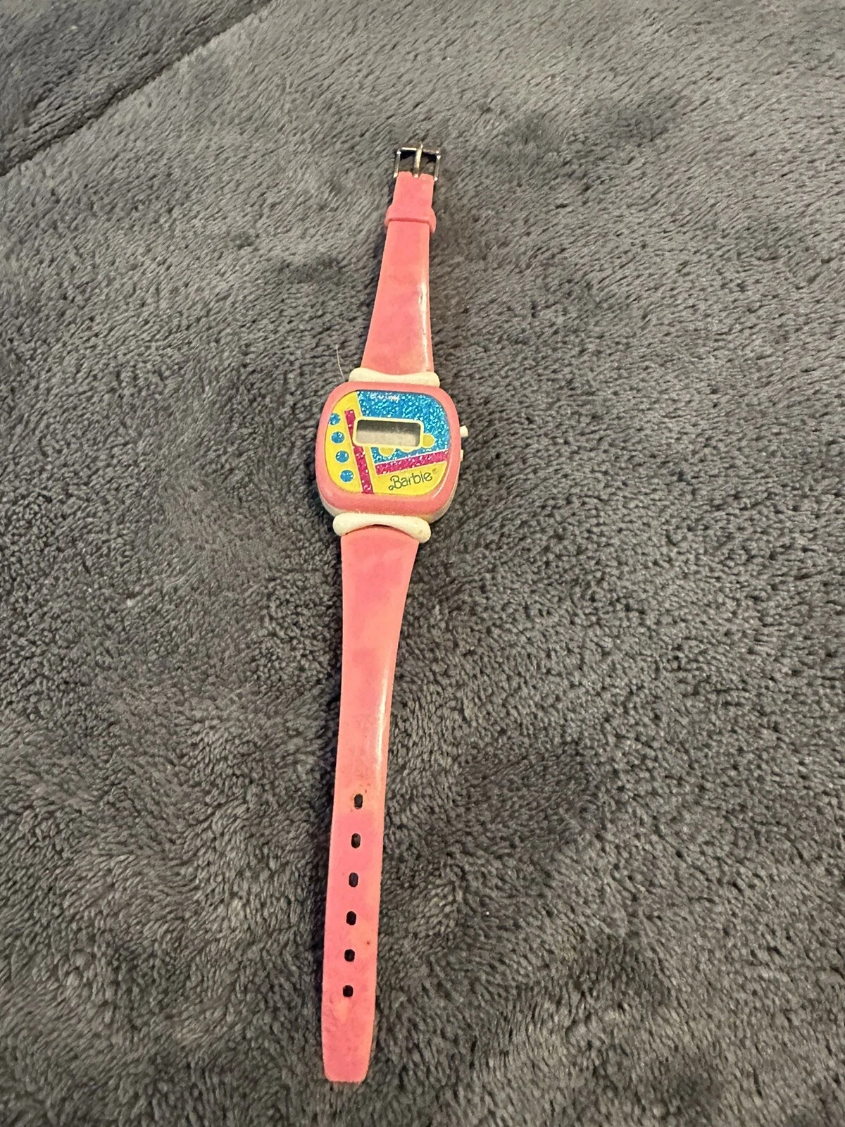 Vintage Barbie Plastic Band Digital Watch Pink 1980s Retro Logo!!!!!!!!