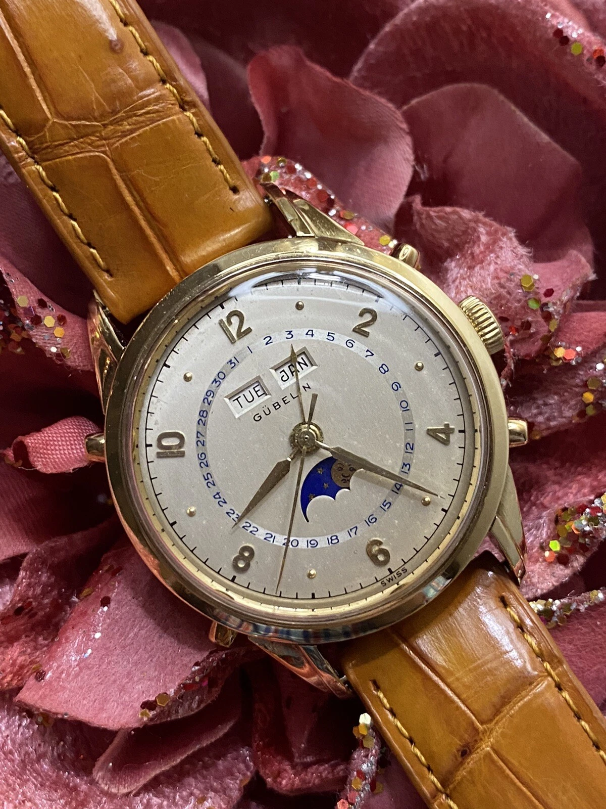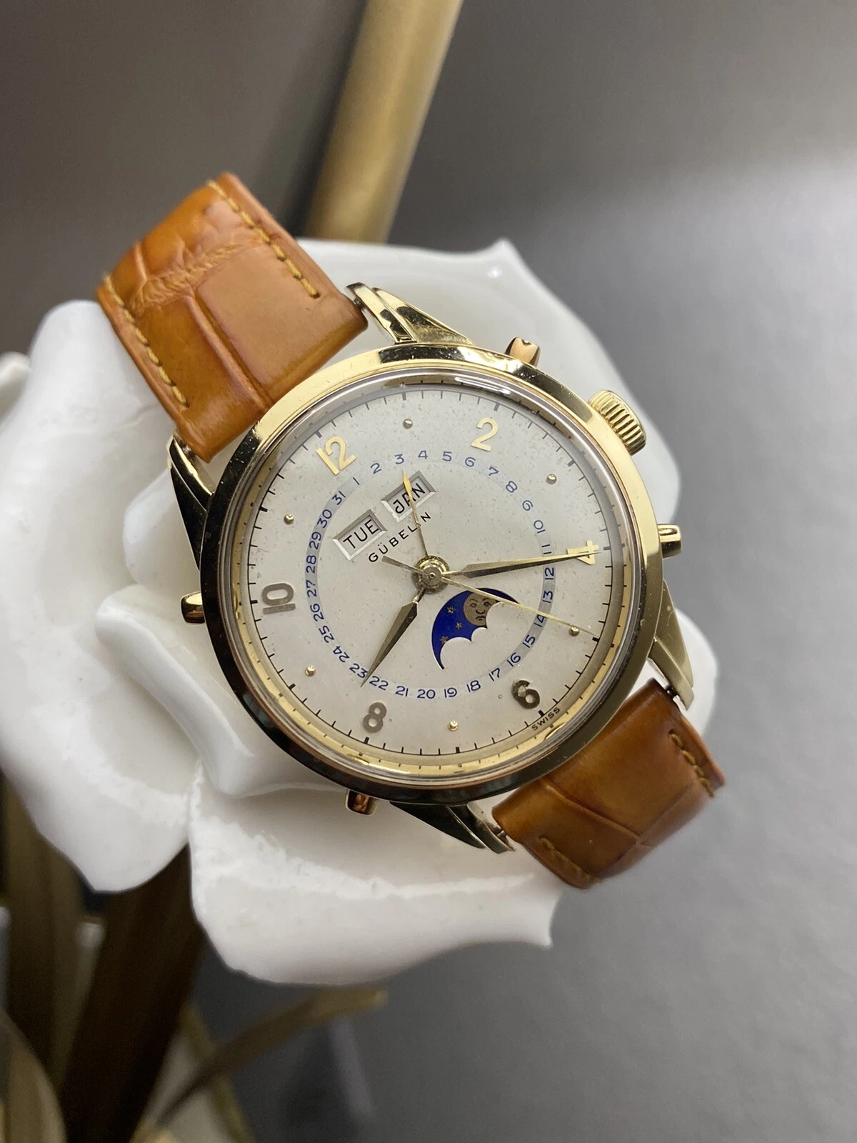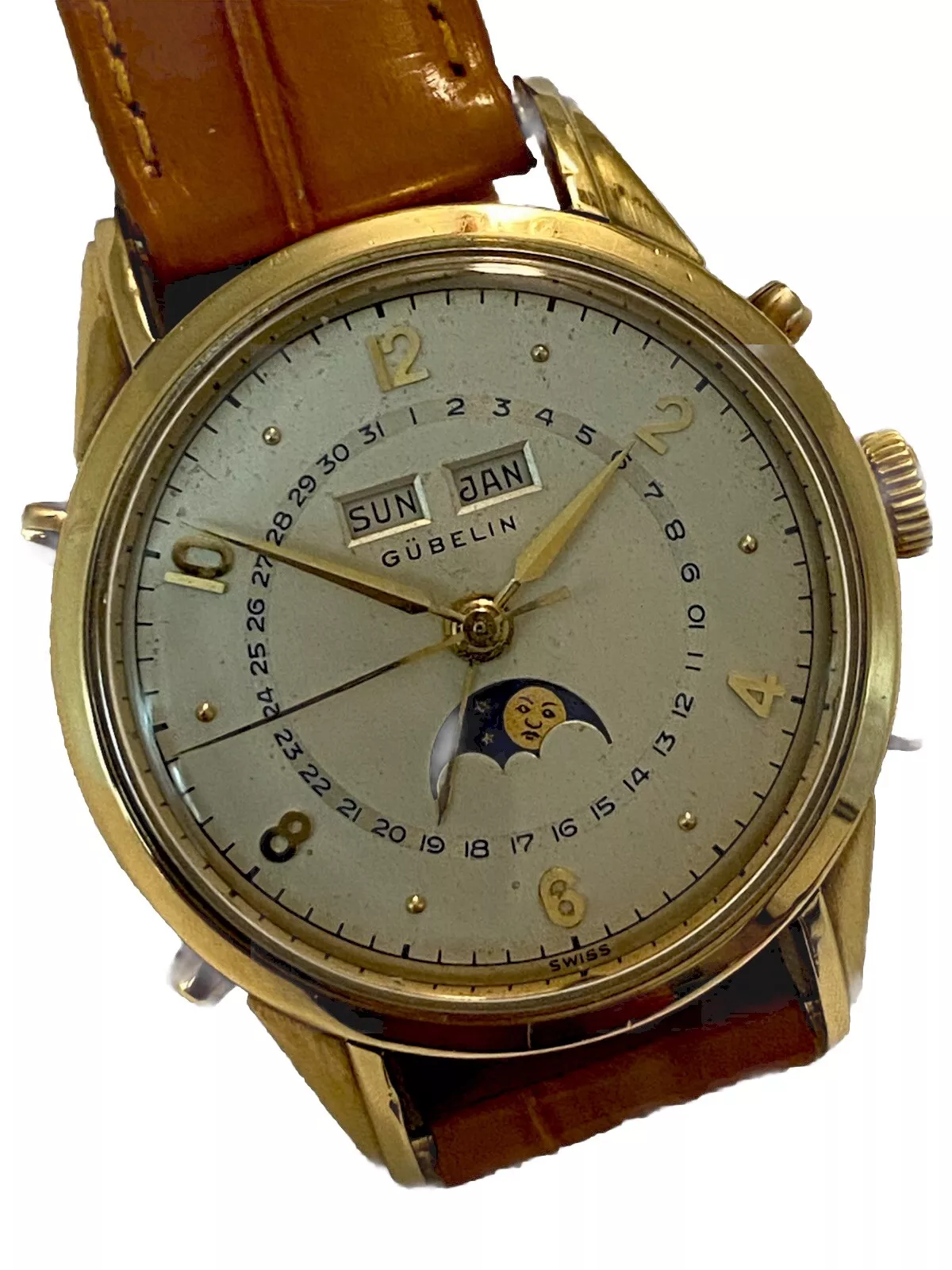 Gübelin 18K TRIPLE DATE ASTRONOMIC CALENDAR MOONPHASE AUTOMATIC 39MM ca.1955