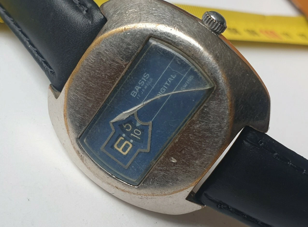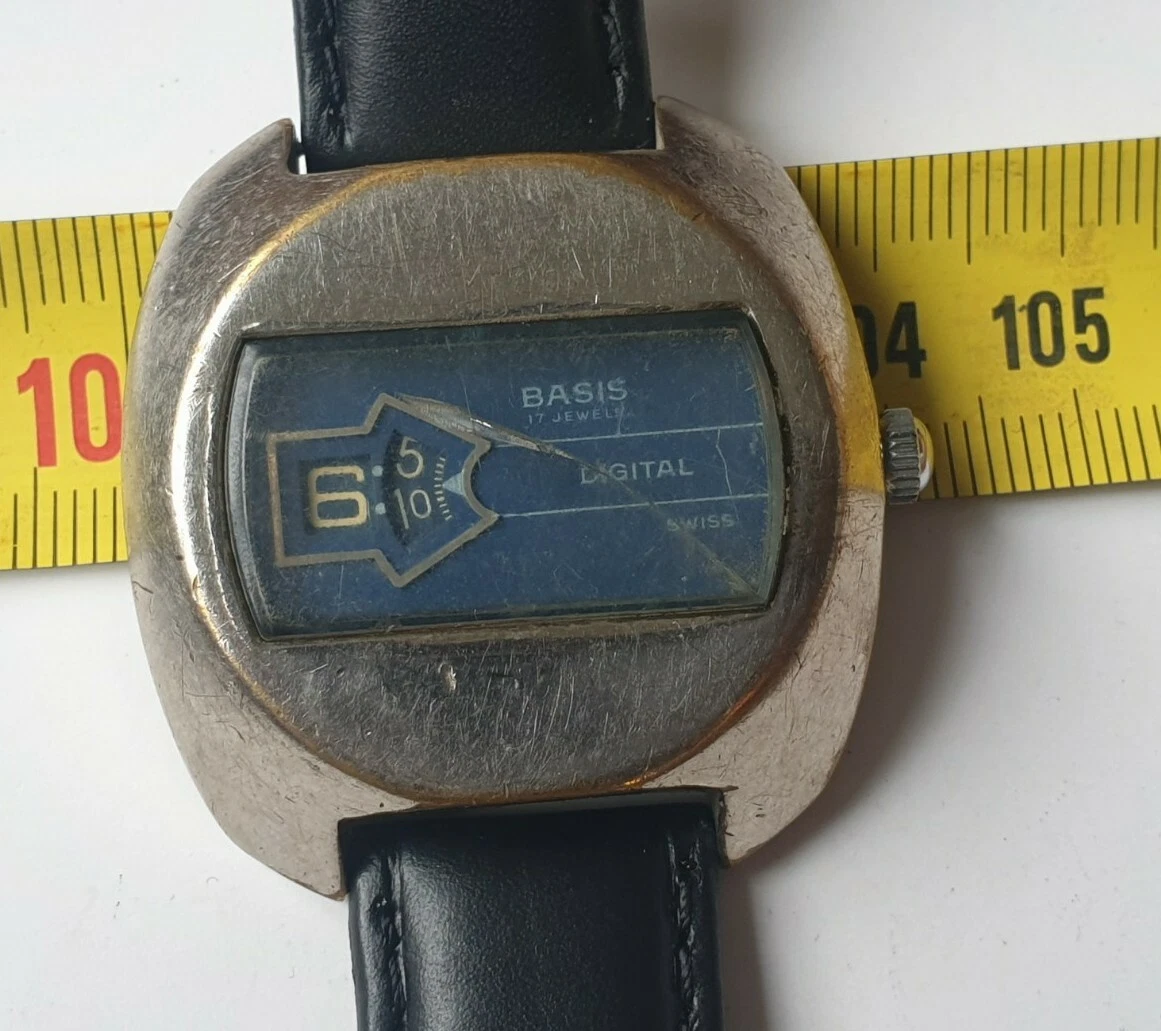 Vintage Rare BASIS Digital Jump Hour Swiss Watch Mechanical Wristwatch- Faulty