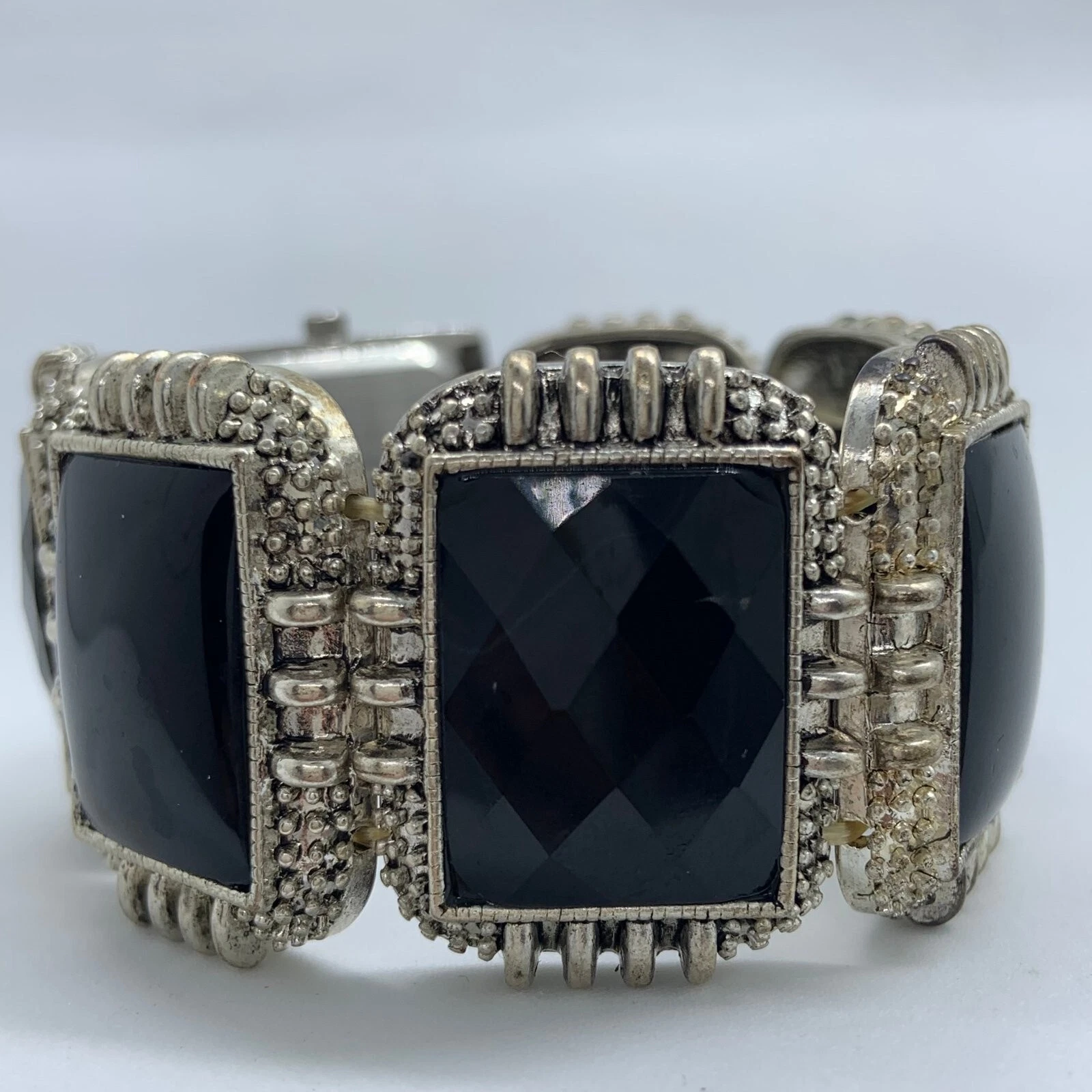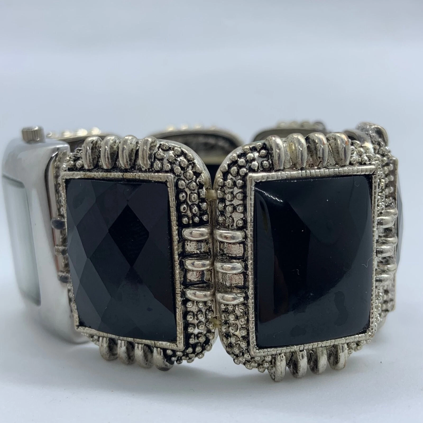 Bay studio womens silver black tone elastic band 7” fresh battery