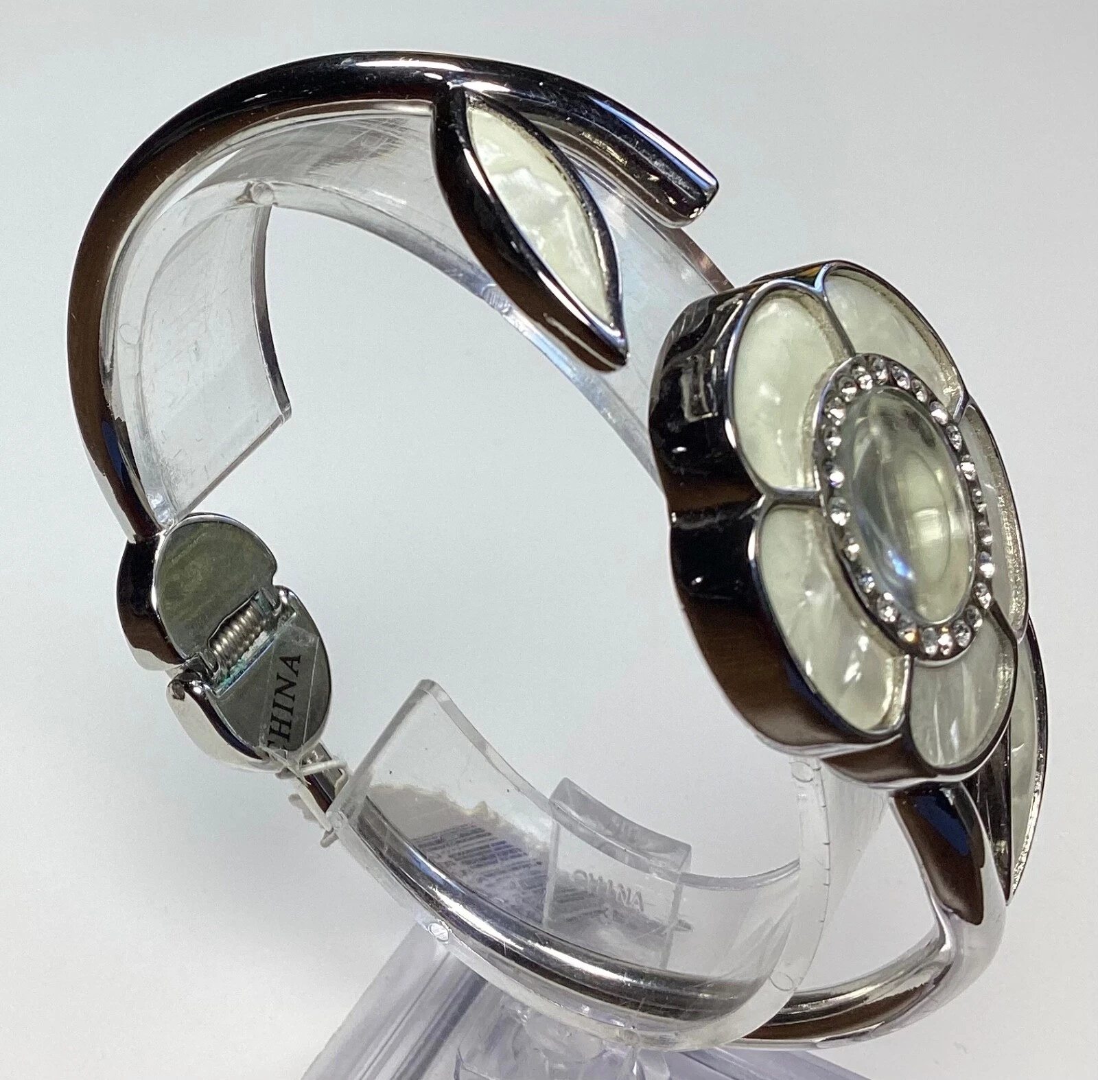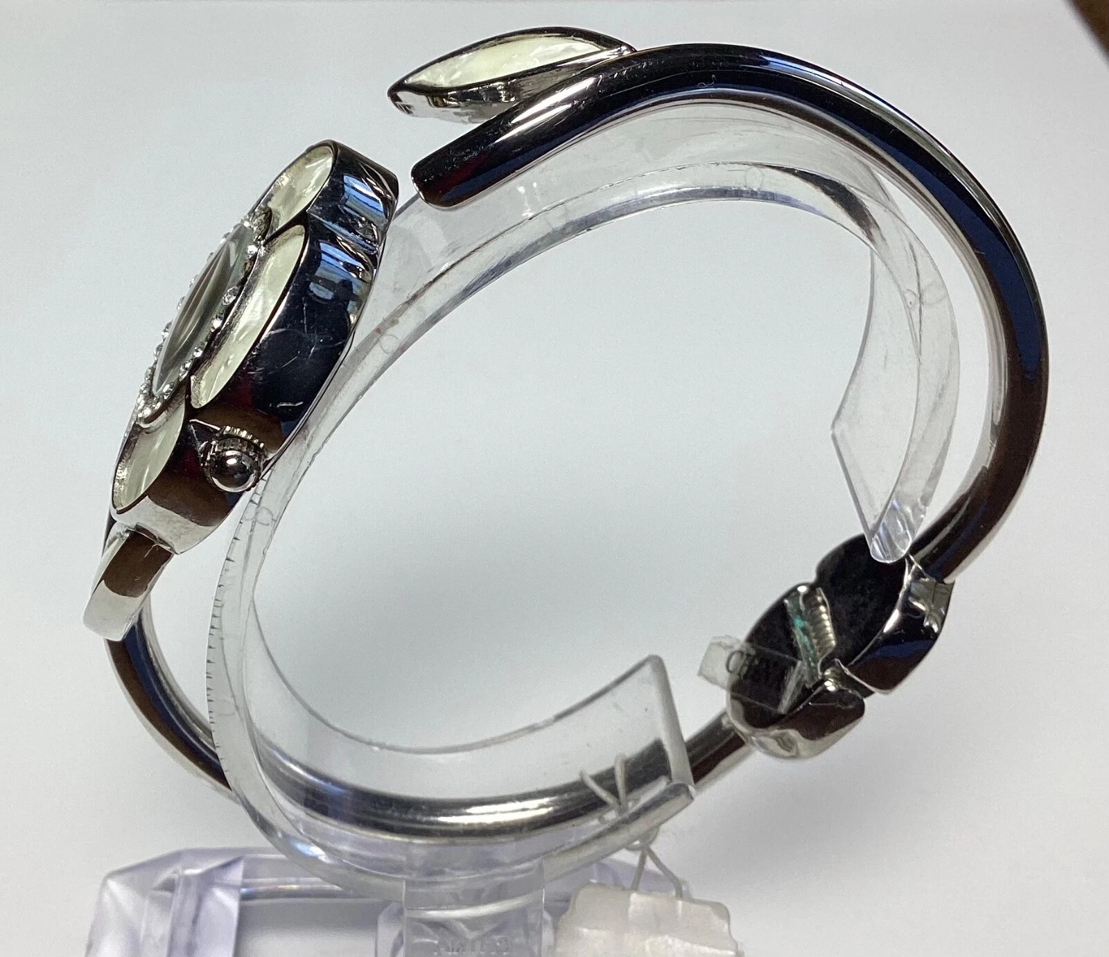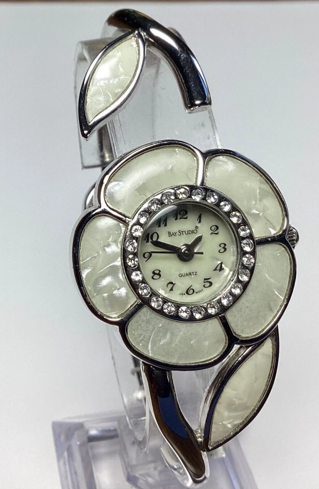 Bay Studio Womens Watch Silver Tone Gemmed Mother Of Pearl Flower New Battery